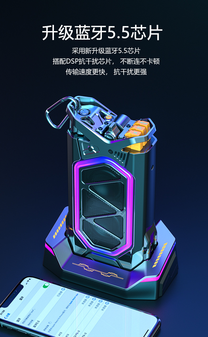 기계 무선 블루투스 데스크탑 방수 사이버 펑크 야외 K-노래 오디오 서브 우퍼 GQ-18 긴 내구성