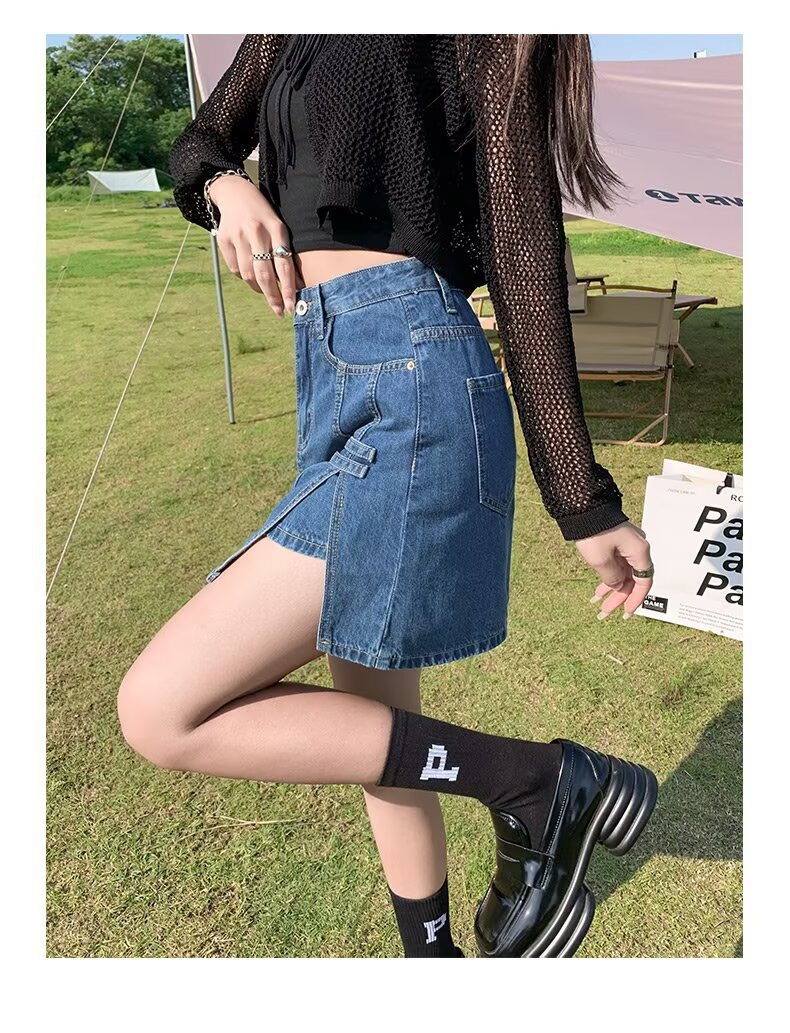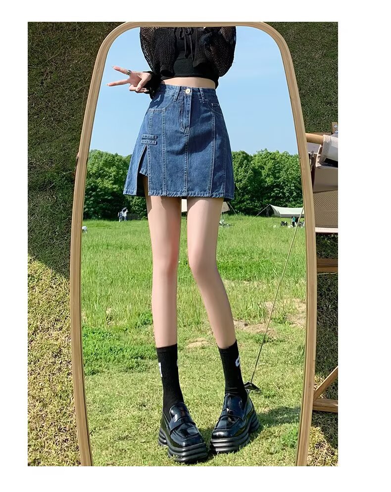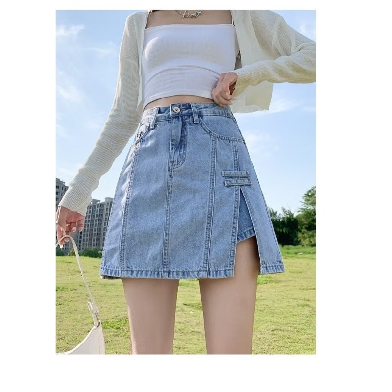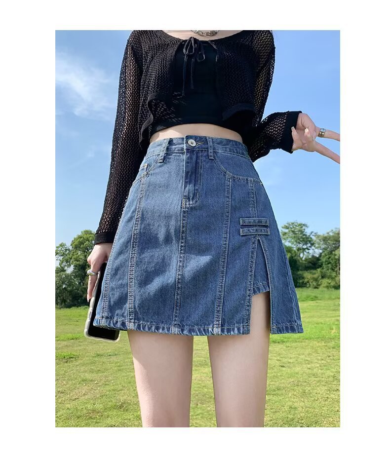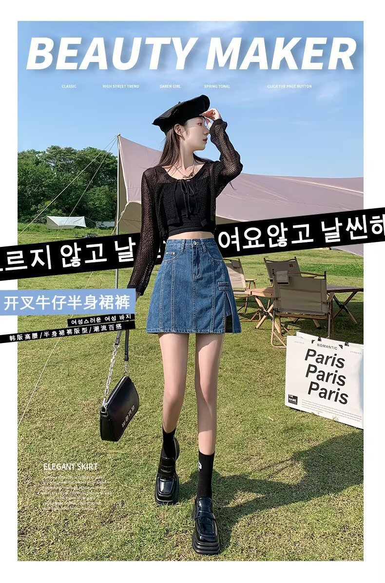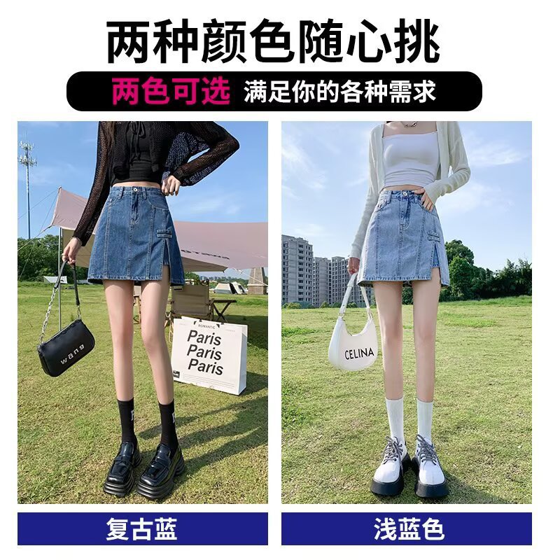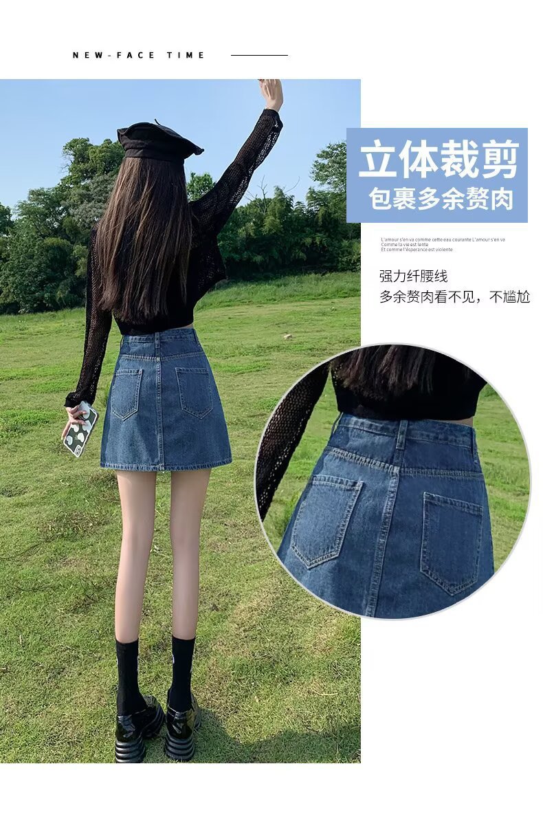 데님 스커트 여성 스커트 여름 2023 신작 봄, 가을 하이 웨이스트 스몰 A 라인 스커트 힙 커버 스커트스토어 가기