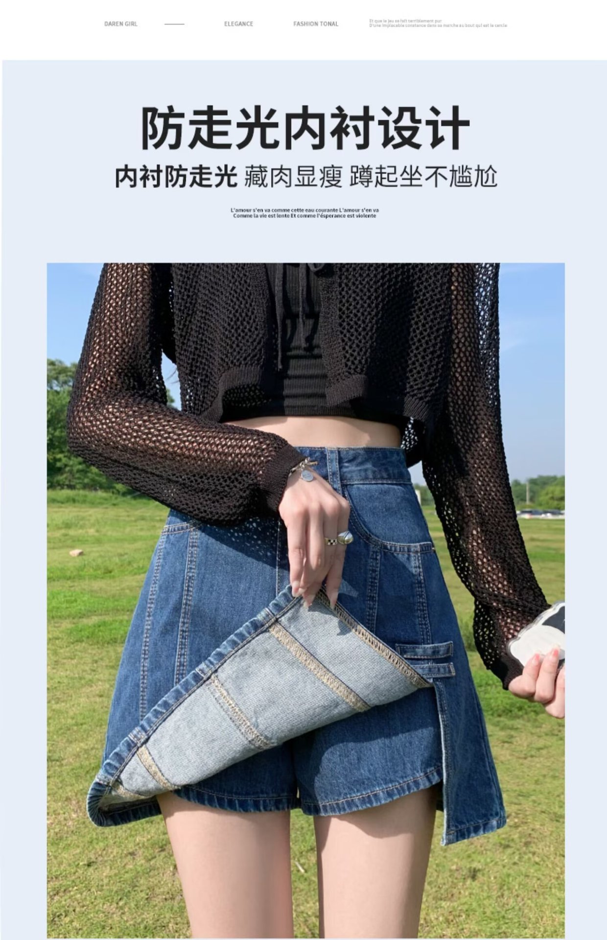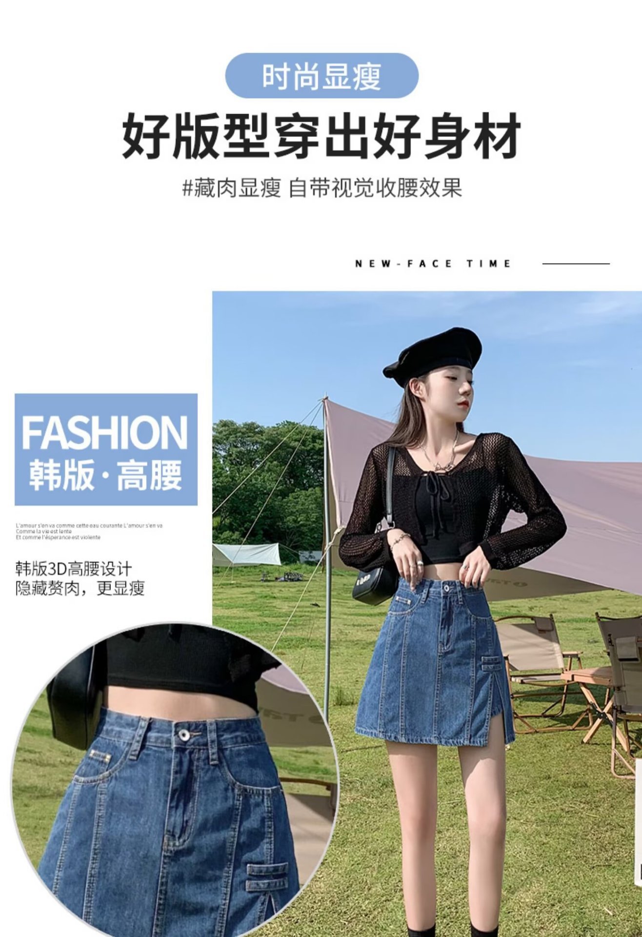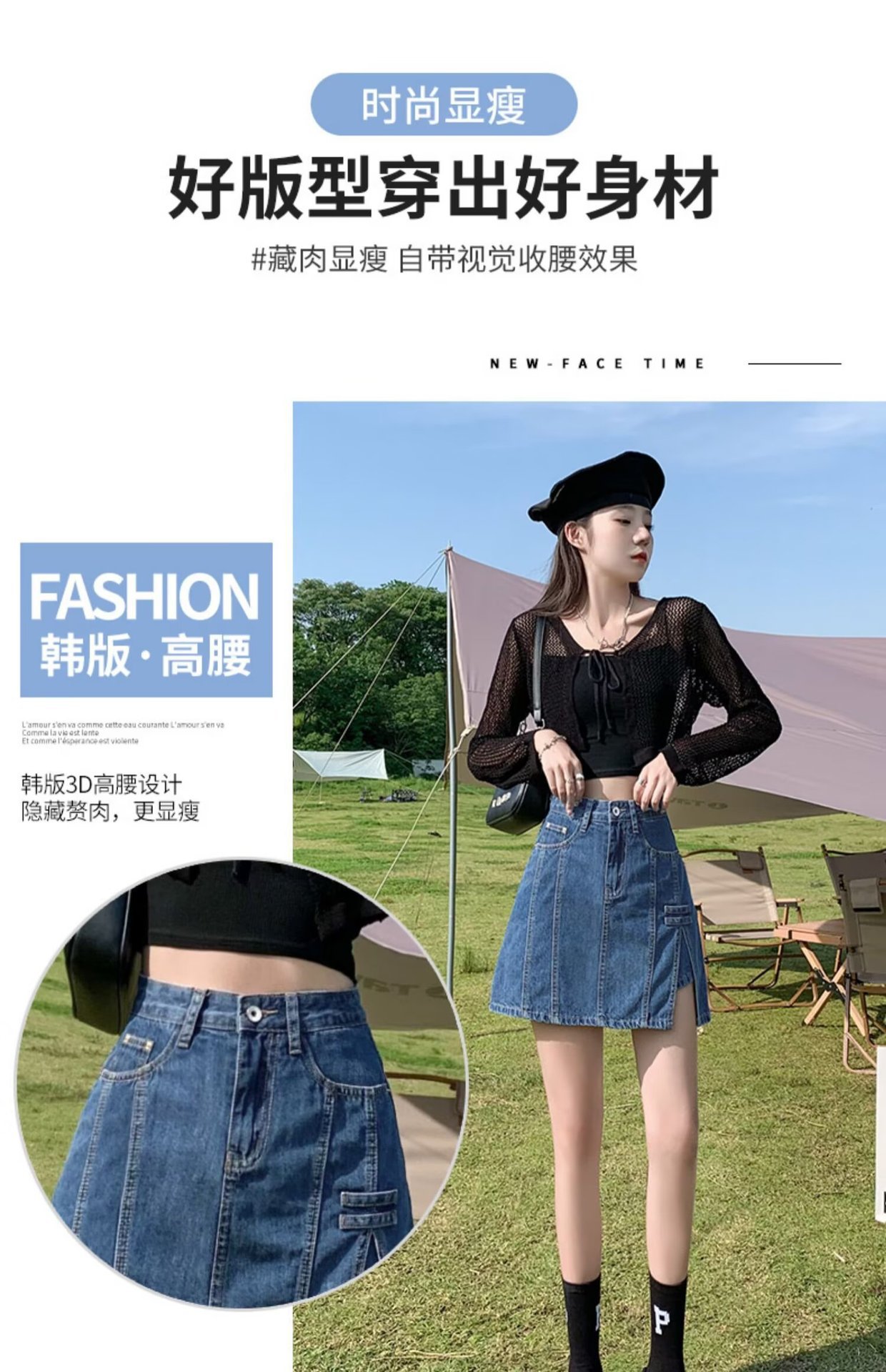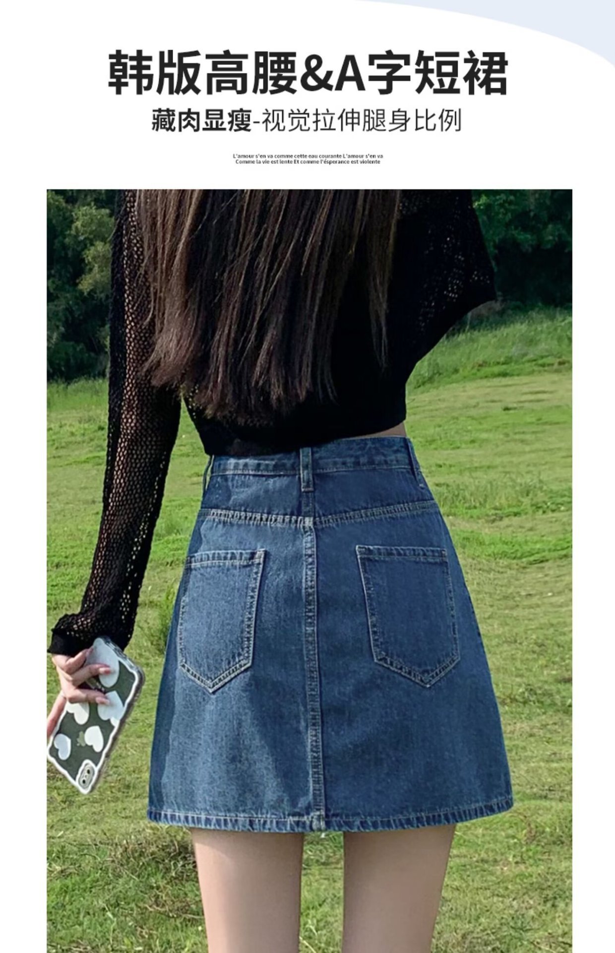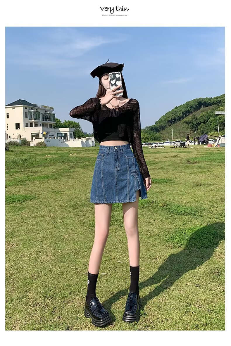 데님 스커트 여성 스커트 여름 2023 신작 봄, 가을 하이 웨이스트 스몰 A 라인 스커트 힙 커버 스커트스토어 가기