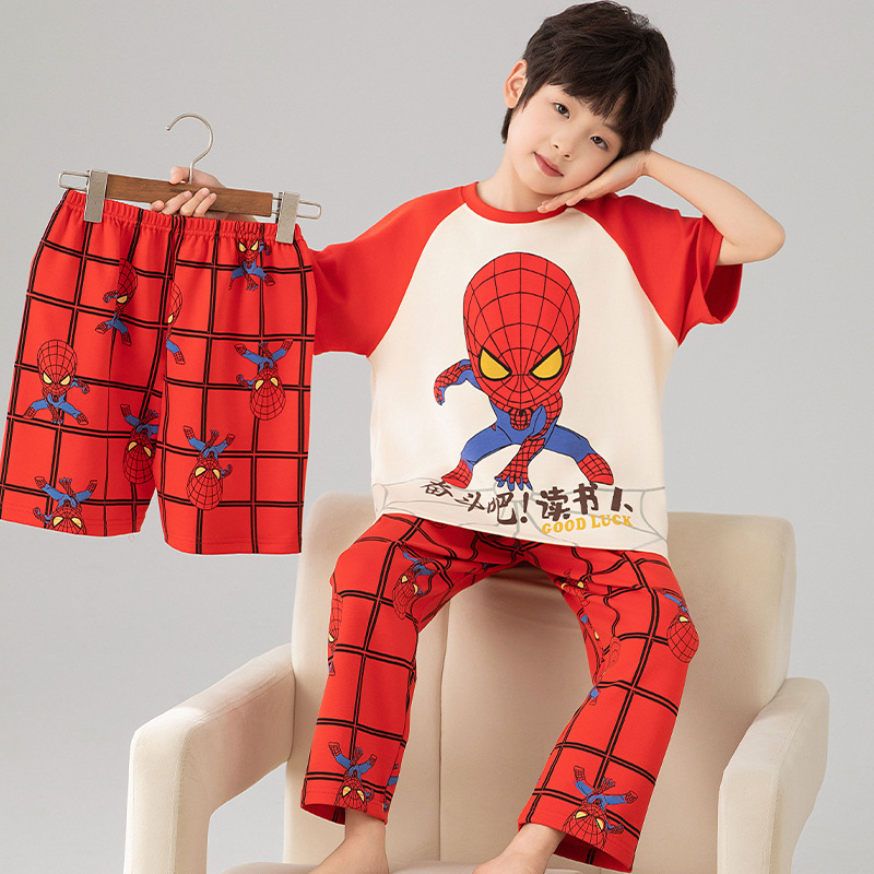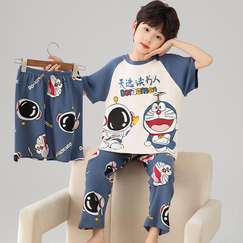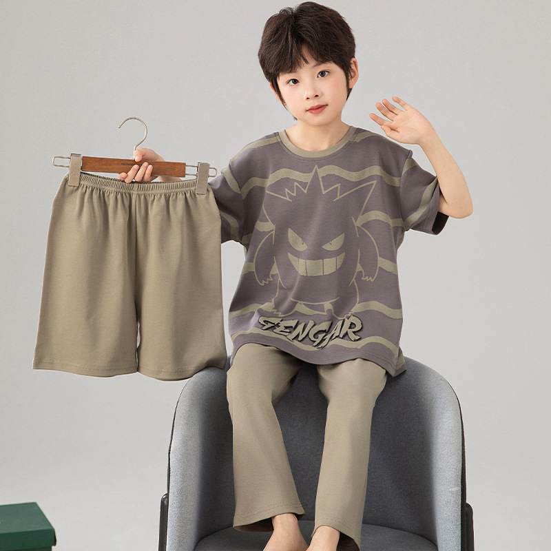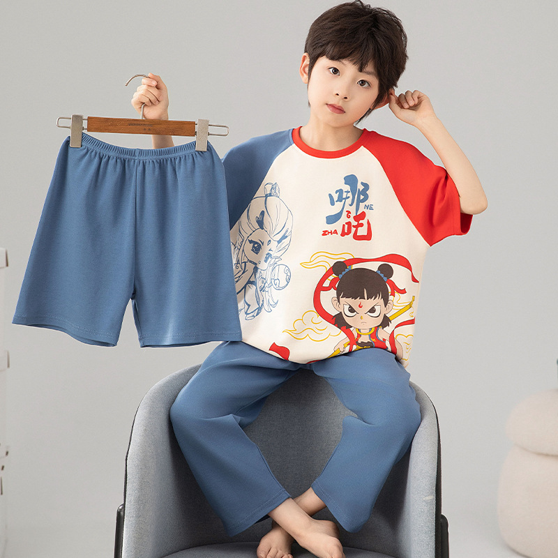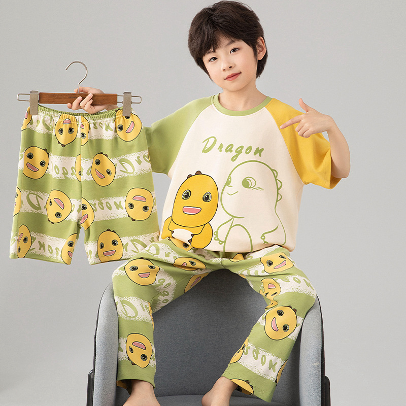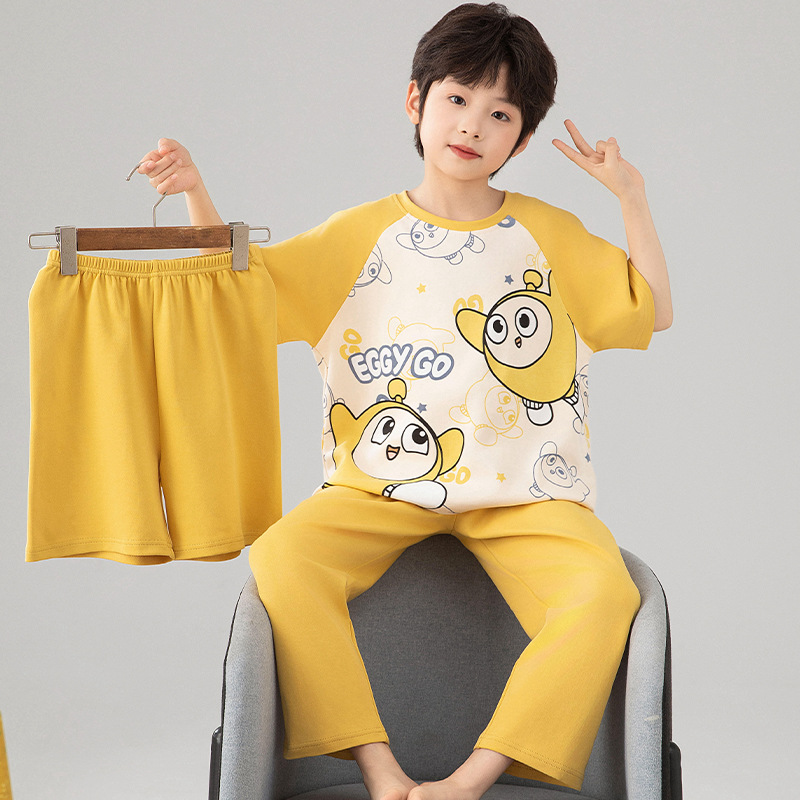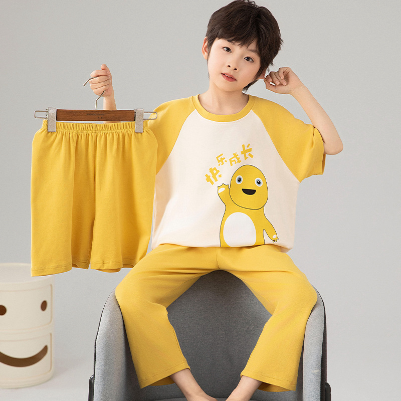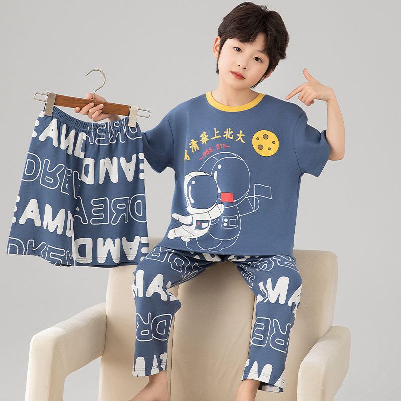 소년 잠옷 여름 얇은 순면 어린이 반팔 소년 중대형 어린이 2025 새로운 봄, 가을 면 3 피스 세트스토어 가기