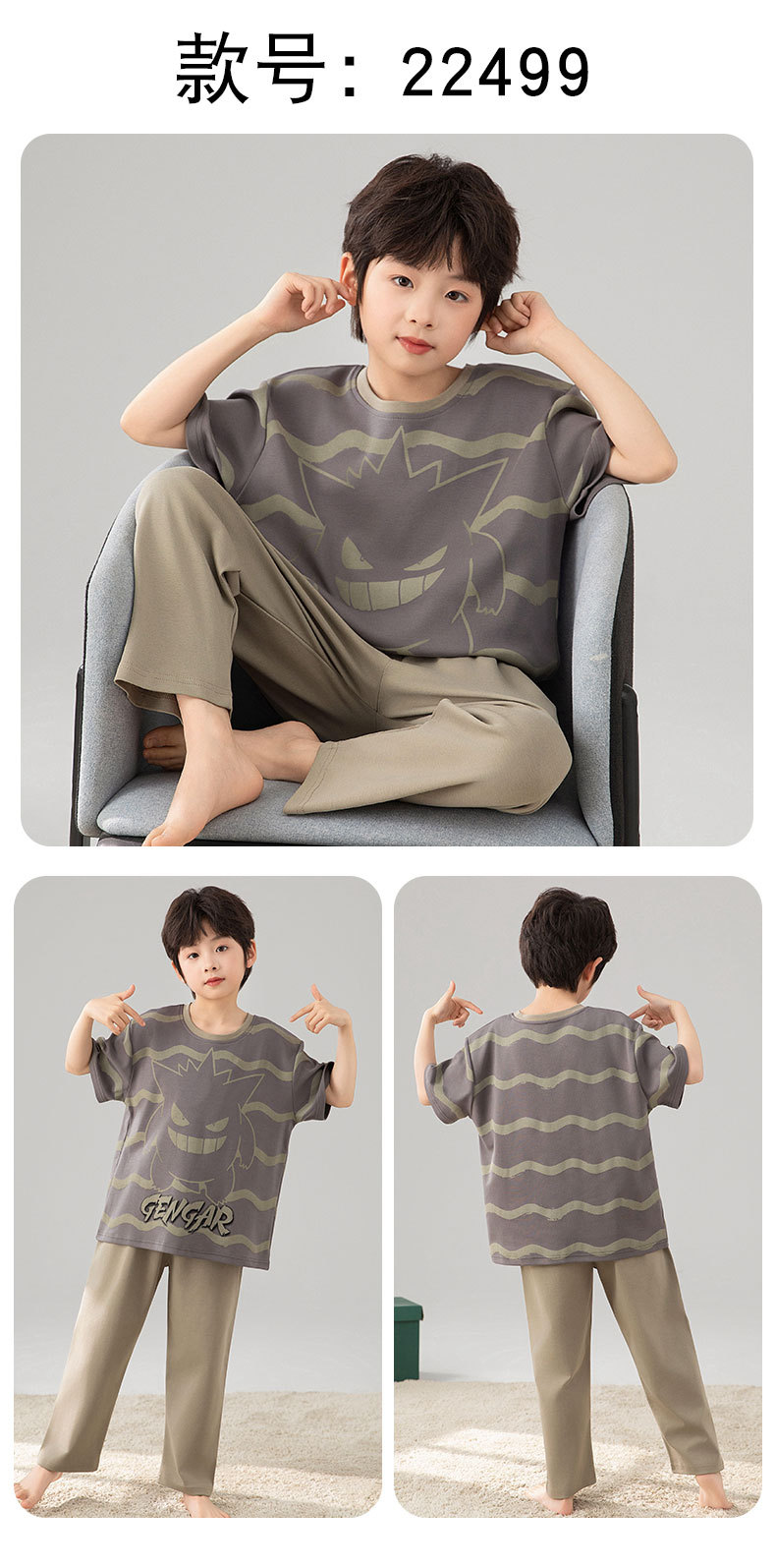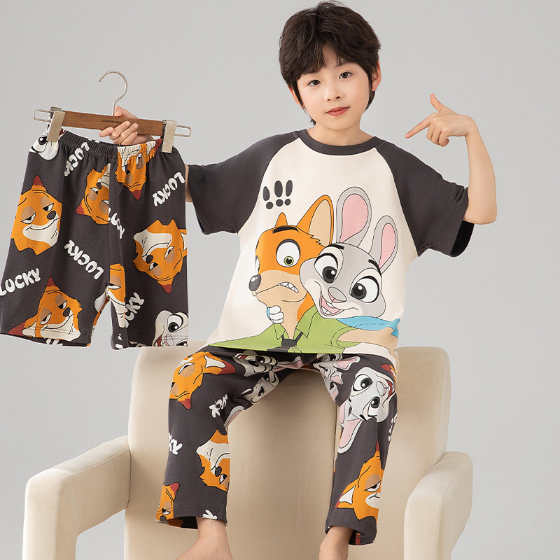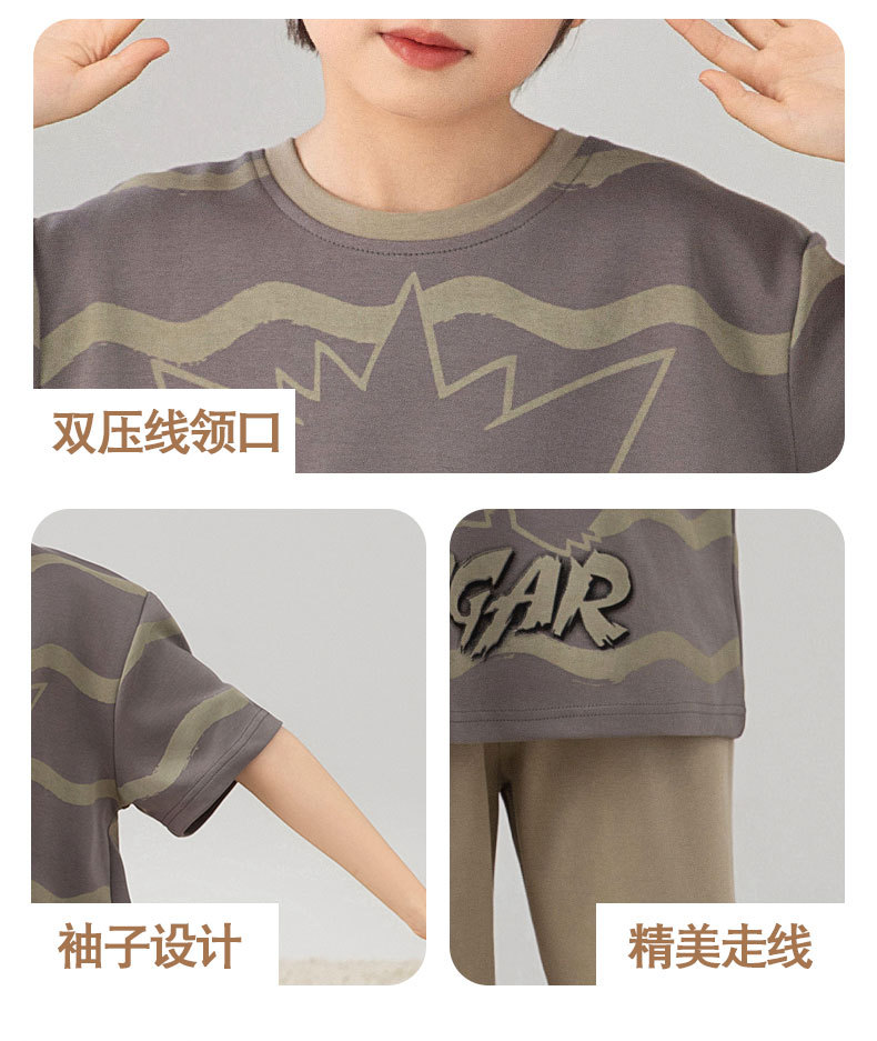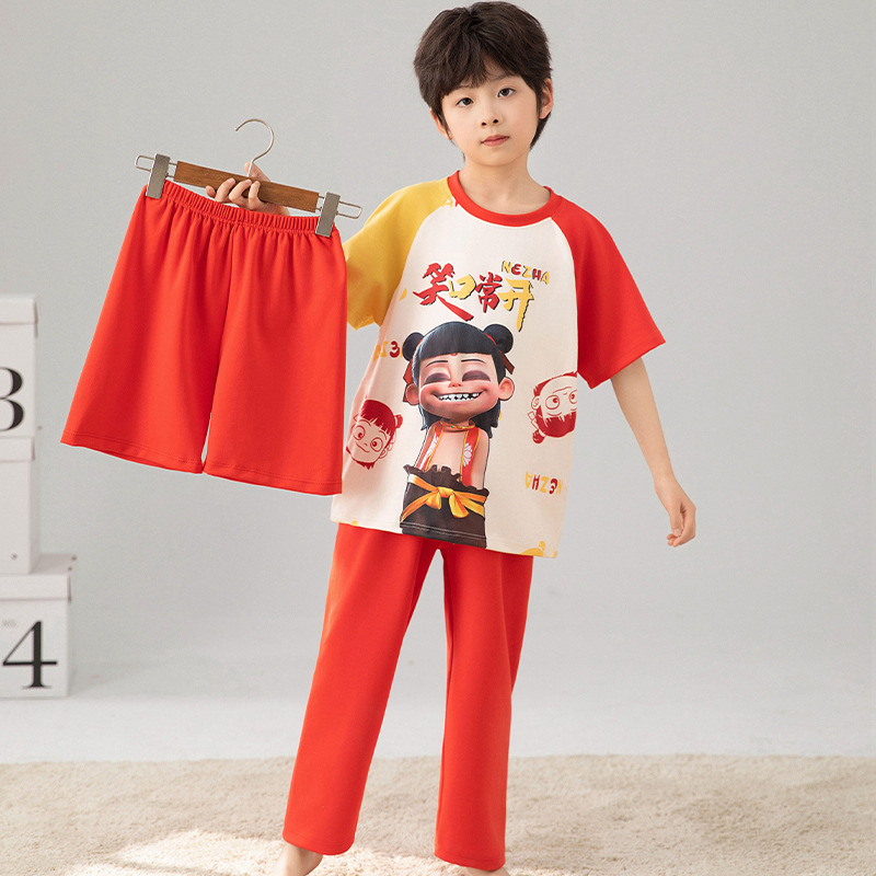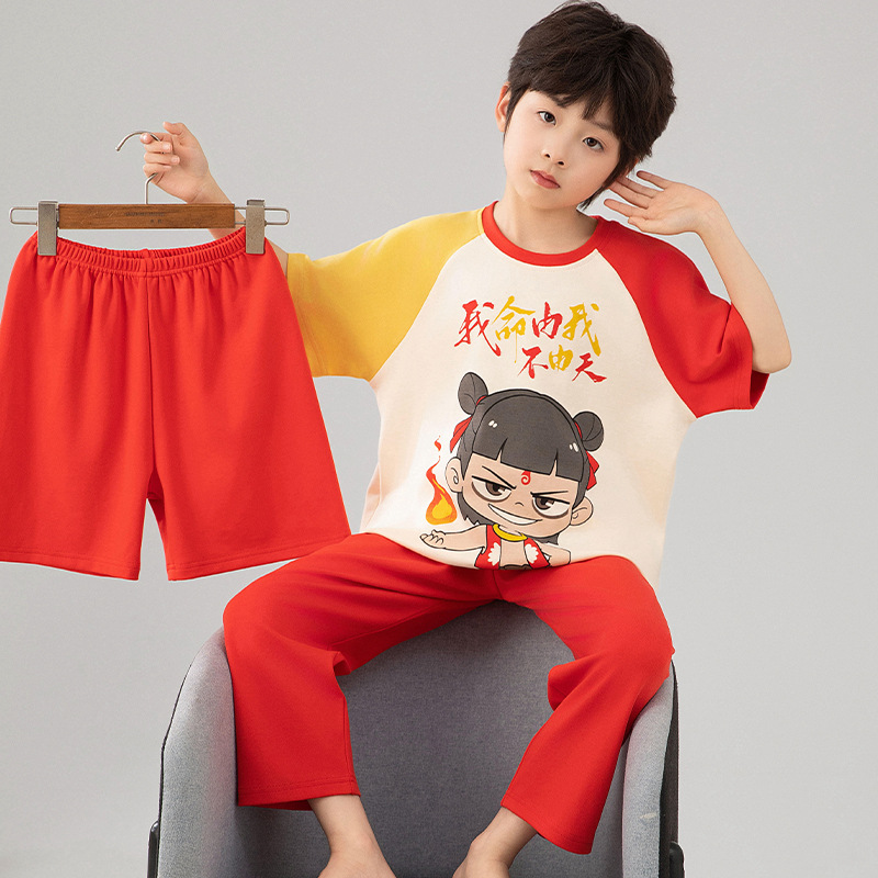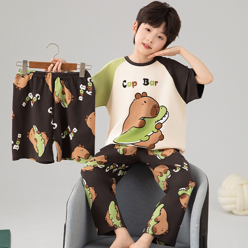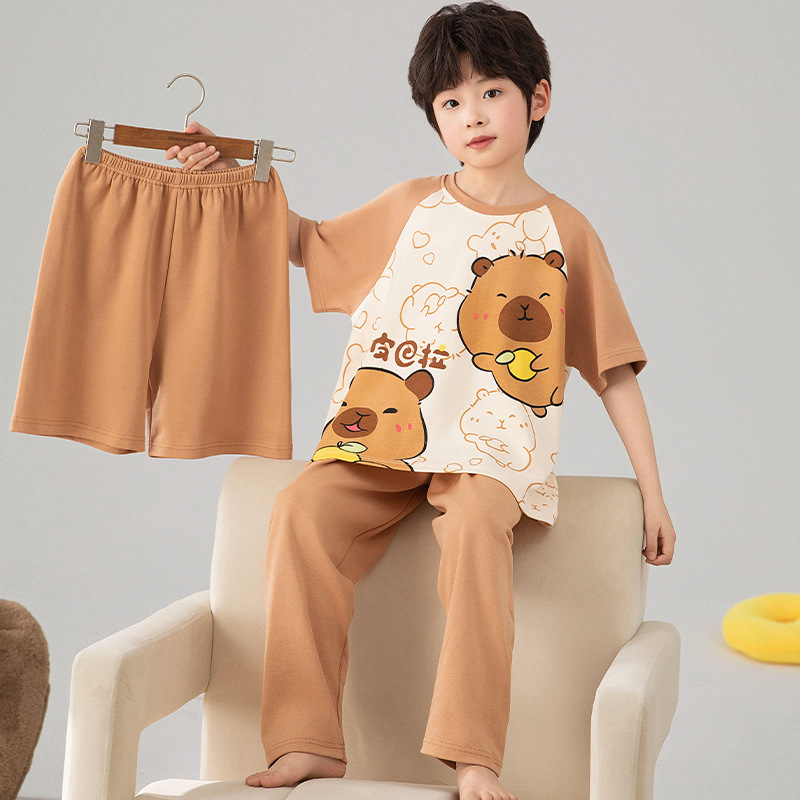 소년 잠옷 여름 얇은 순면 어린이 반팔 소년 중대형 어린이 2025 새로운 봄, 가을 면 3 피스 세트스토어 가기
