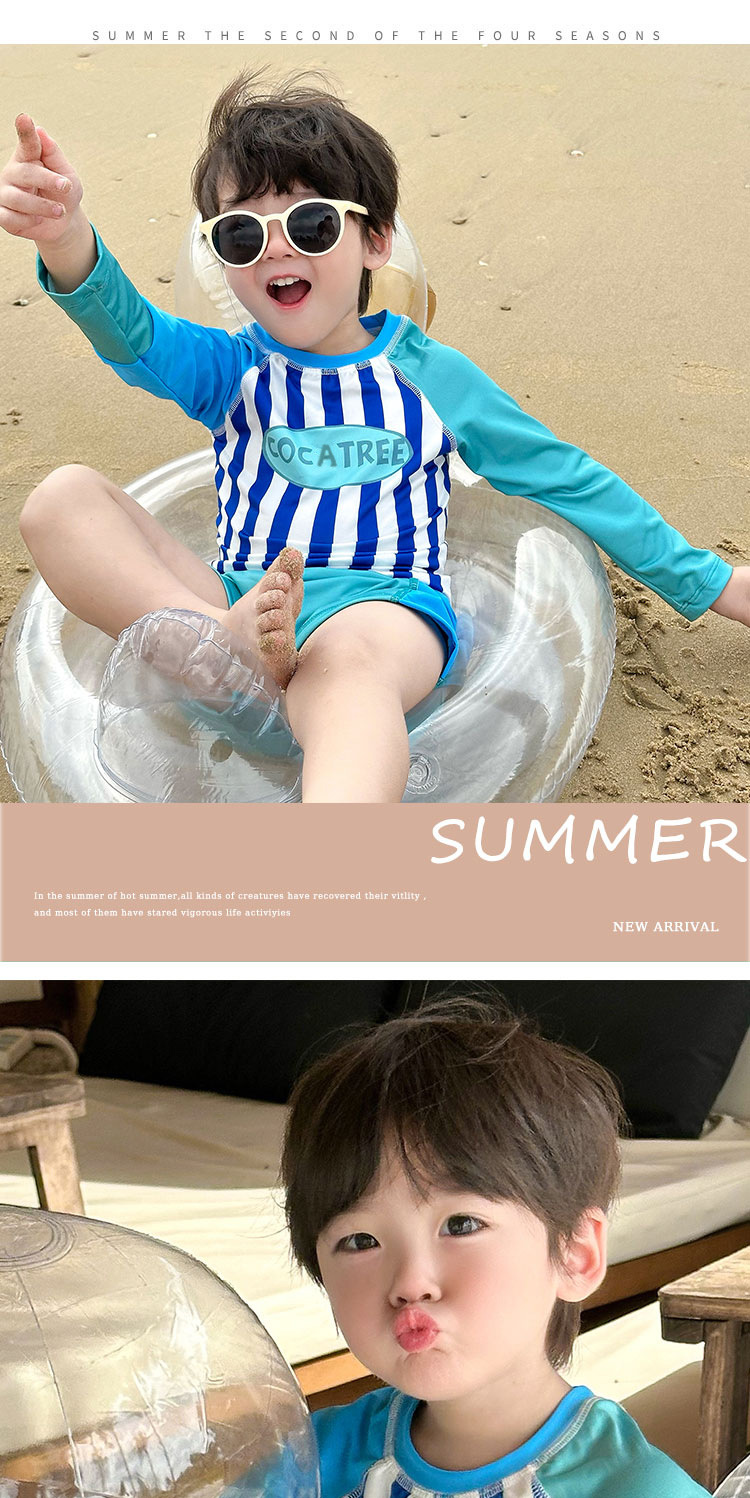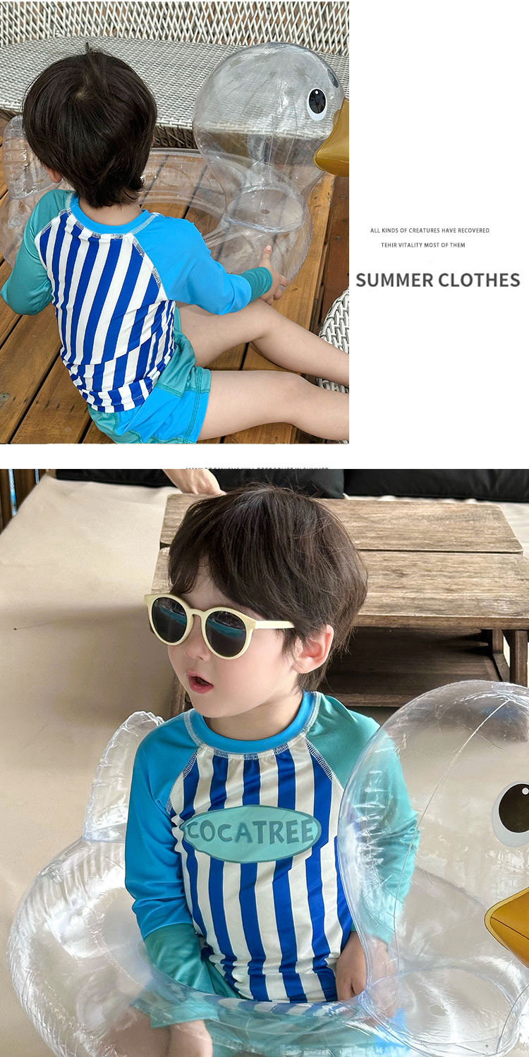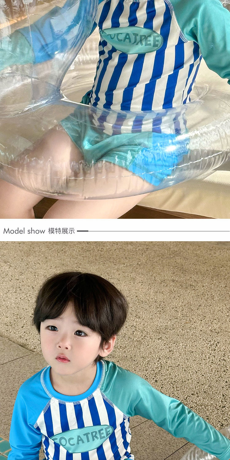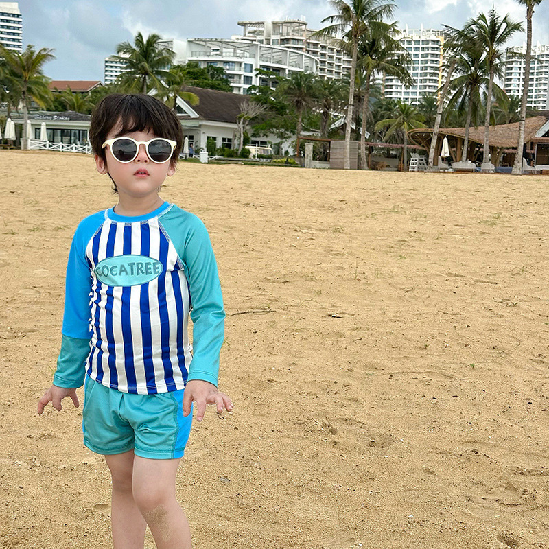 2025 여름 새 소년 수영복 어린이 분할 긴 소매 태양 보호 수영복 바지 세트 해변 휴일 수영복 빠른 건조스토어 가기
