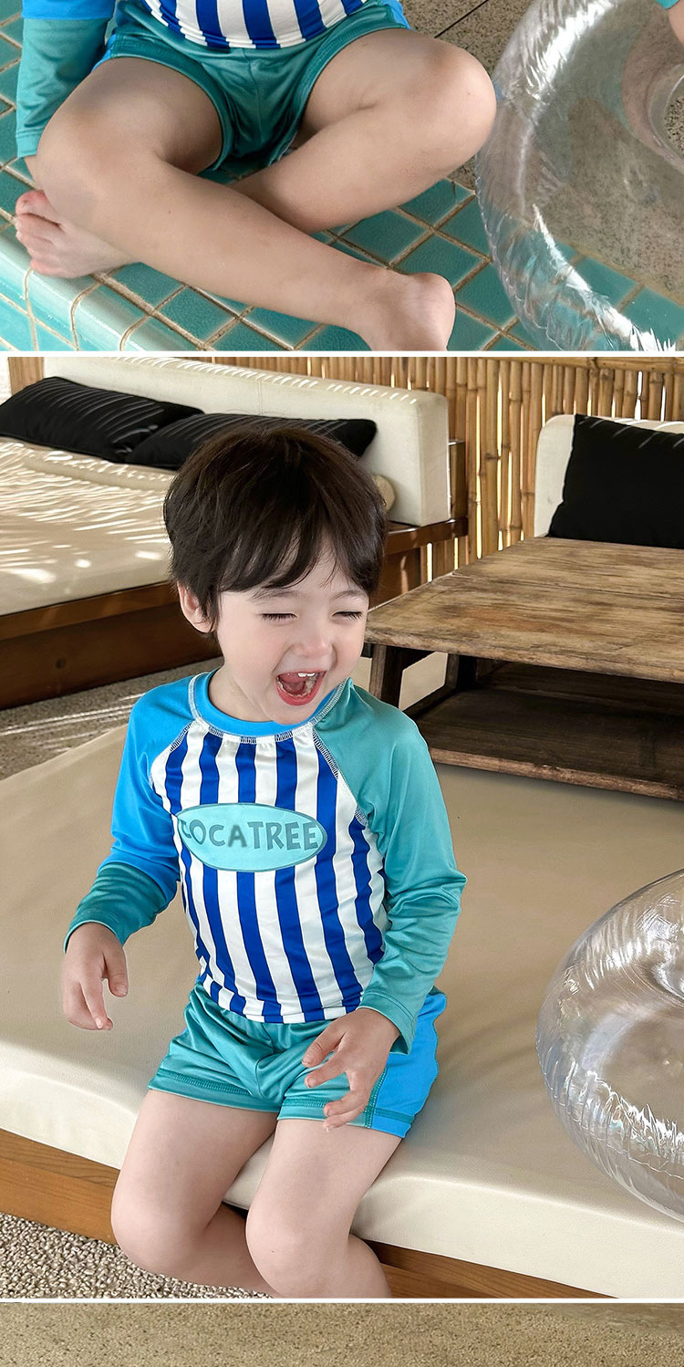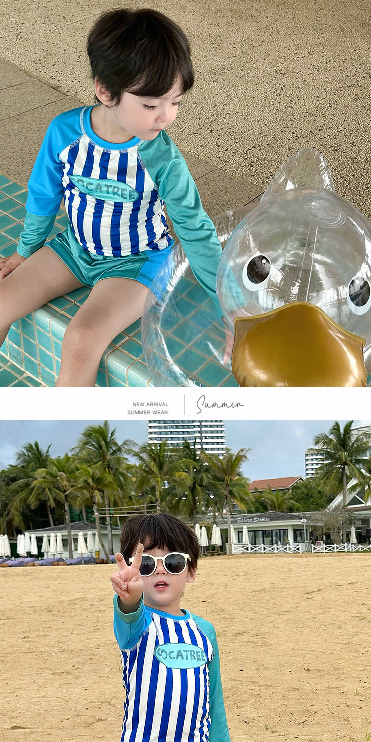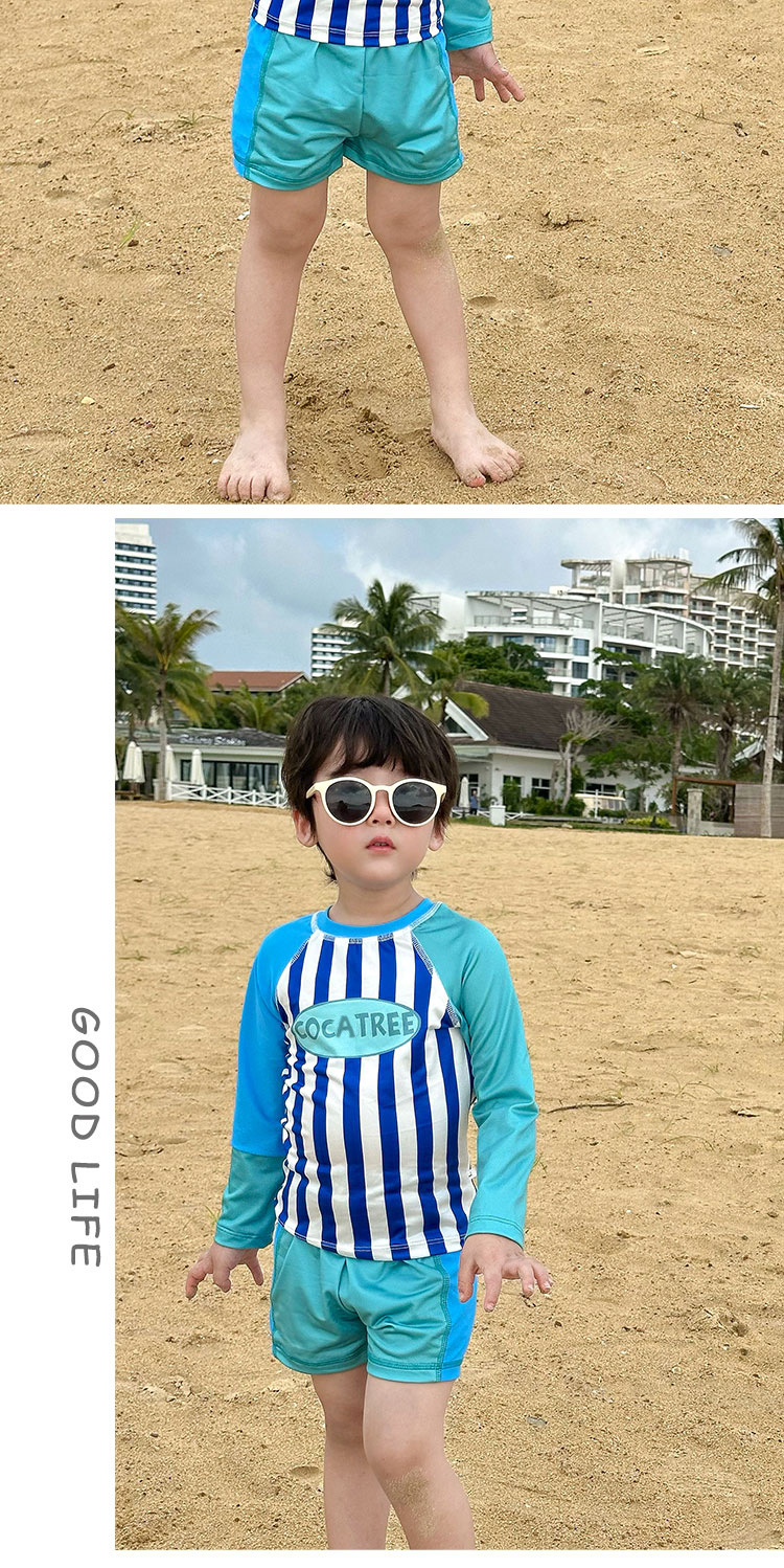 2025 여름 새 소년 수영복 어린이 분할 긴 소매 태양 보호 수영복 바지 세트 해변 휴일 수영복 빠른 건조스토어 가기