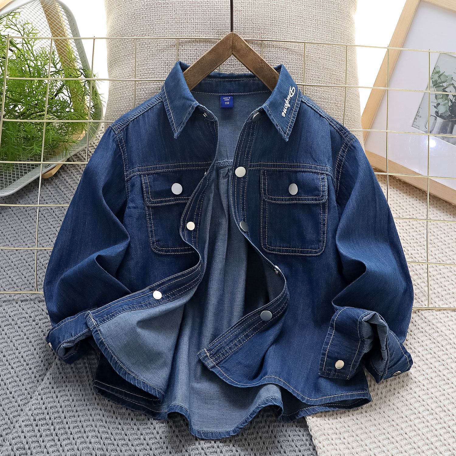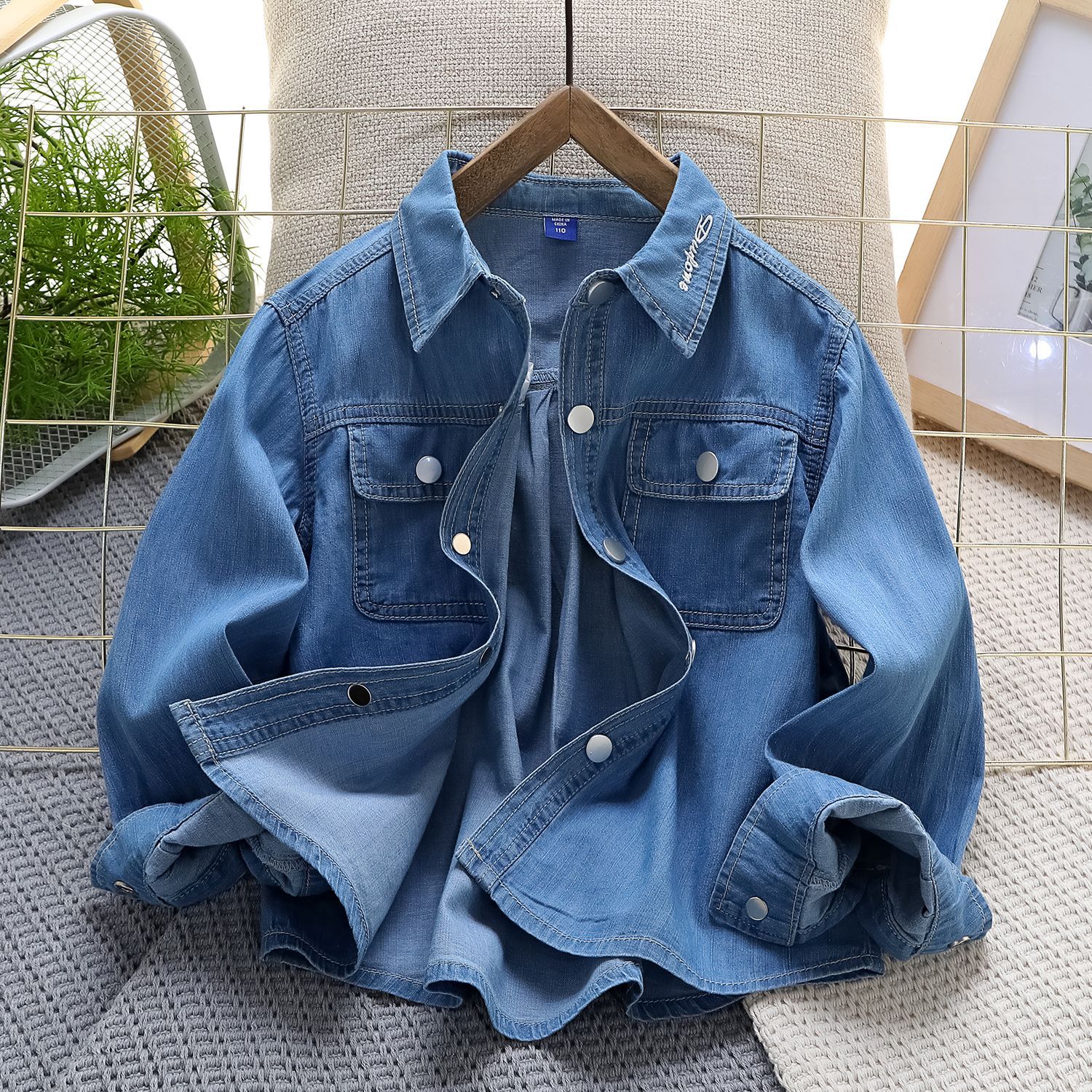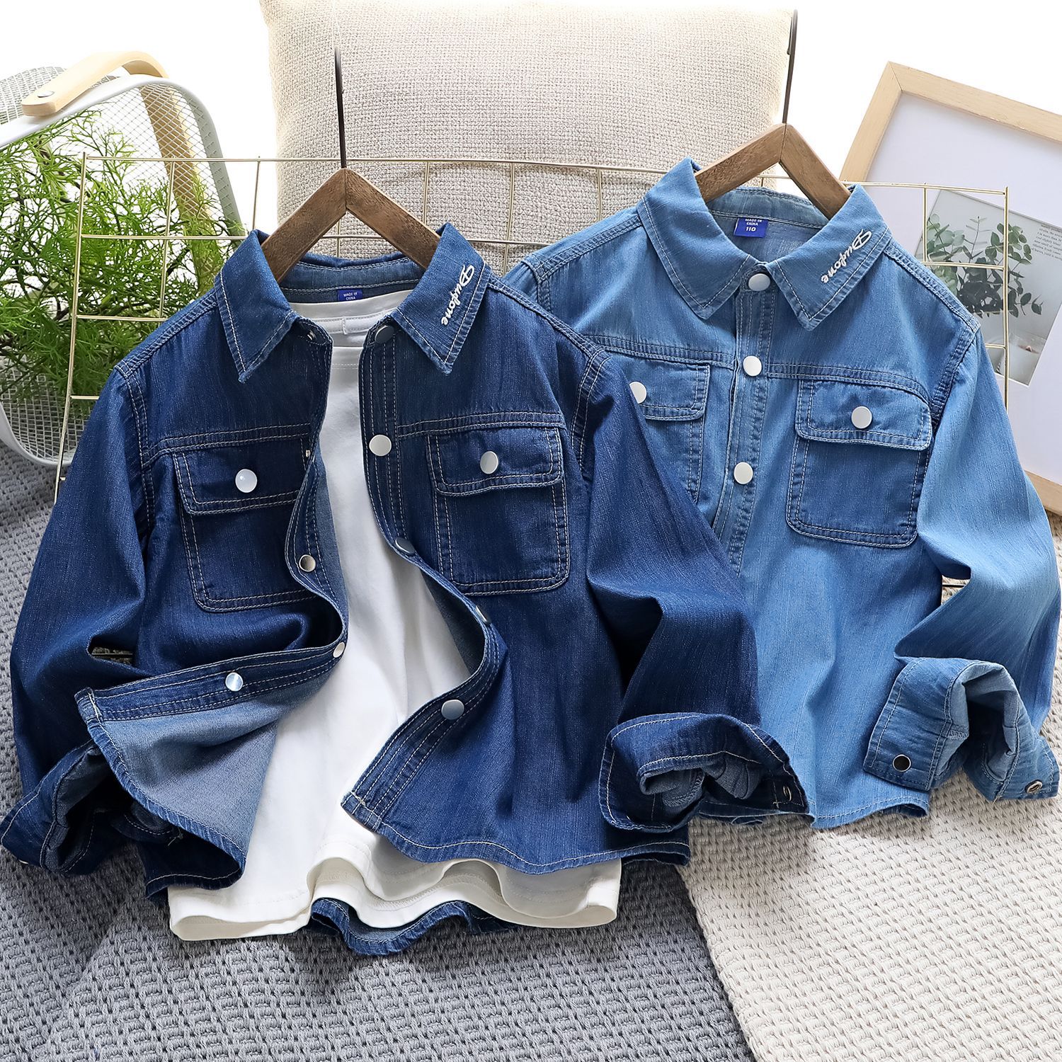 대외 무역 수출 소년 2024 새로운 캐주얼 데님 긴팔 셔츠 면 탑 어린이 한국 아동복 셔츠