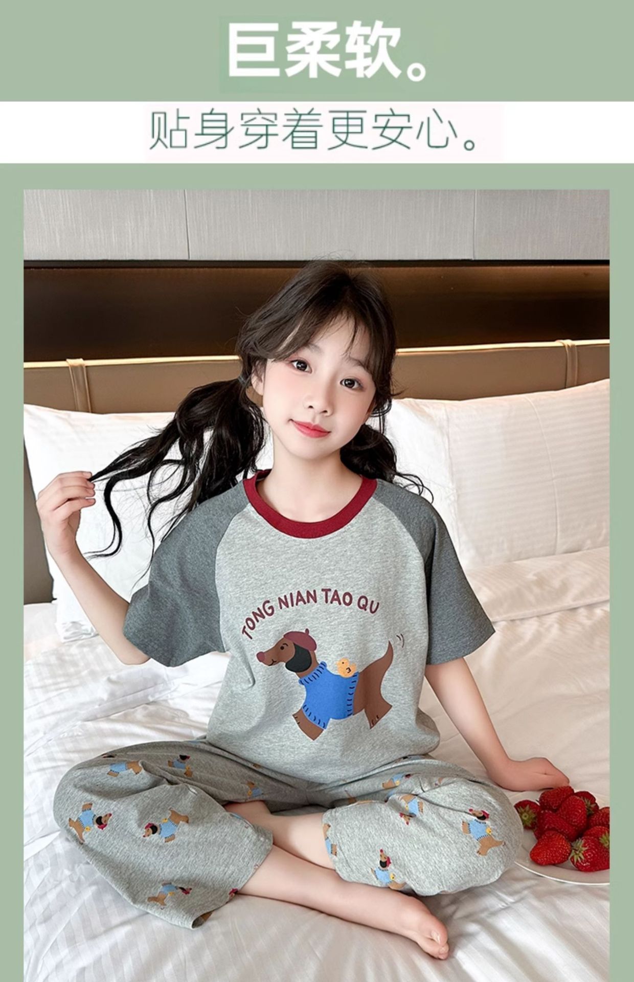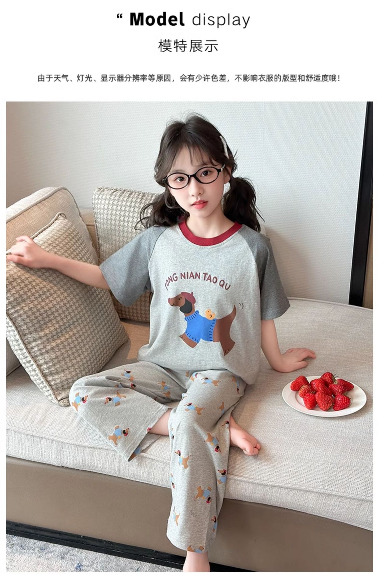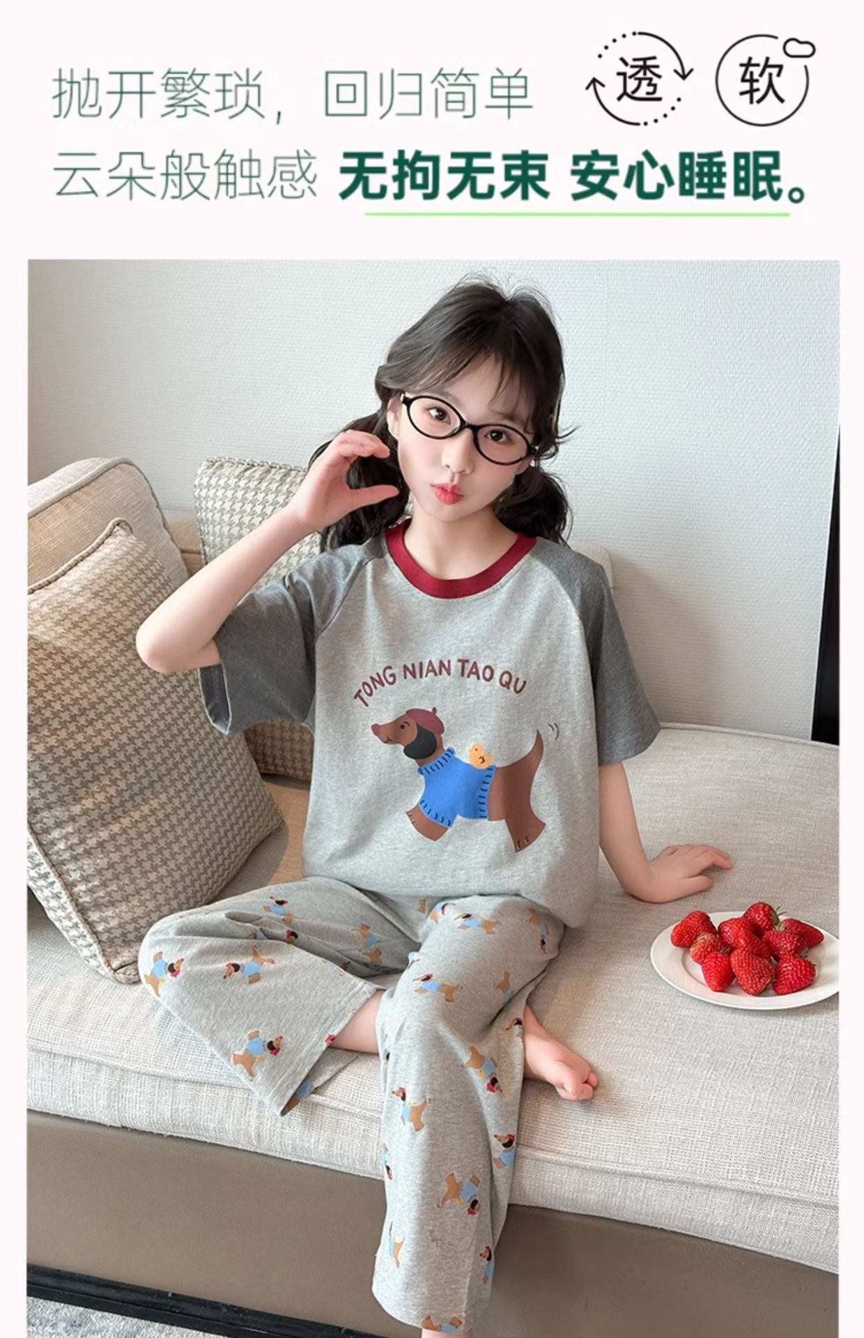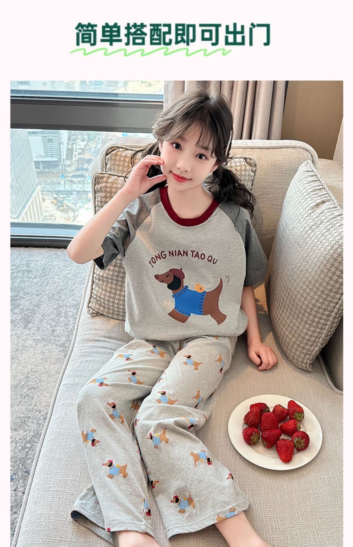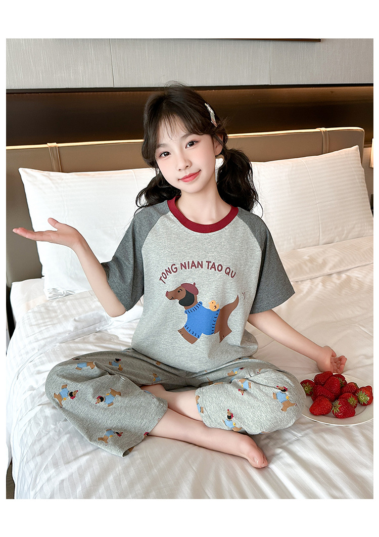 어린이 잠옷 소녀 여름 2025 새로운 스타일 소녀 인터넷 연예인 인기 홈웨어 세트 반팔 얇은 투피스 세트스토어 가기