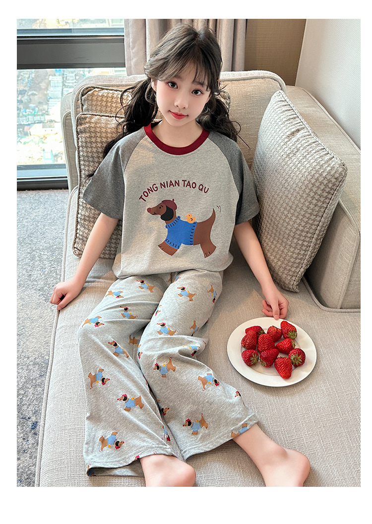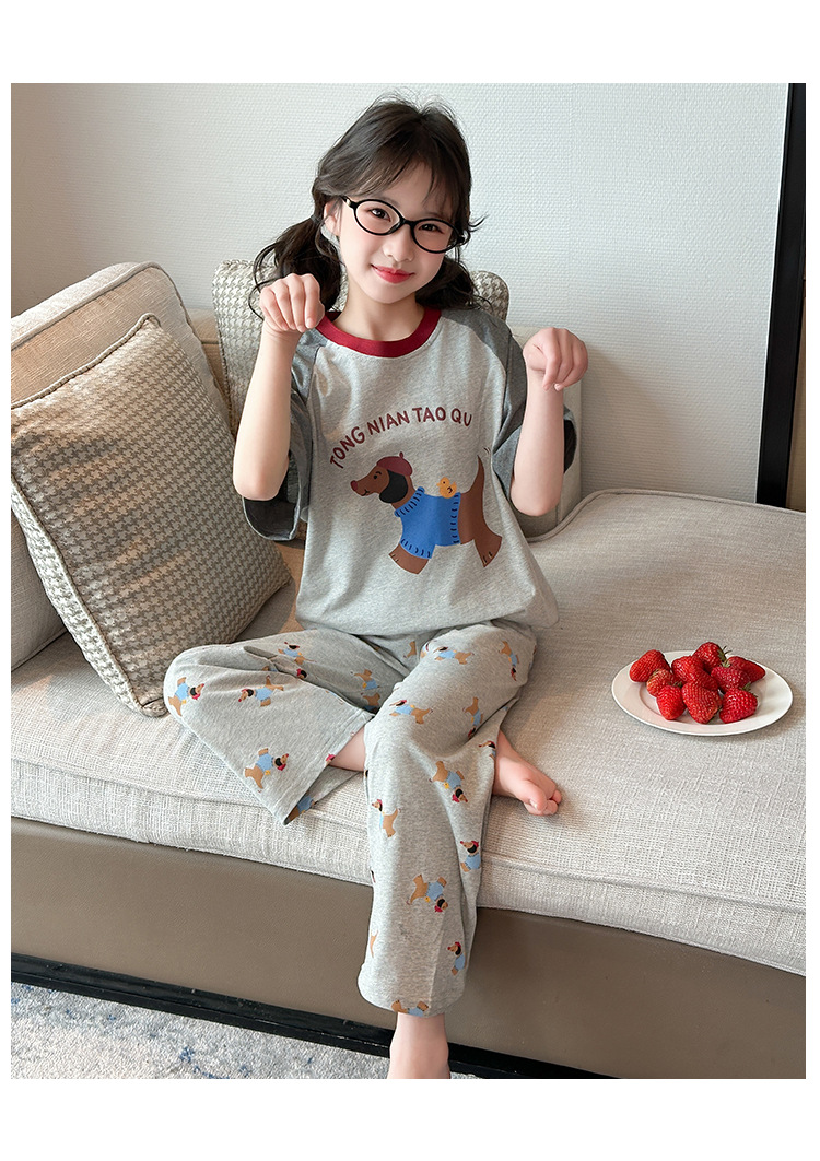 어린이 잠옷 소녀 여름 2025 새로운 스타일 소녀 인터넷 연예인 인기 홈웨어 세트 반팔 얇은 투피스 세트