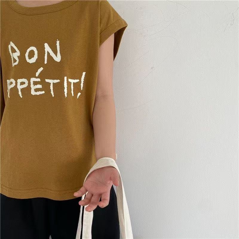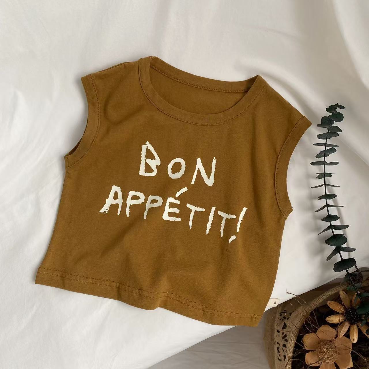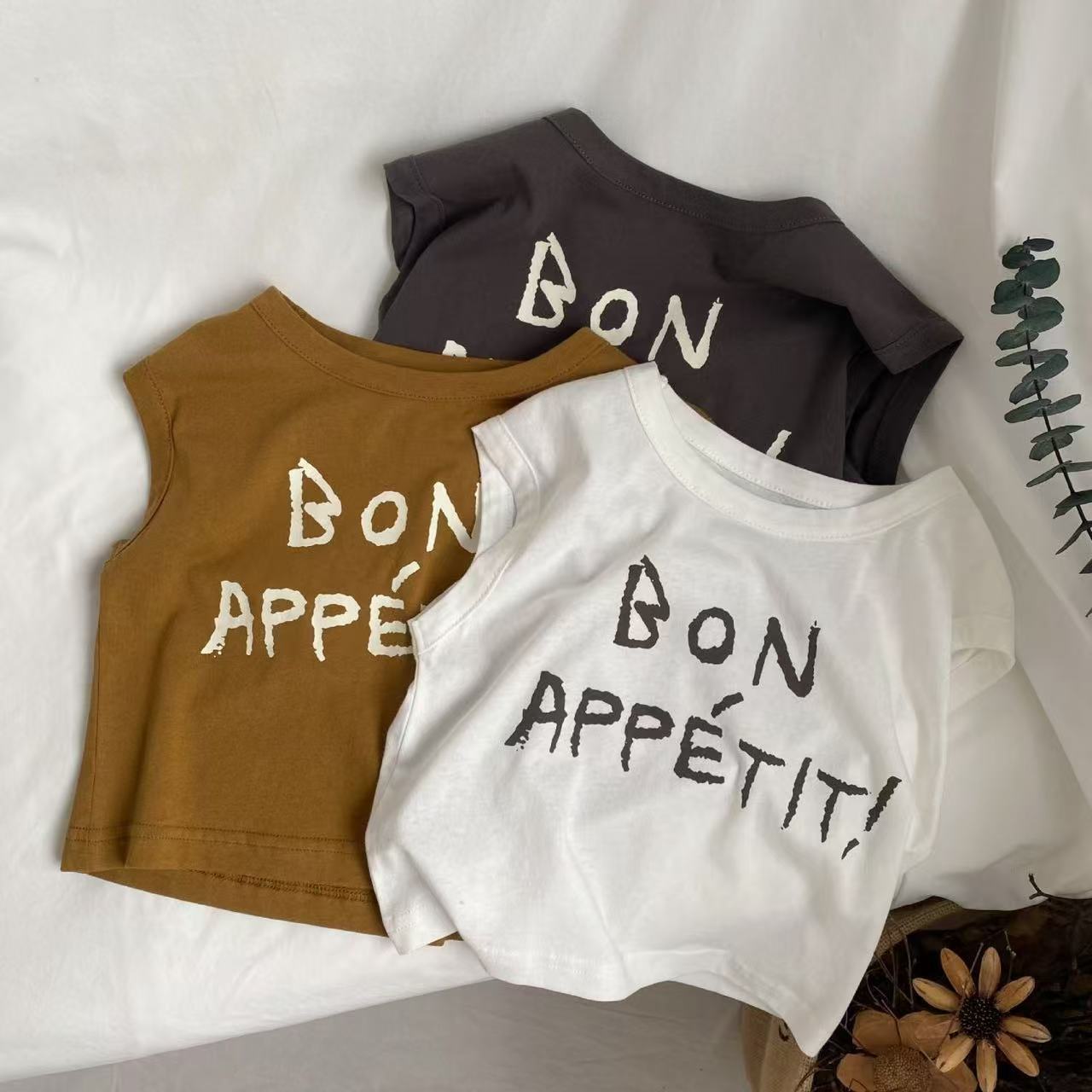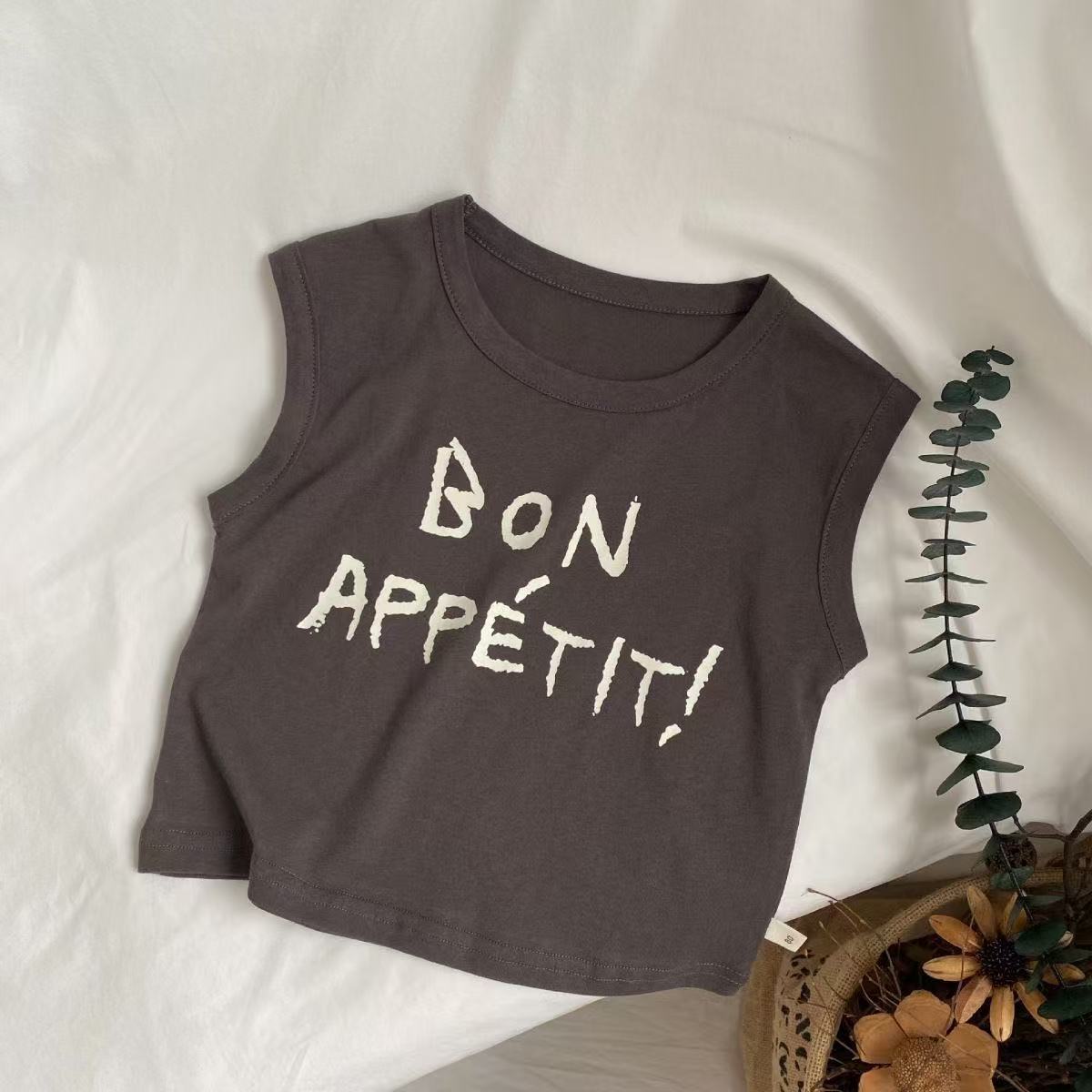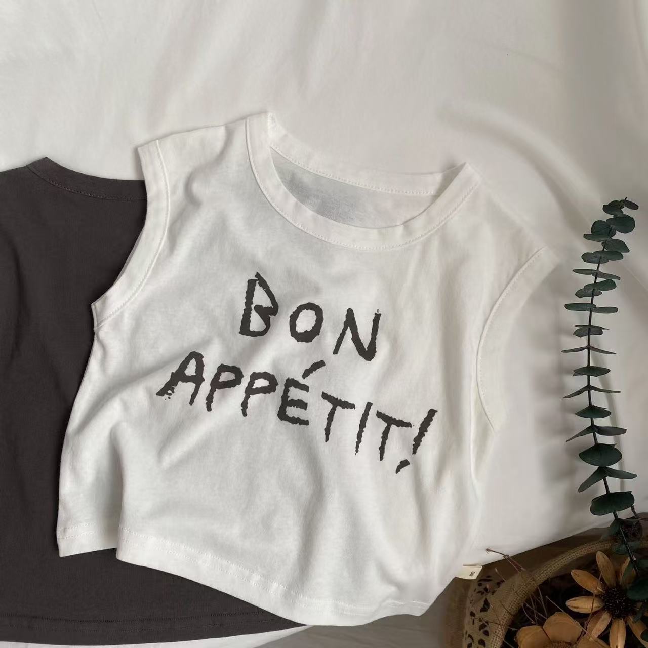 2025 여름 한국 스타일 남성과 여성의 아기와 어린이 서양식 문자 인쇄 민소매 티셔츠 캐주얼 조끼 탑 여름 트렌드스토어 가기