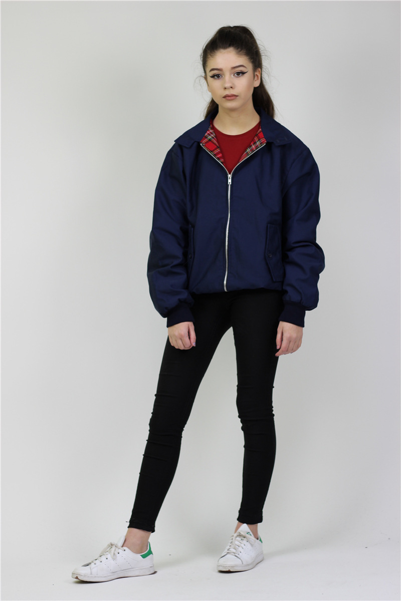 클린 핏 네이비 스탠드 칼라 해링턴 재킷 남성 봄과 가을 러피 잘 생긴 고급 미국식 짧은 작업 코트스토어 가기