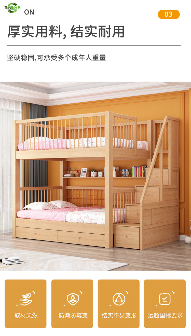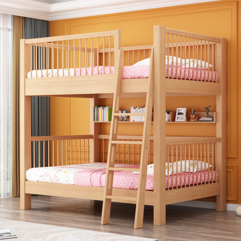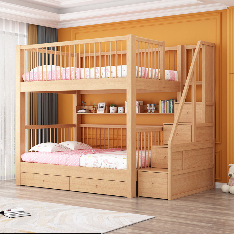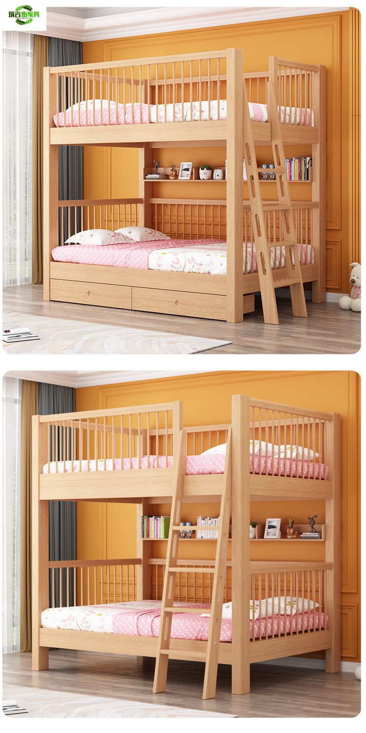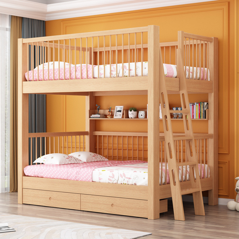 • 너도밤나무 이층 침대 측면 경사 사다리 책장 서랍