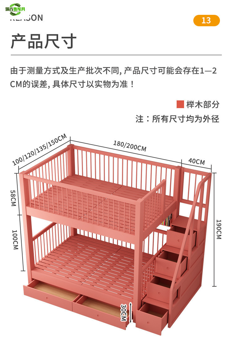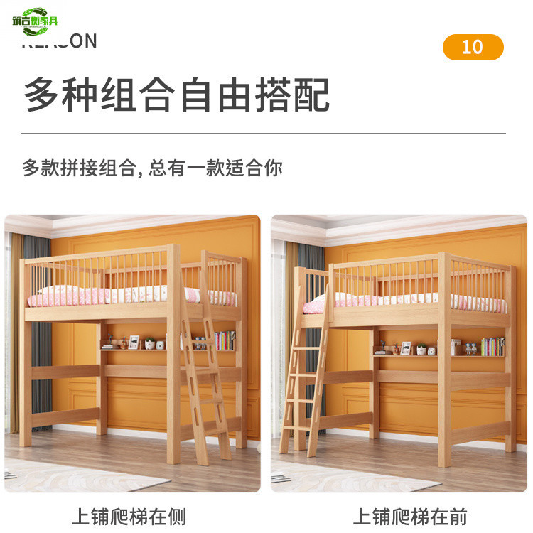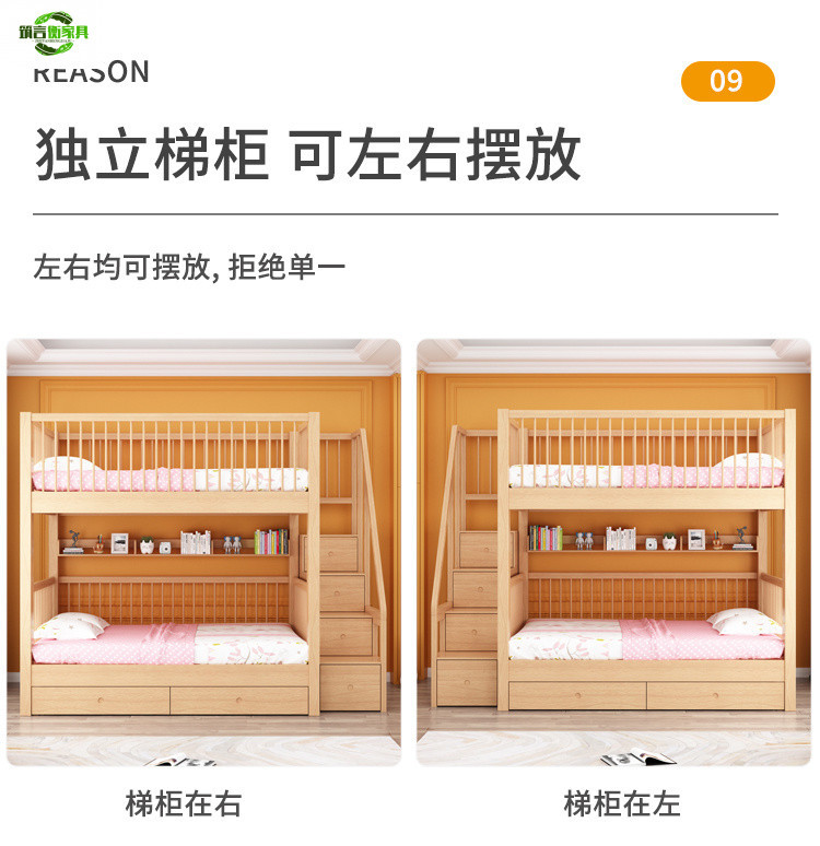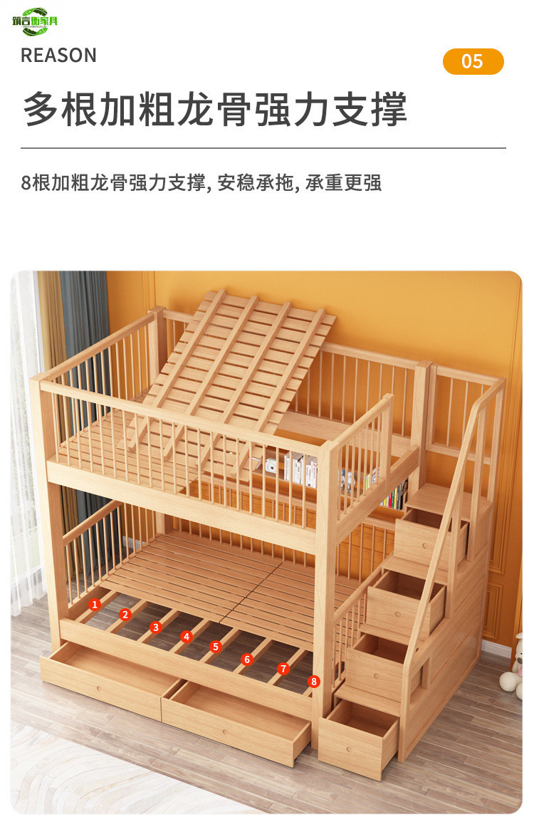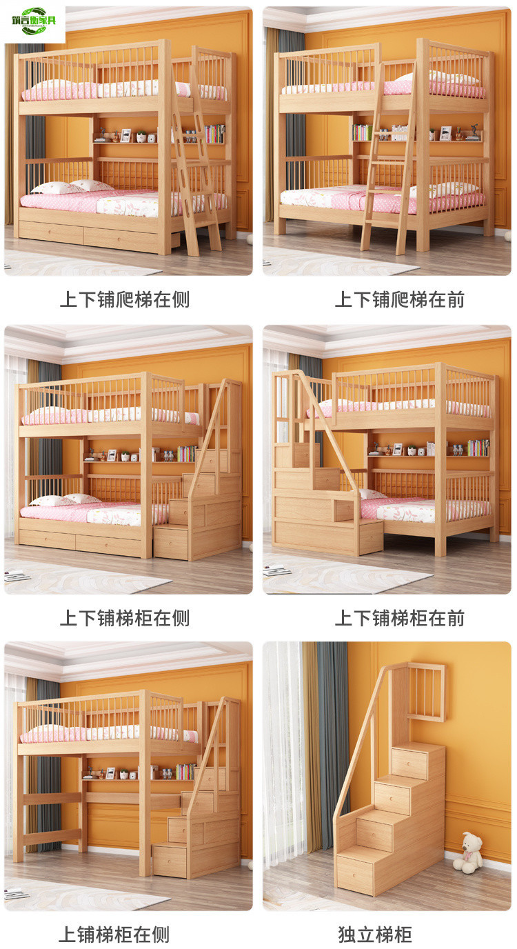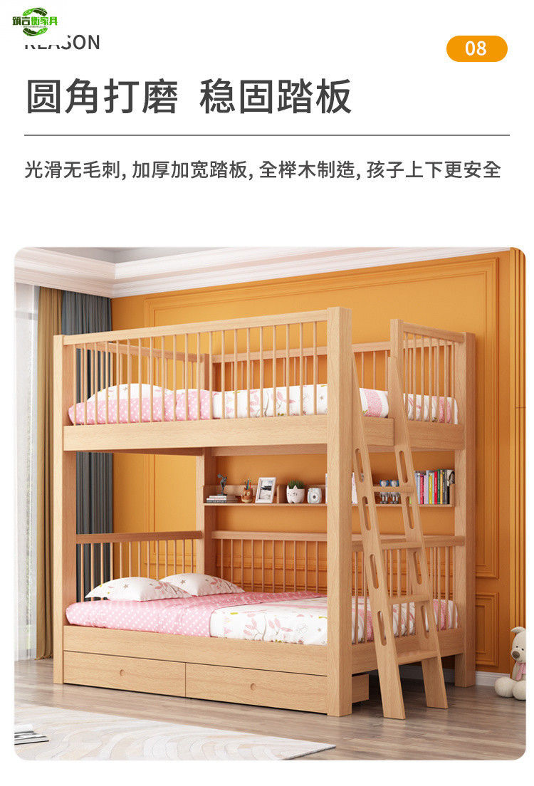 • 너도밤나무 이층 침대 측면 경사 사다리 책장 서랍