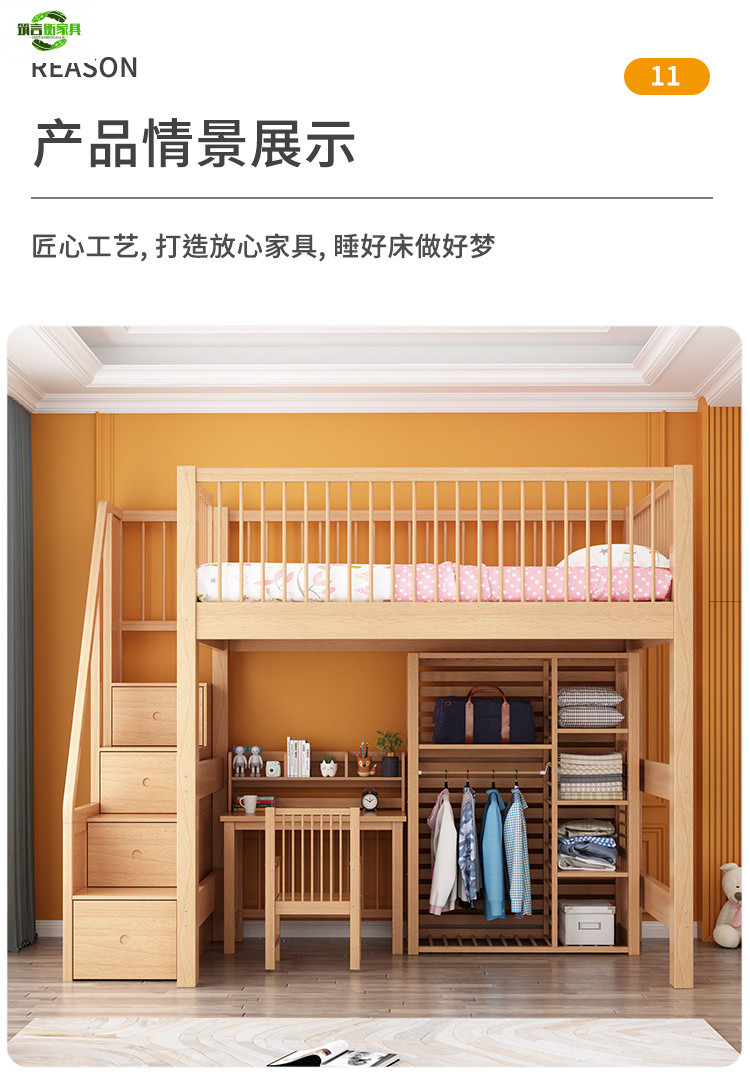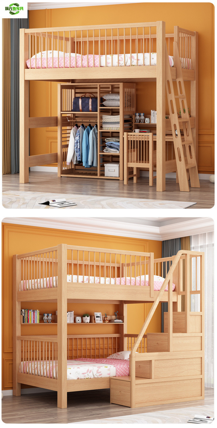 이탈리아 어린이 침대 원목 이층 침대 이층 침대 다기능 미니멀리스트 조합 높낮이 침대