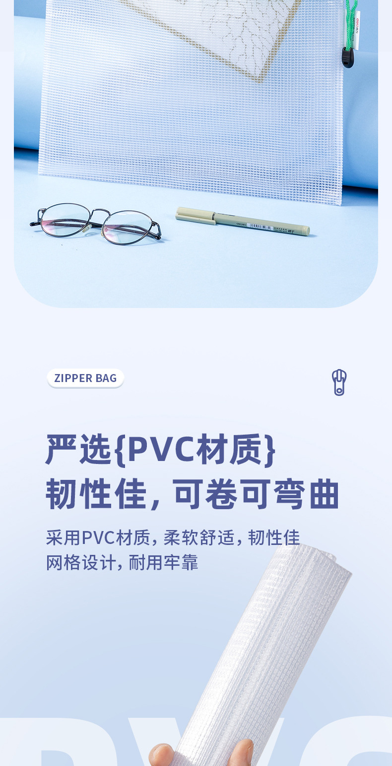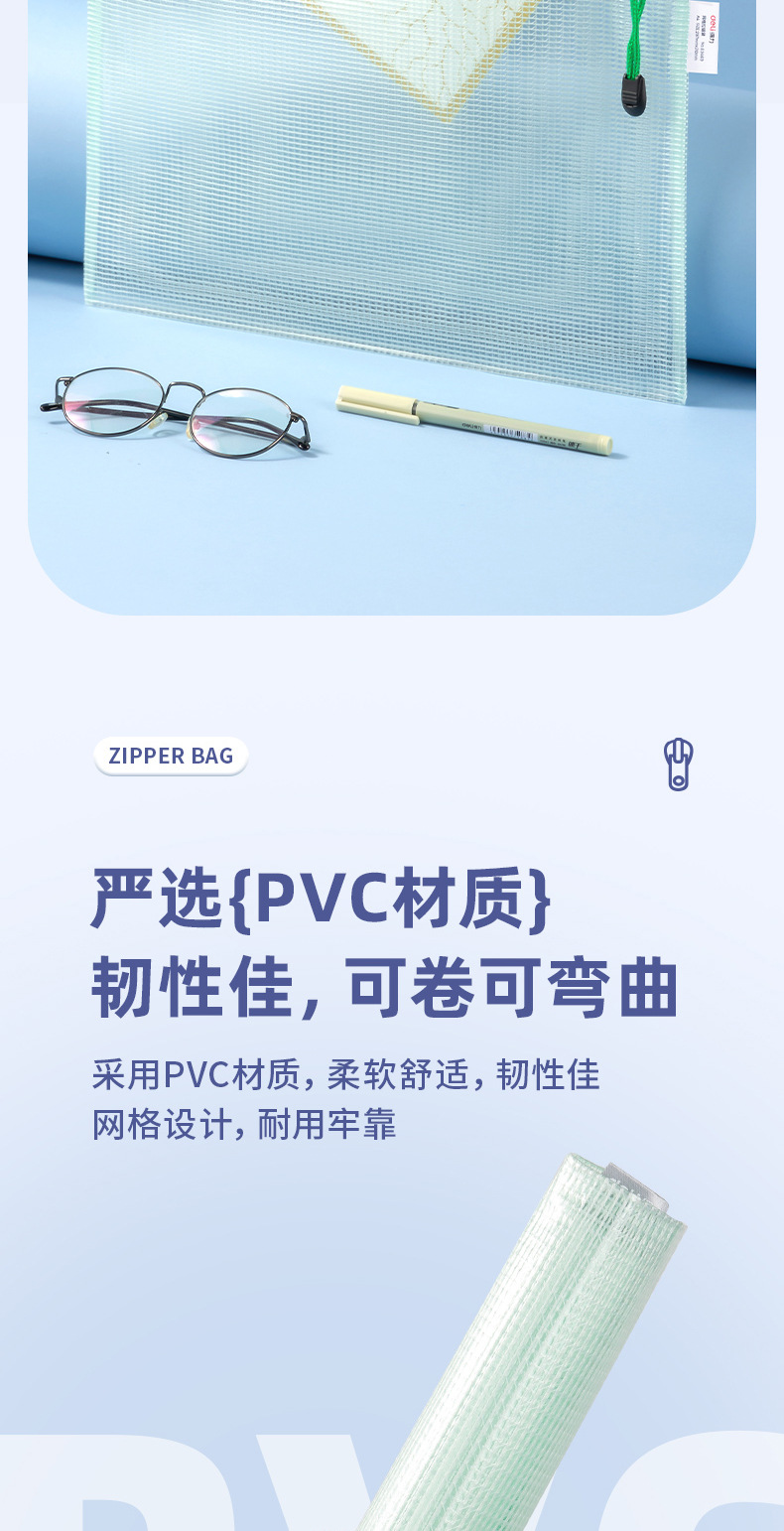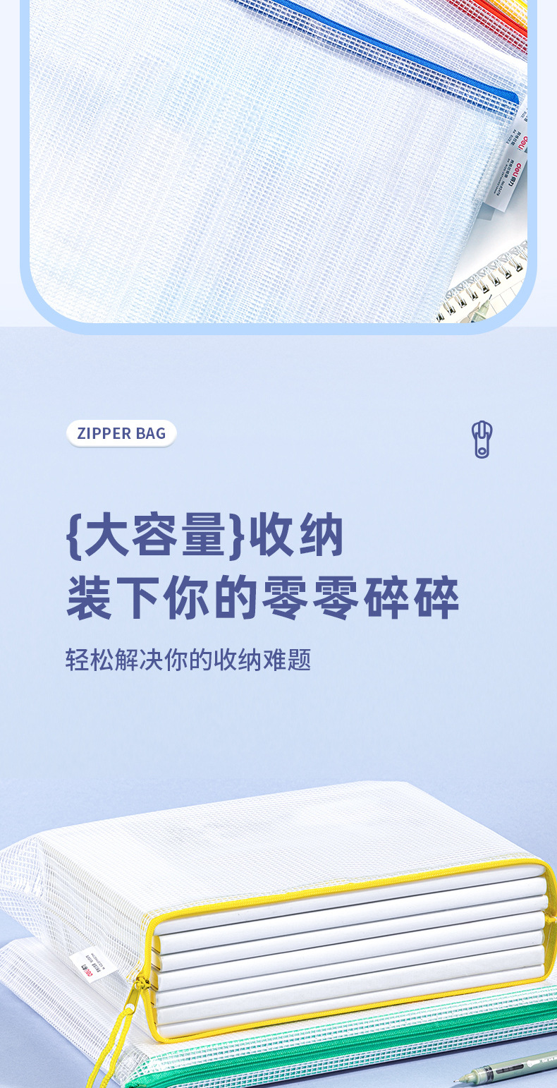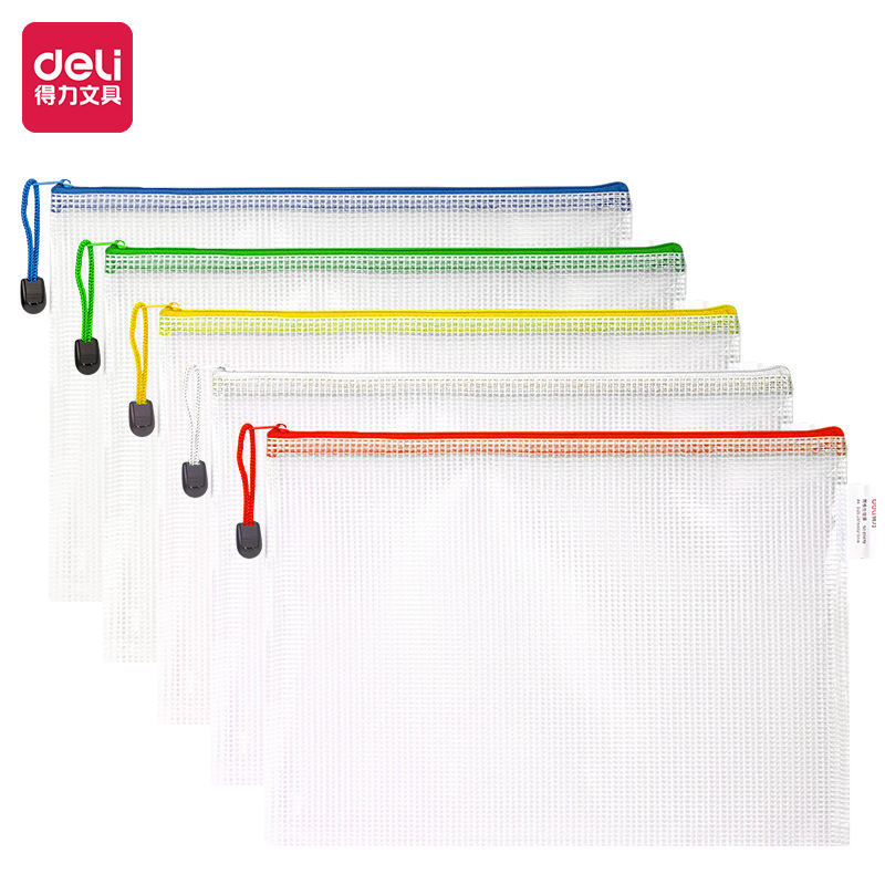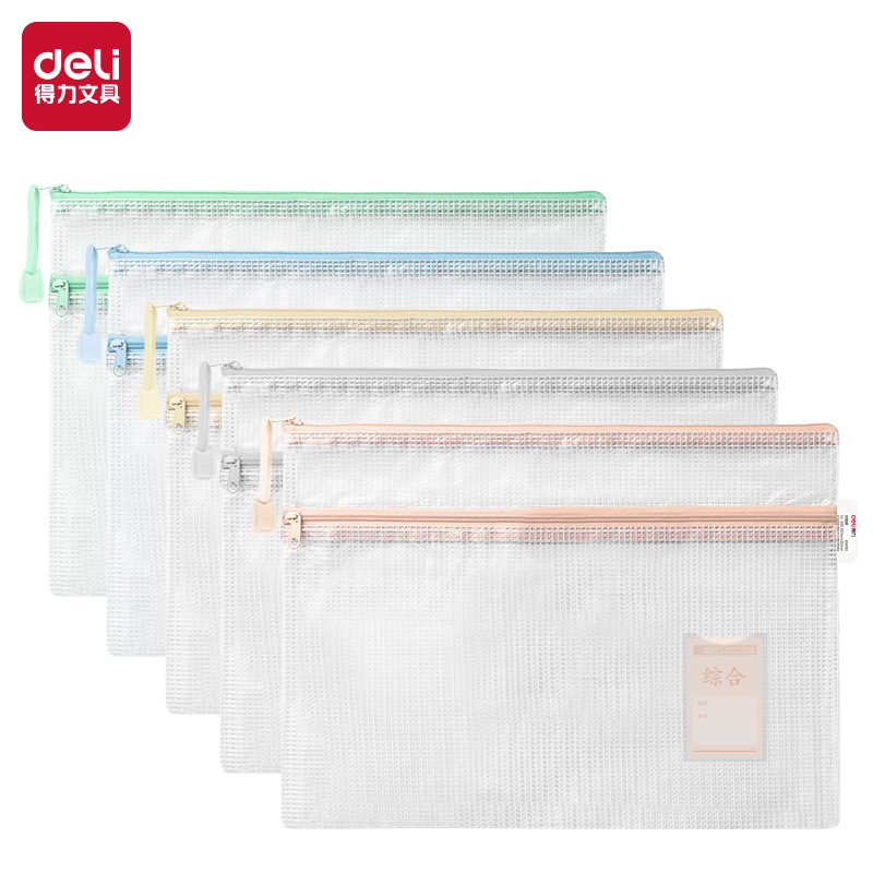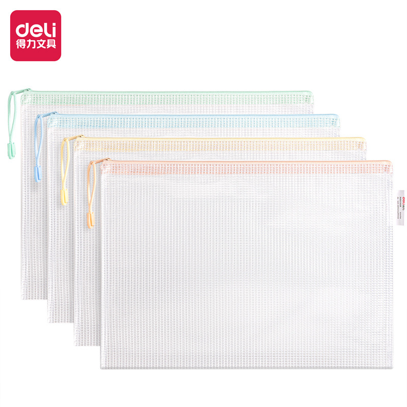 델리 63469/63479 메쉬 지퍼 백 A4 투명 PVC 학생 시험지 사무실 문서 보관 가방스토어 가기