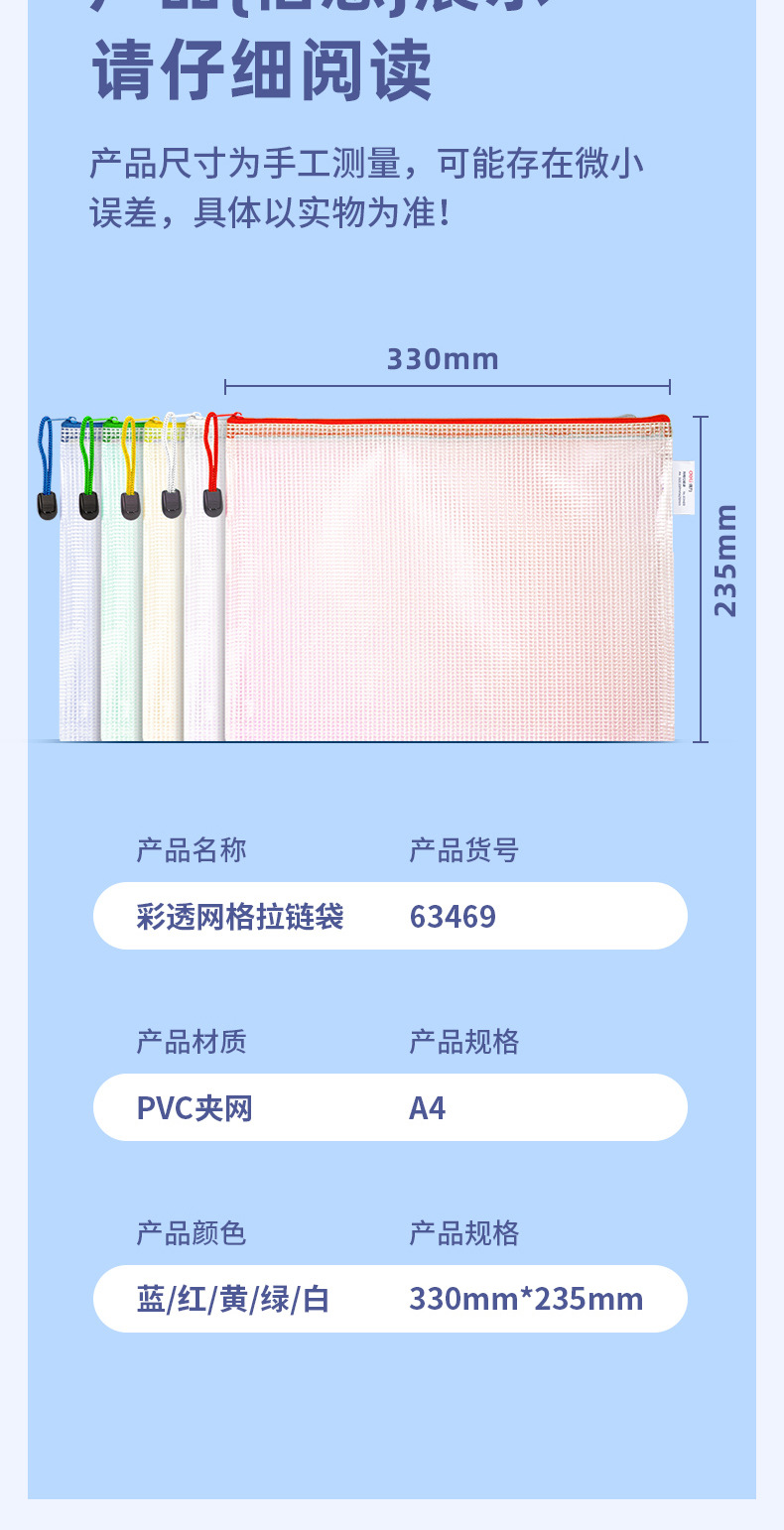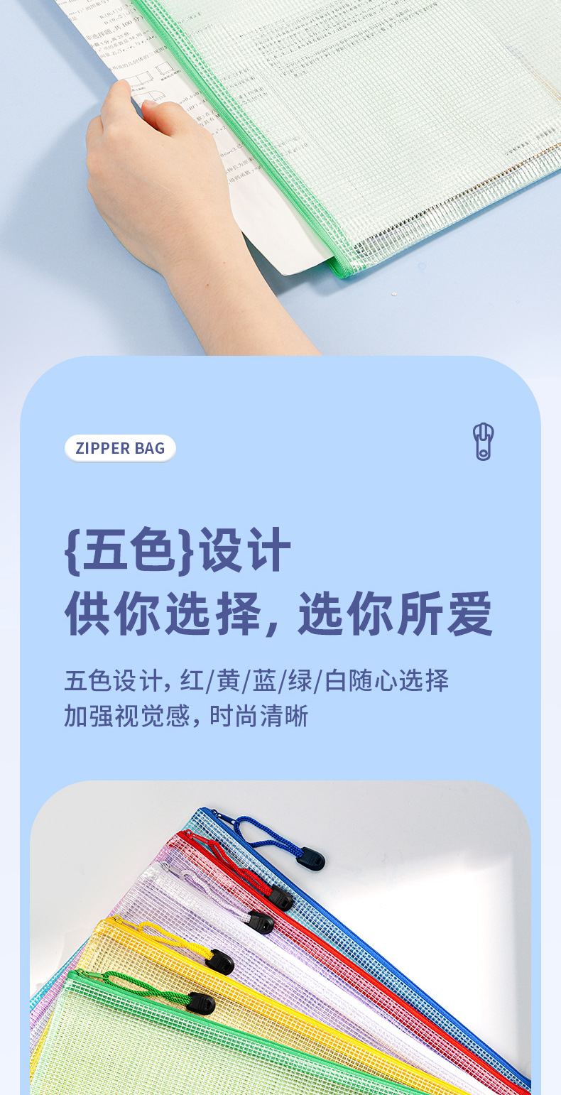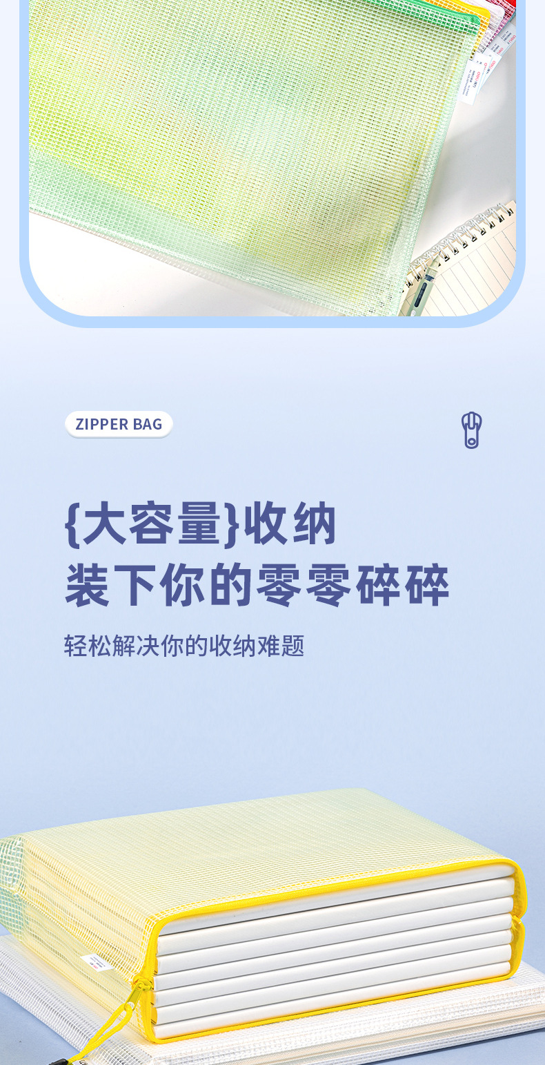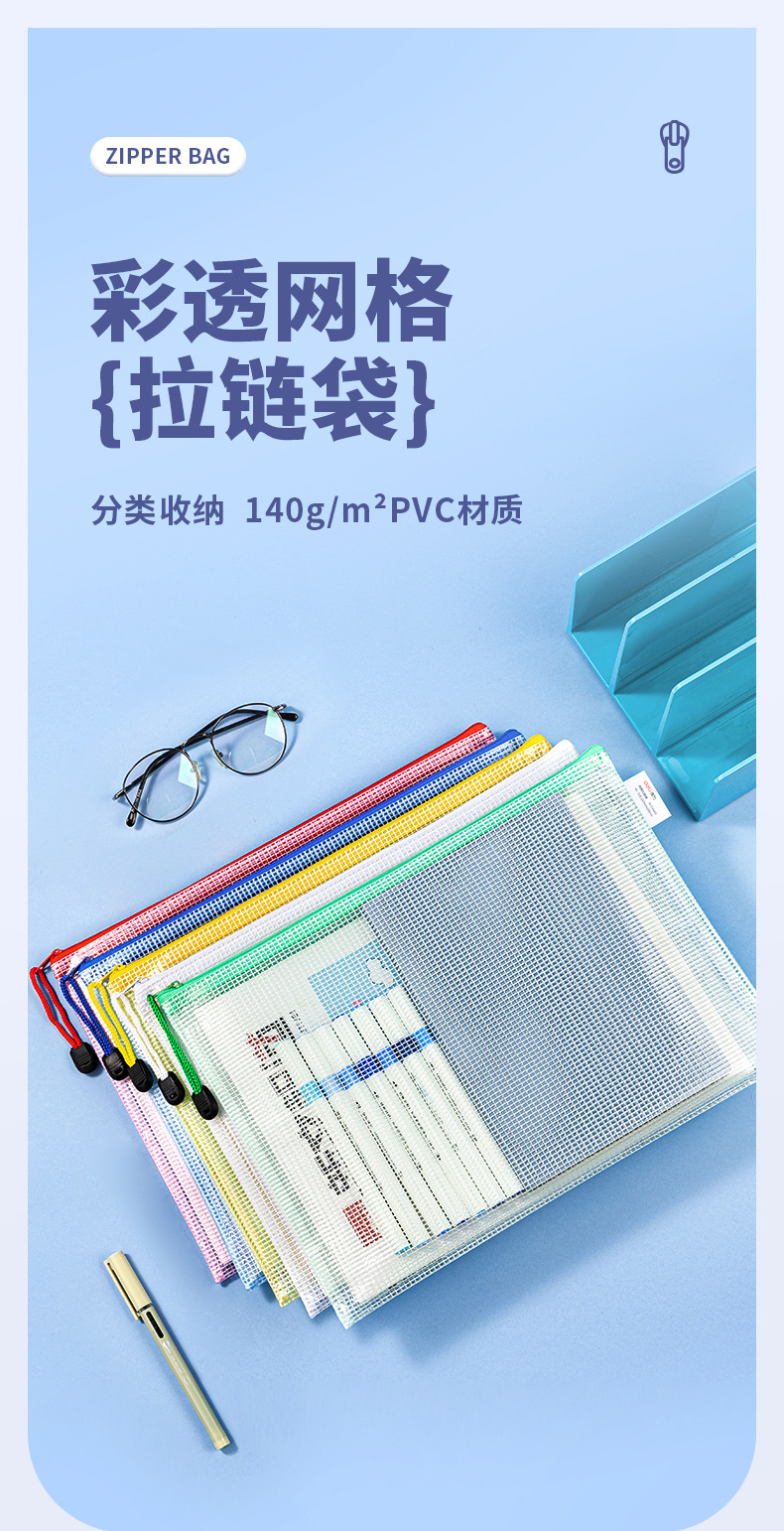 • 63469_A4 컬러 투명 메쉬 지퍼백