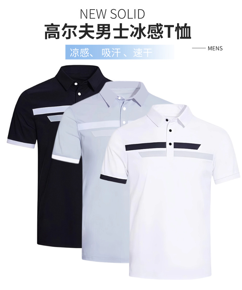 즉시 출고 가능한 아이스 실크 골프 의류 남성용 여름 반팔 티셔츠 스포츠 탄력 골프 폴로 셔츠 통기성 및 빠른 건조