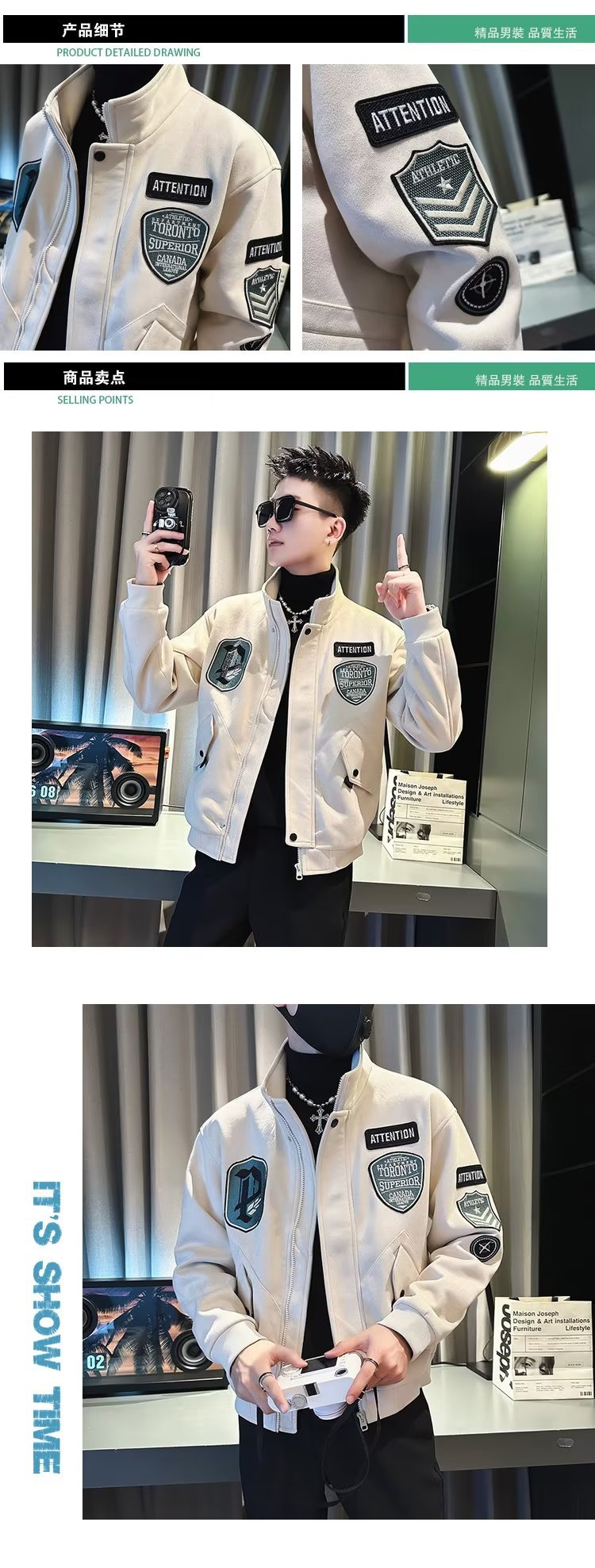 크로스보더 패션 재킷 남성 봄 여름 트렌디 자수 봄버 재킷 미국 야구 정장 캐주얼 재킷스토어 가기