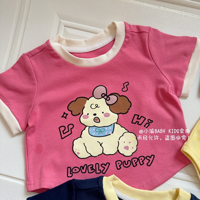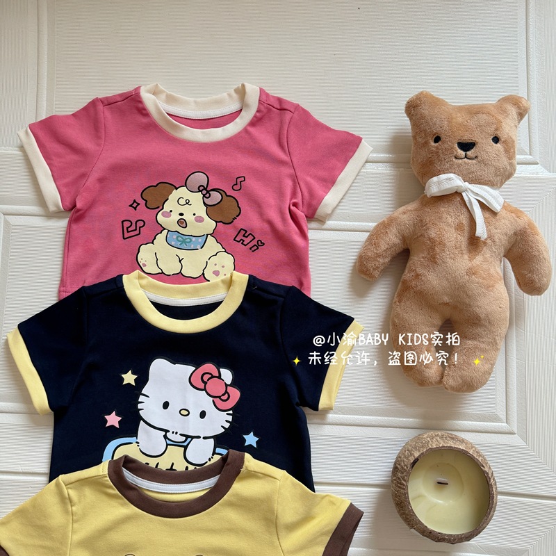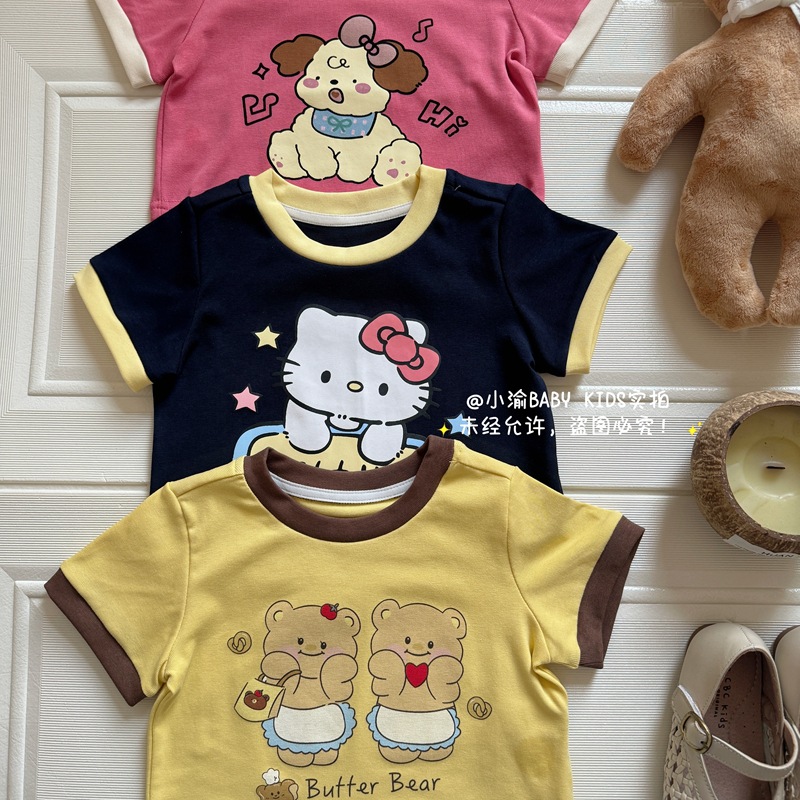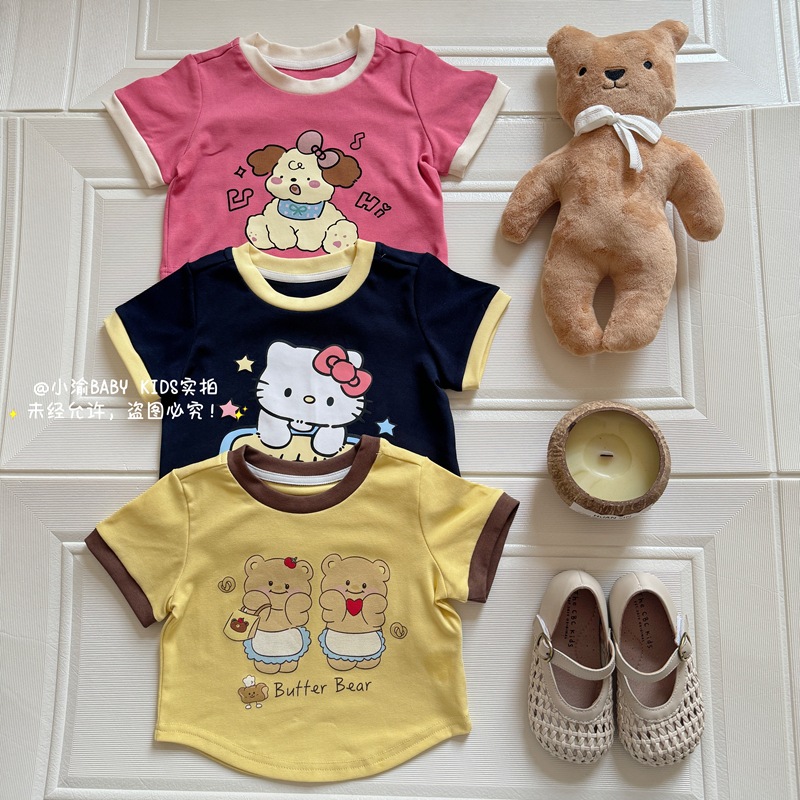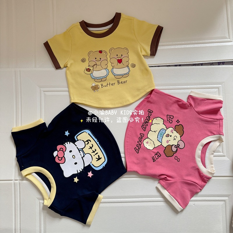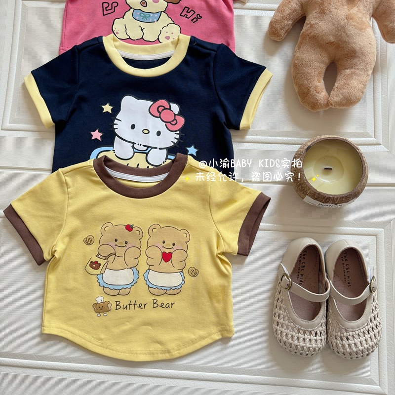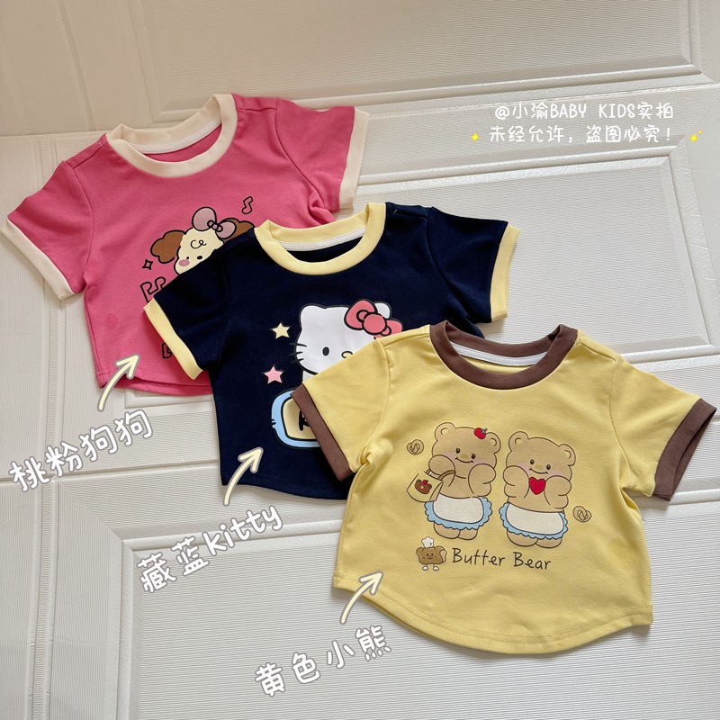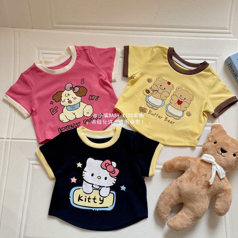 여자 반팔 티셔츠 2025 여름 새 어린이 귀여운 만화 인쇄 반팔 소녀 면화 둥근 목 티셔츠스토어 가기