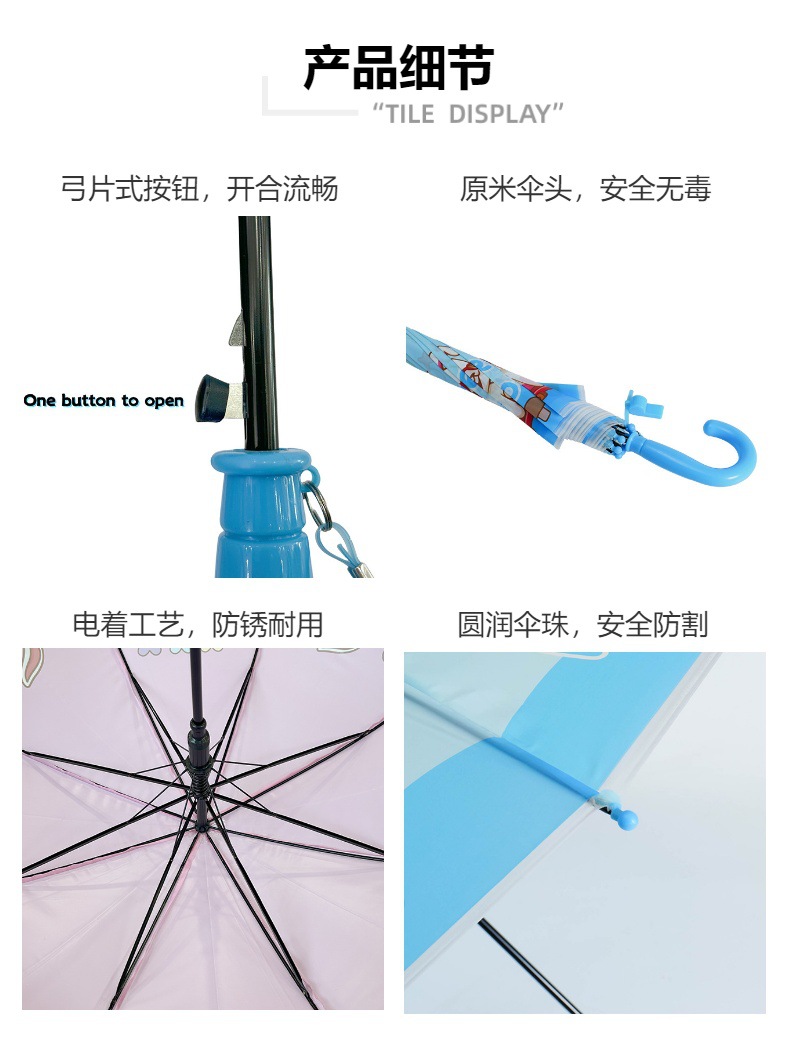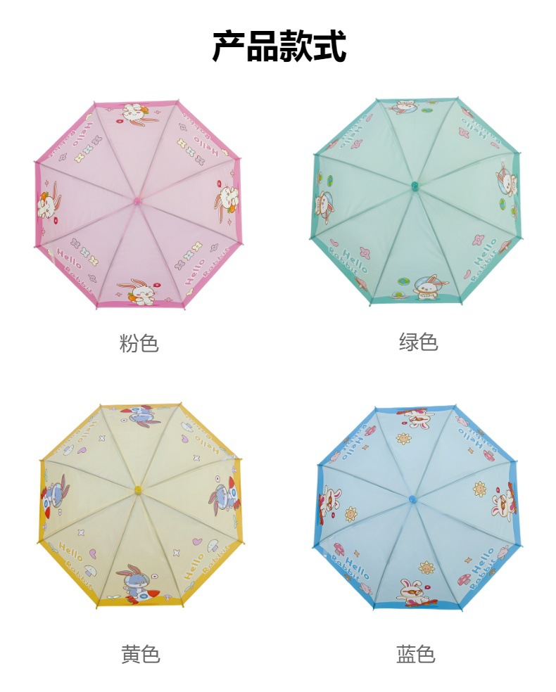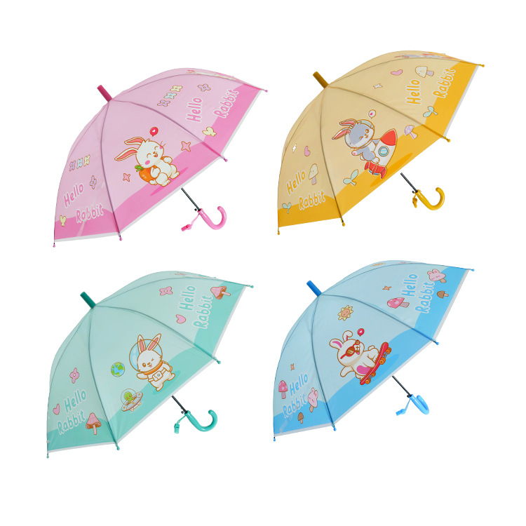 외국 무역 품질 19inch 만화 어린이 우산 귀여운 양산 곡선형 어린이 토끼 자동 우산 친환경 POE 우산스토어 가기