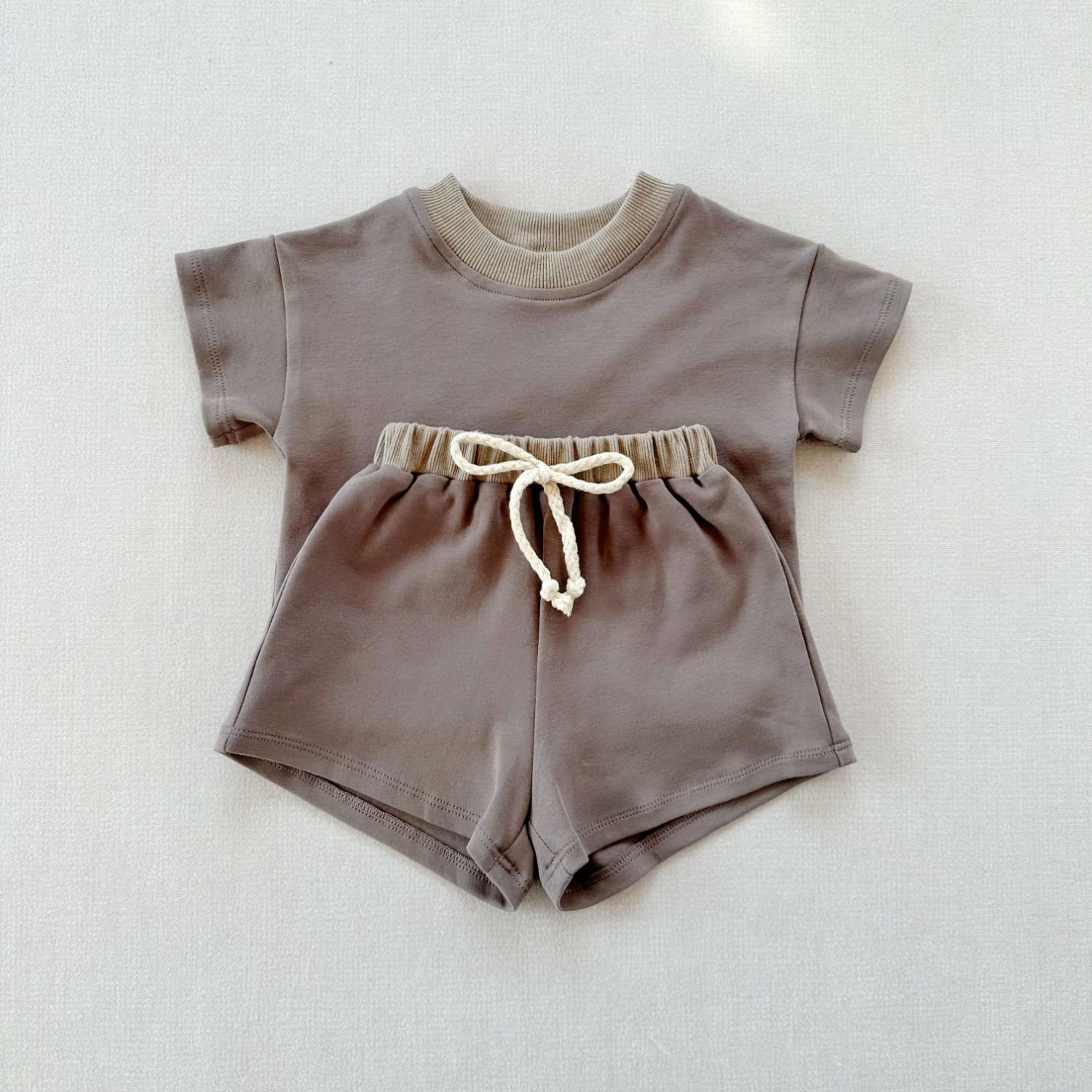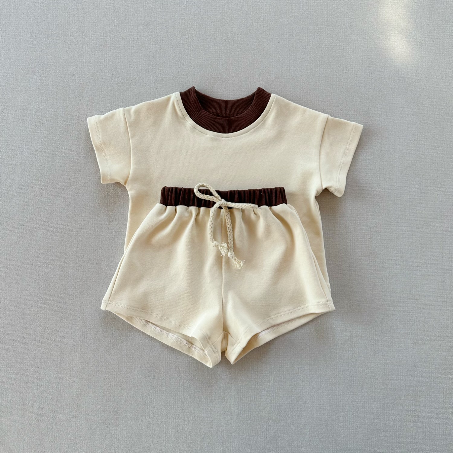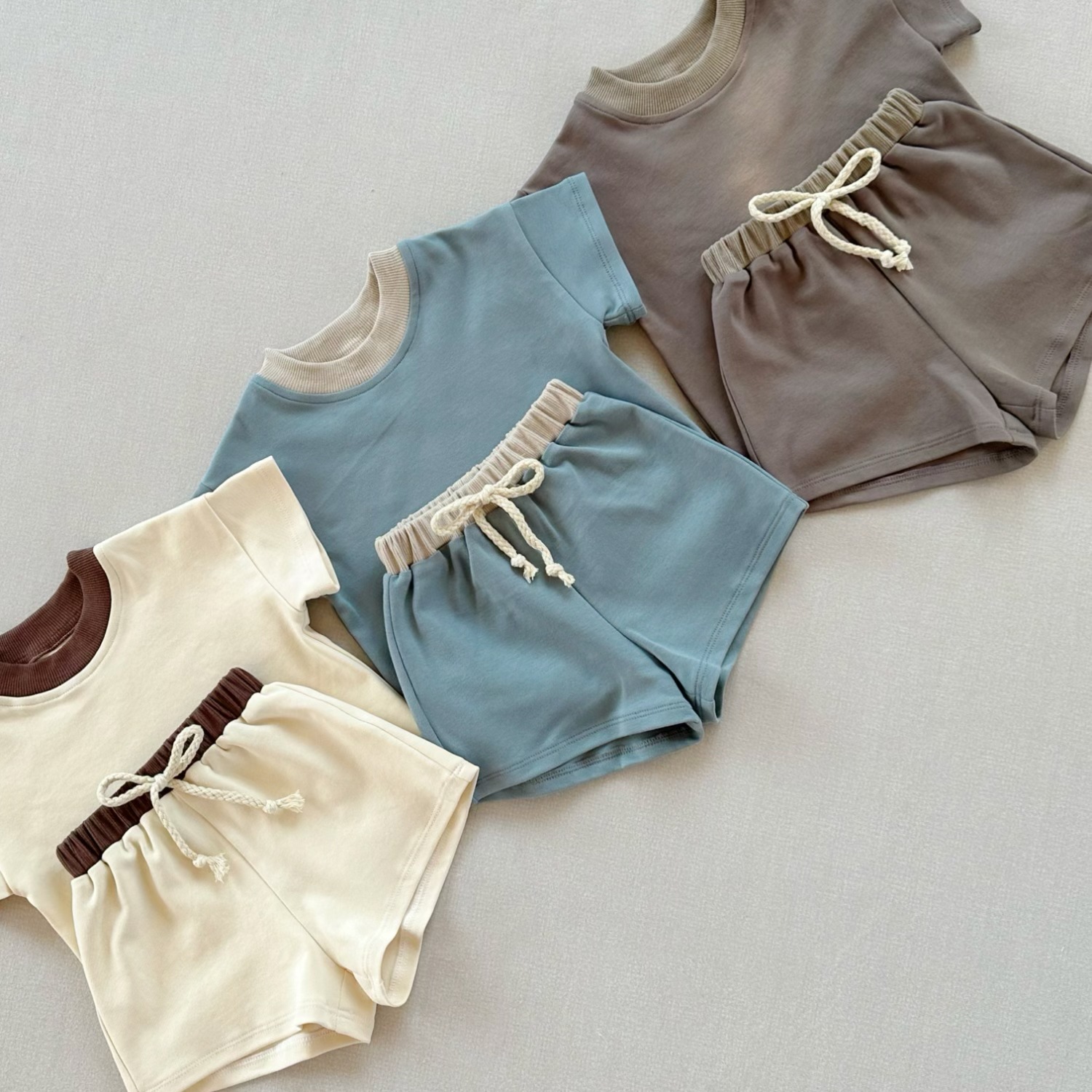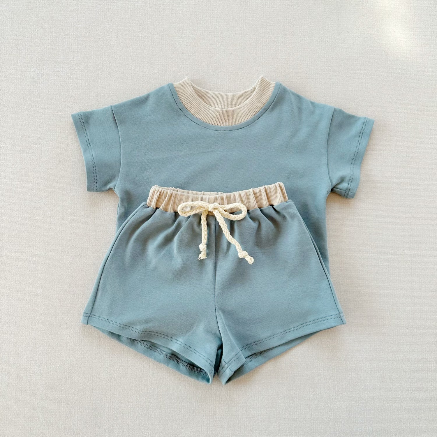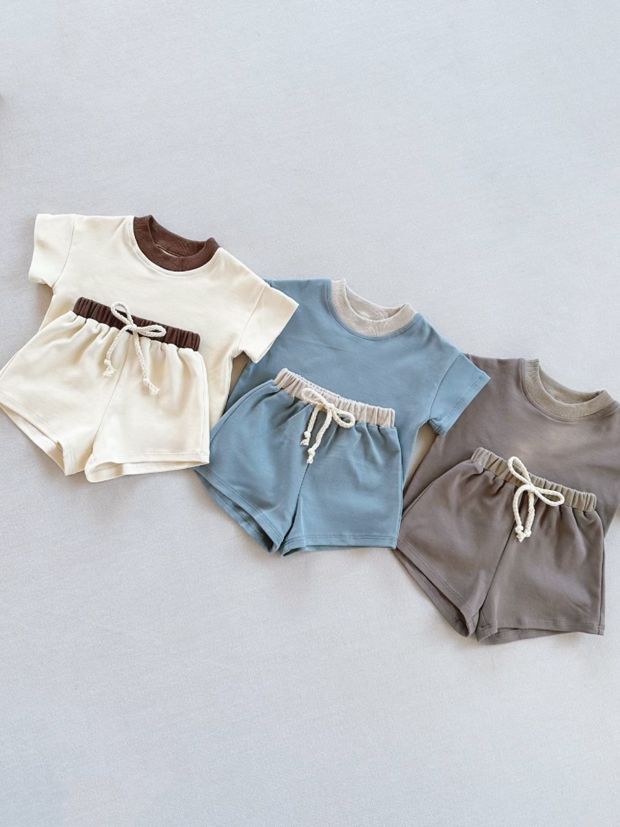 인즈 한국식 아기 반팔 세트 크로스 보더 아동복 여름 루즈 소프트 라운드 넥 티셔츠 스포츠 반바지 투피스 세트스토어 가기