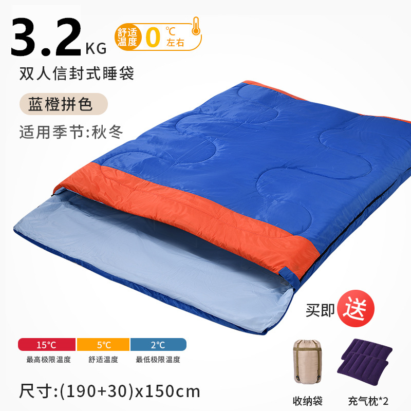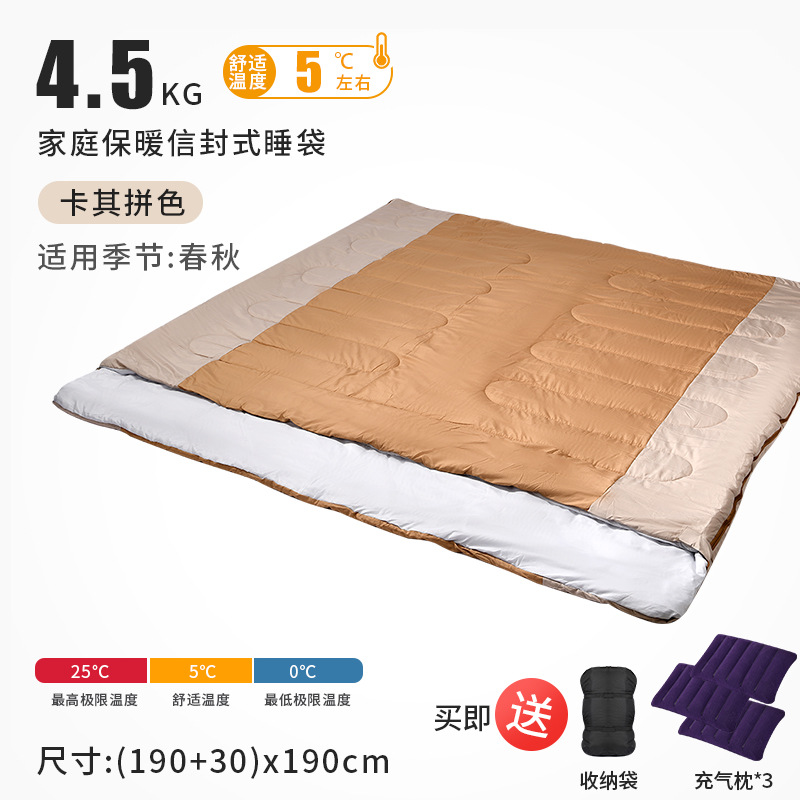 성인용 2인용 침낭, 야외 캠핑 텐트, 사계절 모두 사용 가능, 겨울에는 두껍고 따뜻하며 방한 이불, 겸용