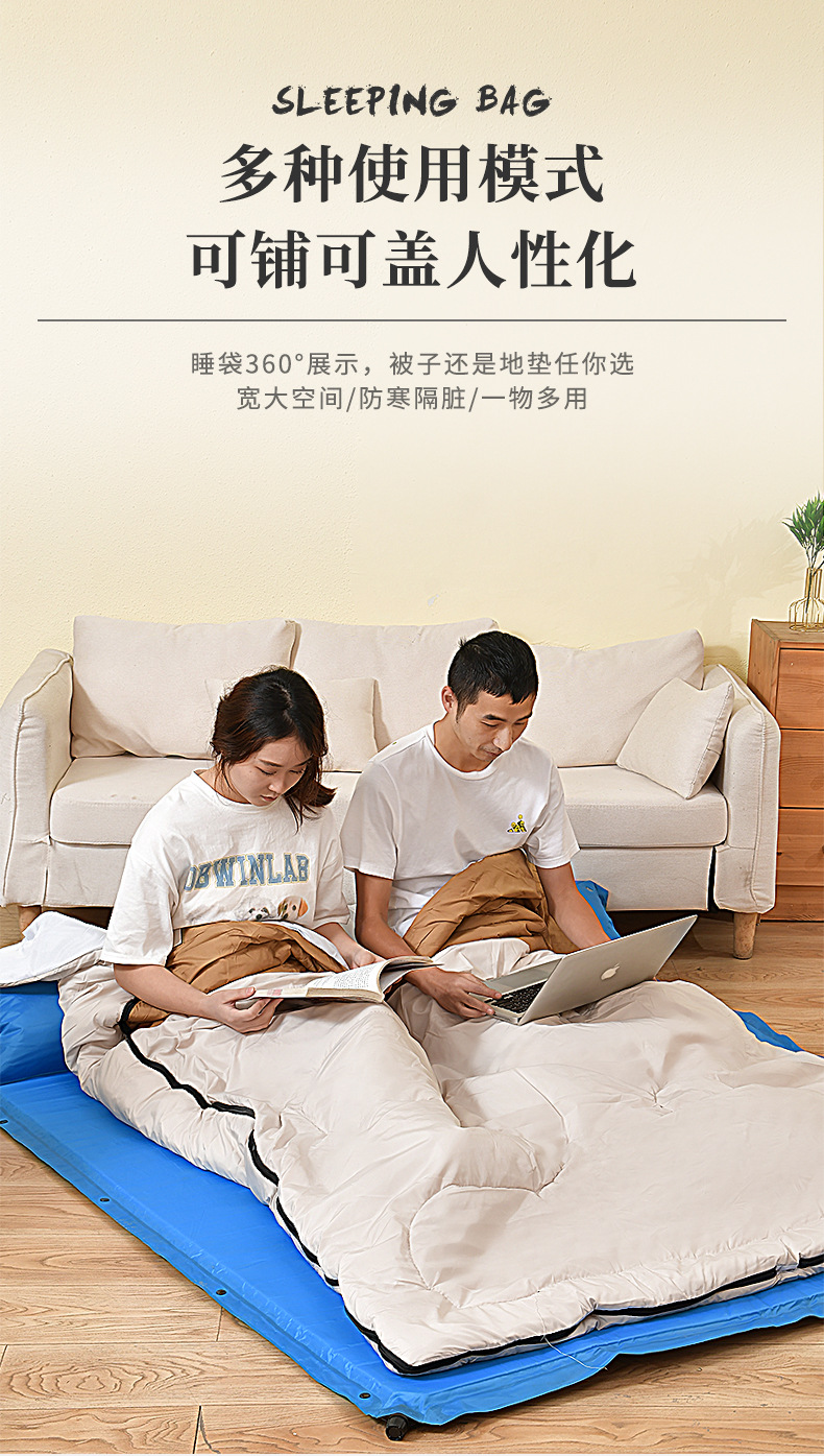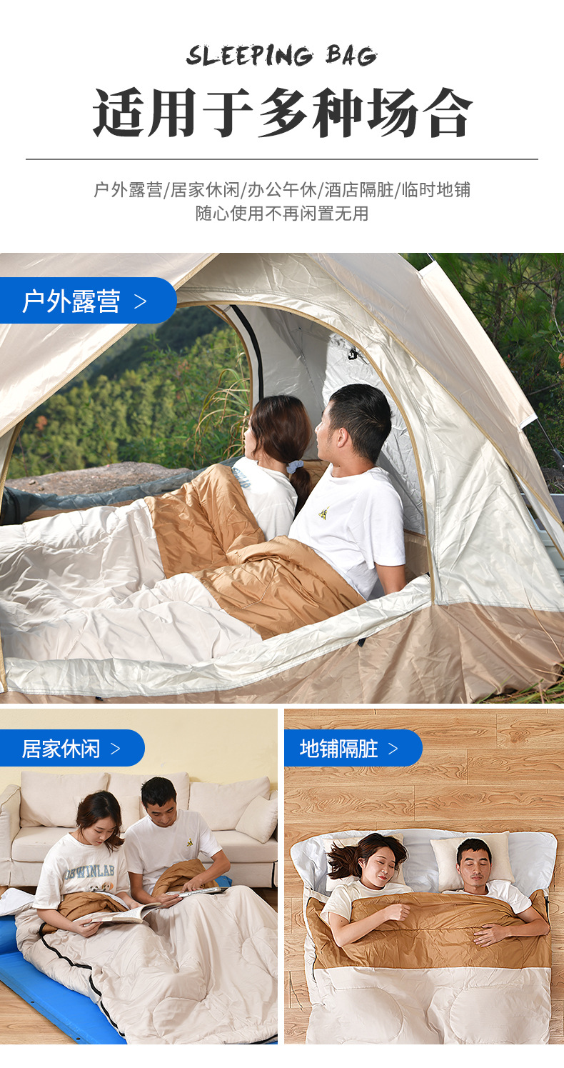 성인용 2인용 침낭, 야외 캠핑 텐트, 사계절 모두 사용 가능, 겨울에는 두껍고 따뜻하며 방한 이불, 겸용스토어 가기
