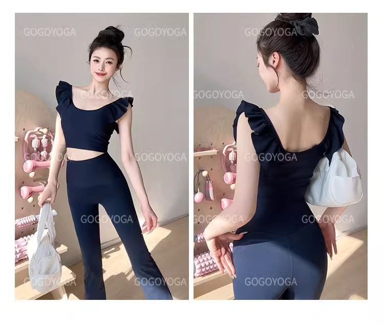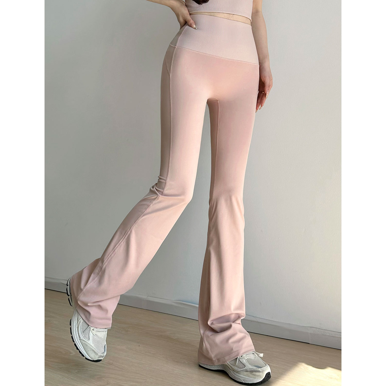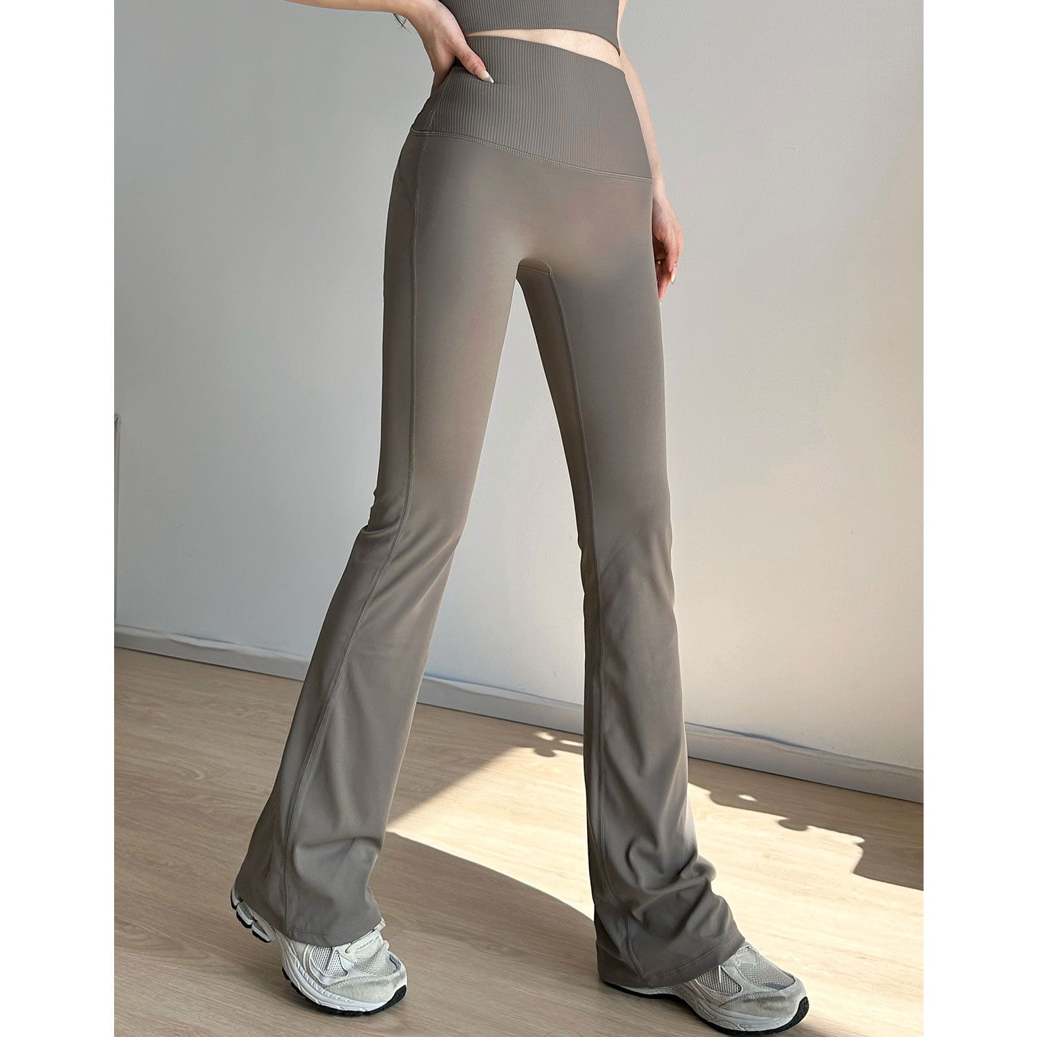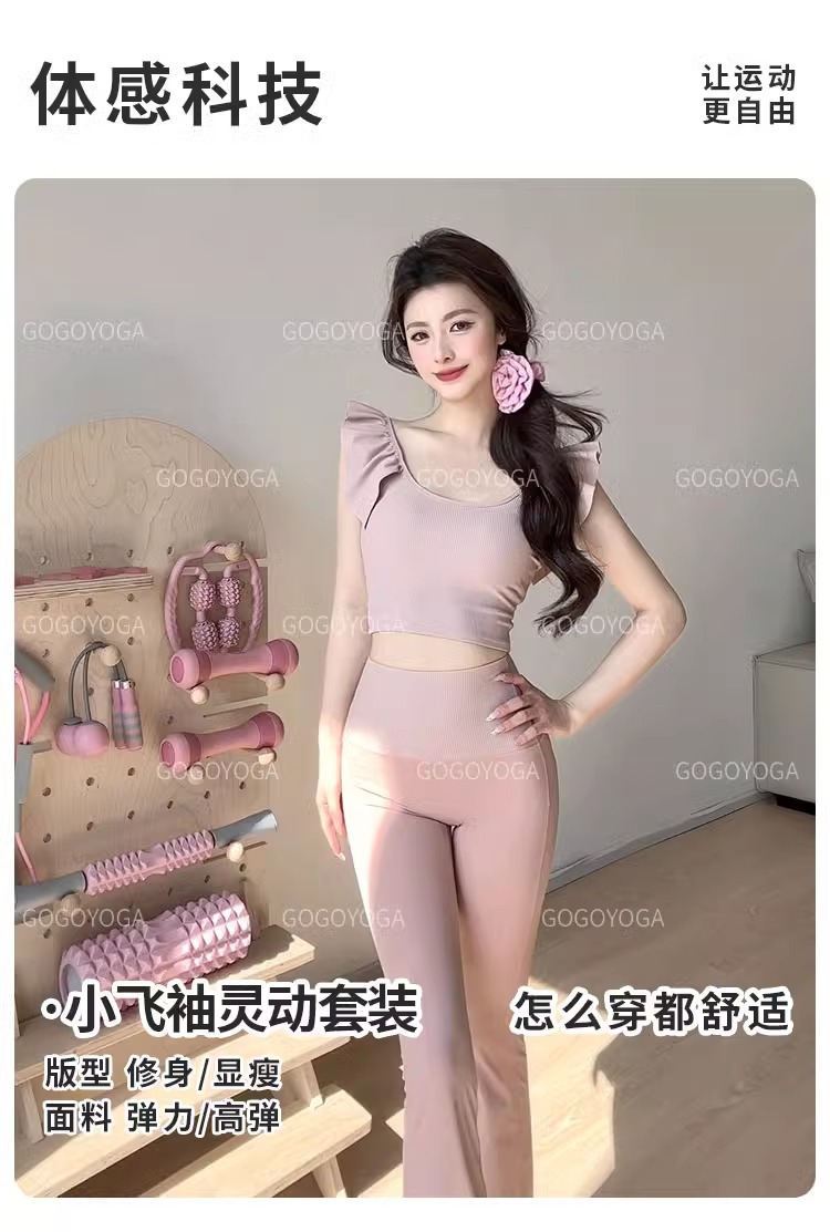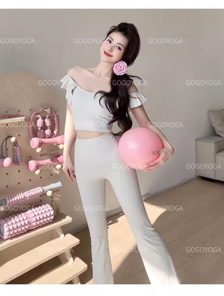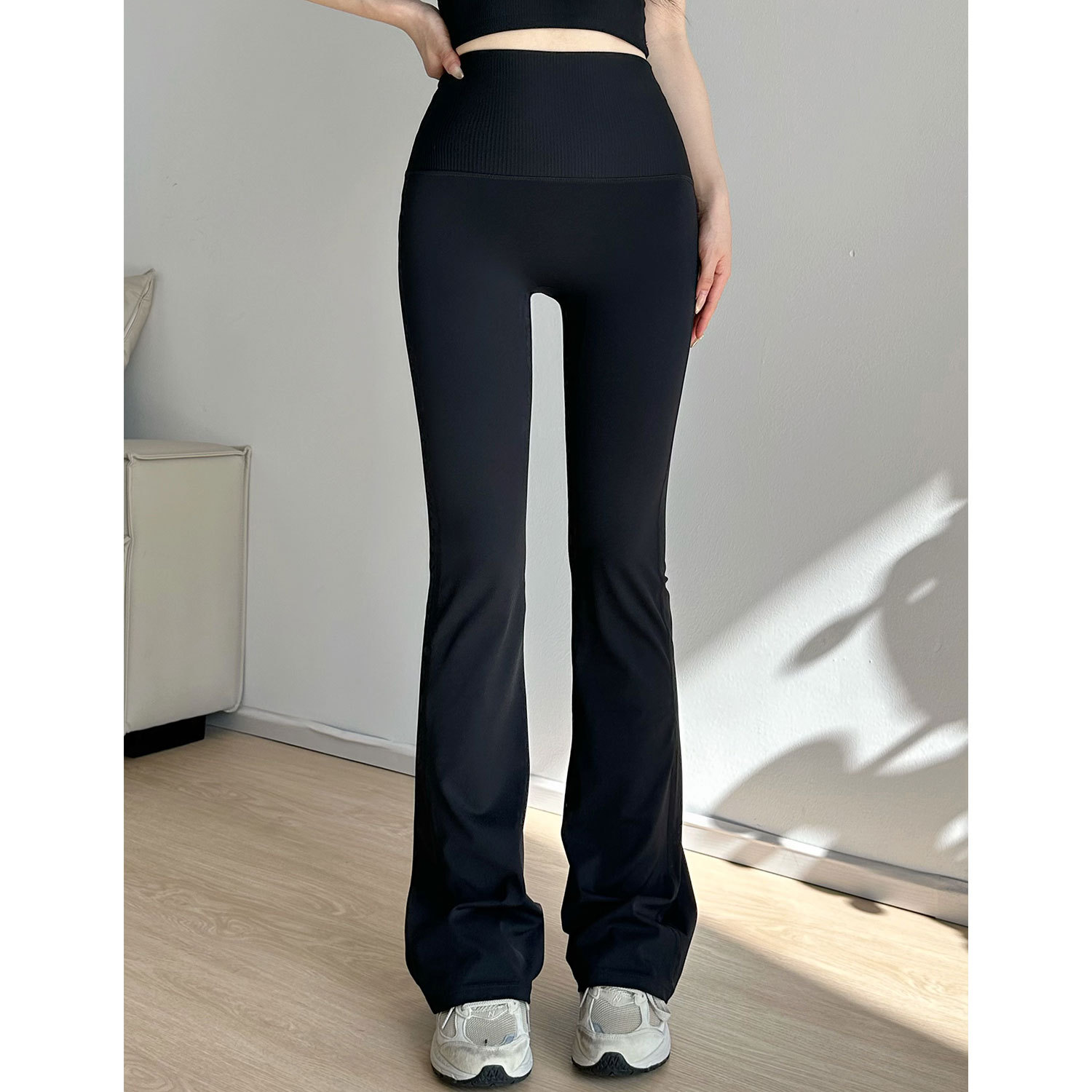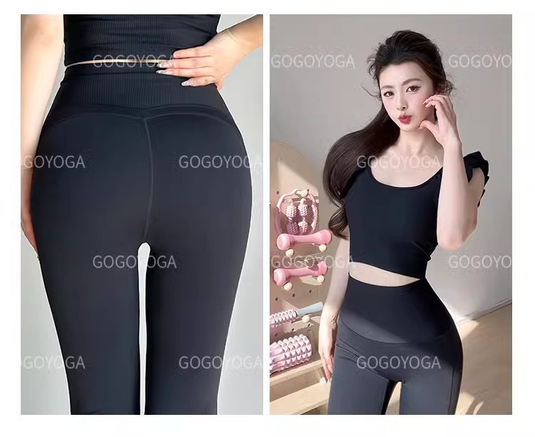 2025년 신형 여성용 요가복, 가슴 패드, 누드 레이스 탑, 하이웨이스트 슬리밍 마이크로 플레어 요가 팬츠, 피트니스 팬츠스토어 가기