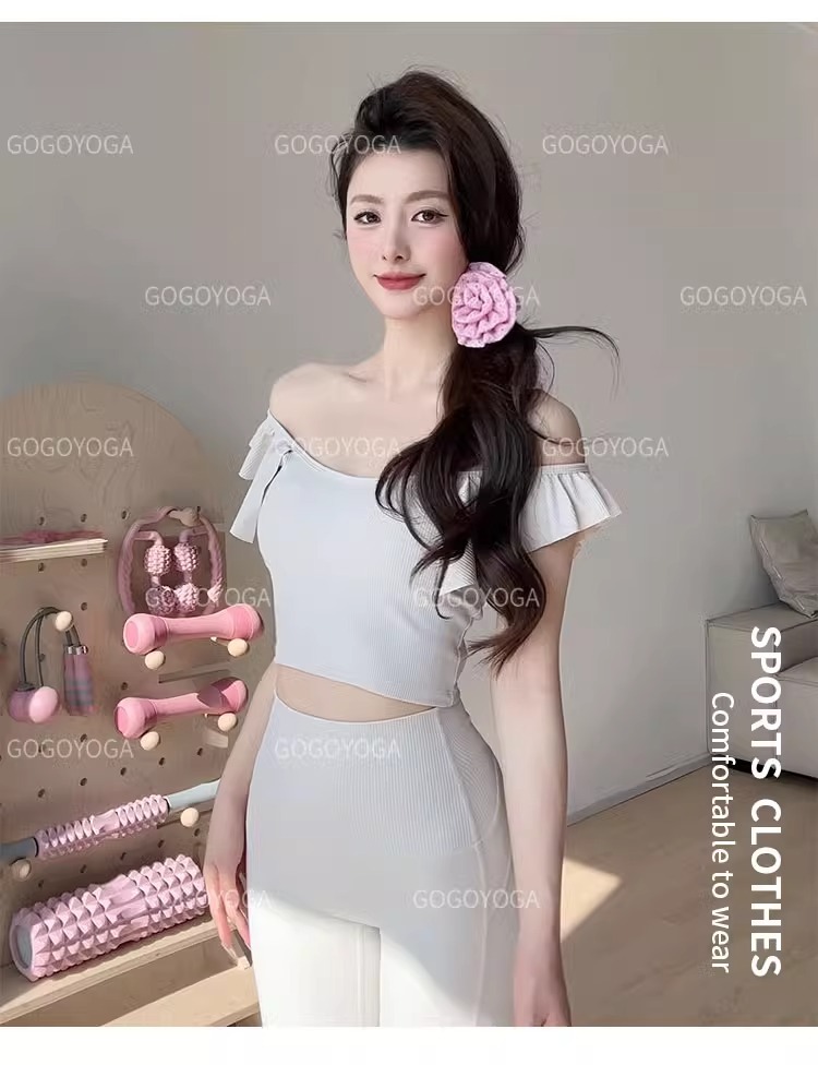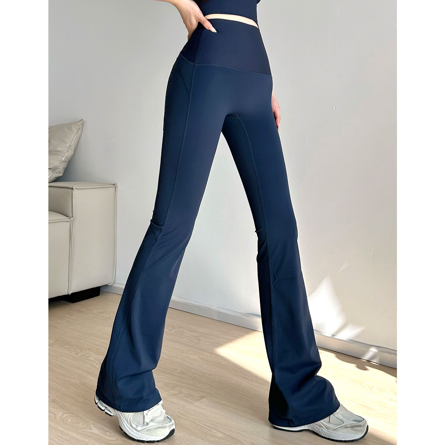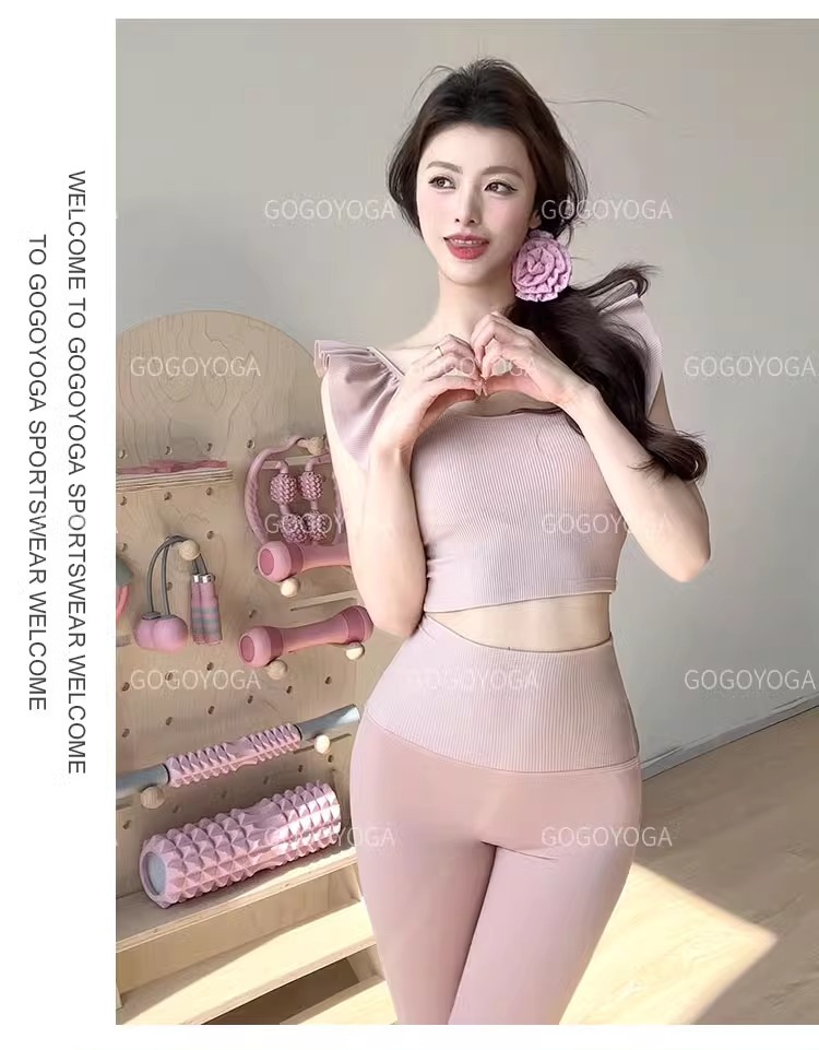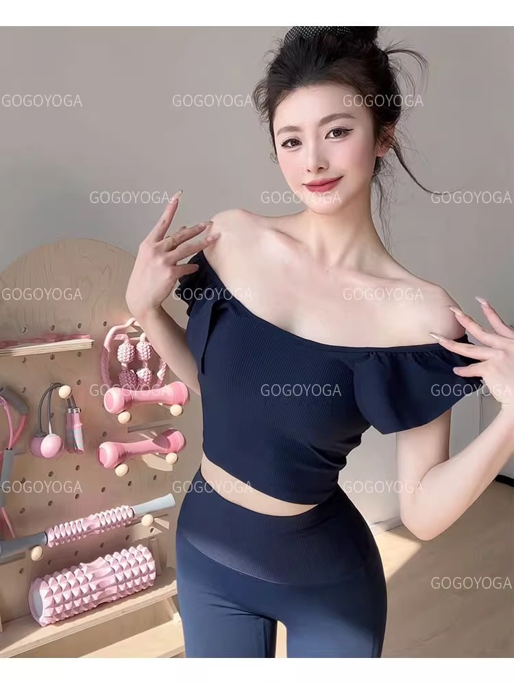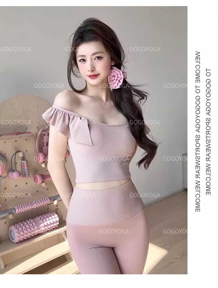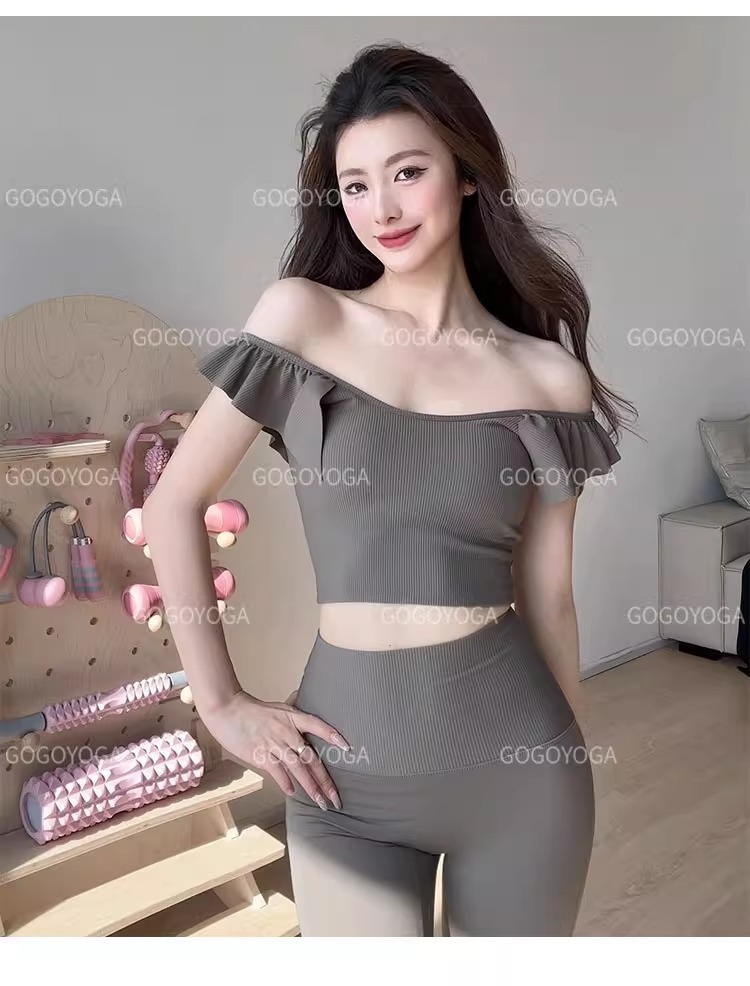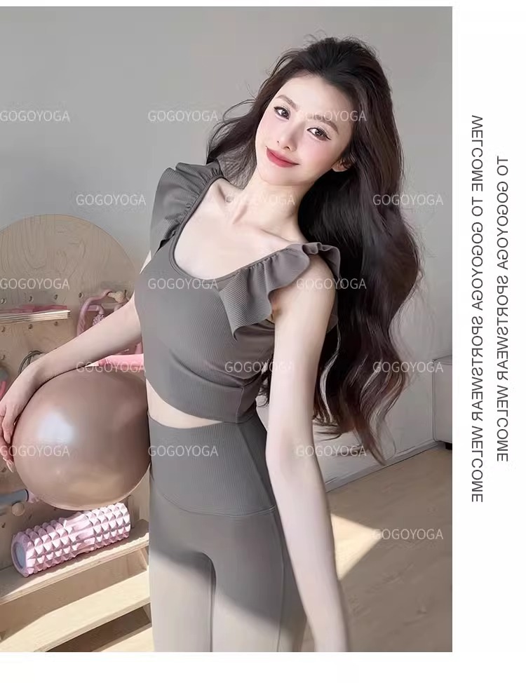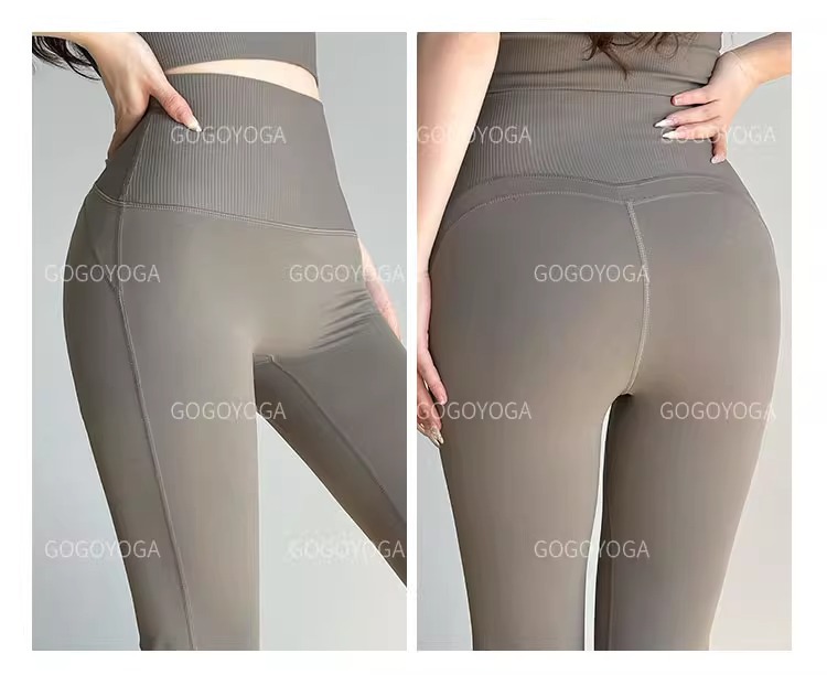 2025년 신형 여성용 요가복, 가슴 패드, 누드 레이스 탑, 하이웨이스트 슬리밍 마이크로 플레어 요가 팬츠, 피트니스 팬츠스토어 가기