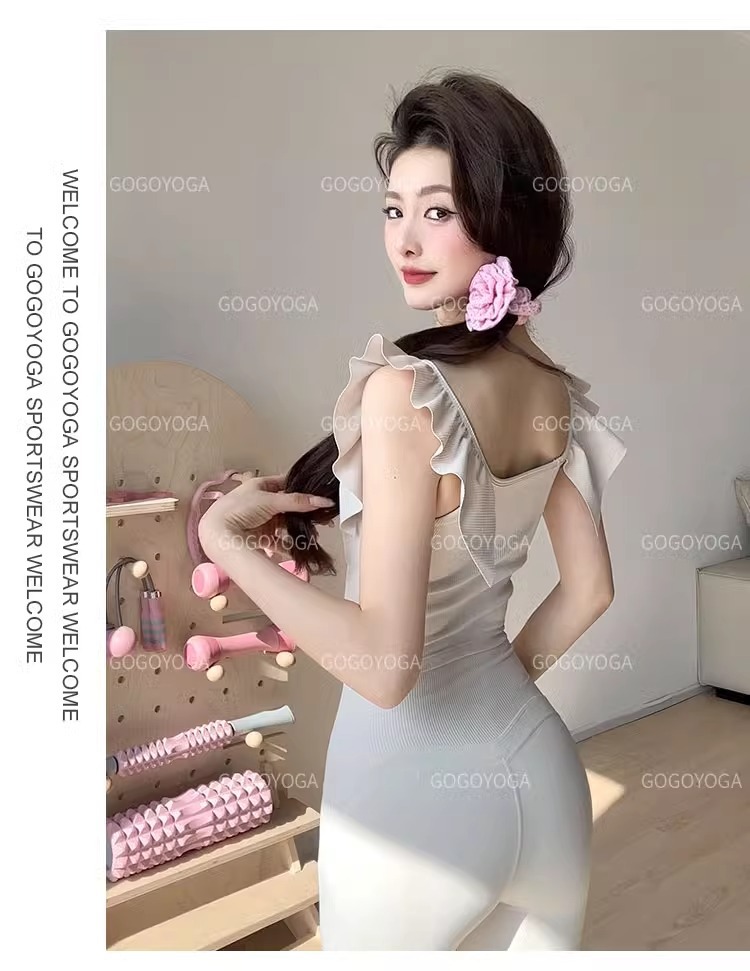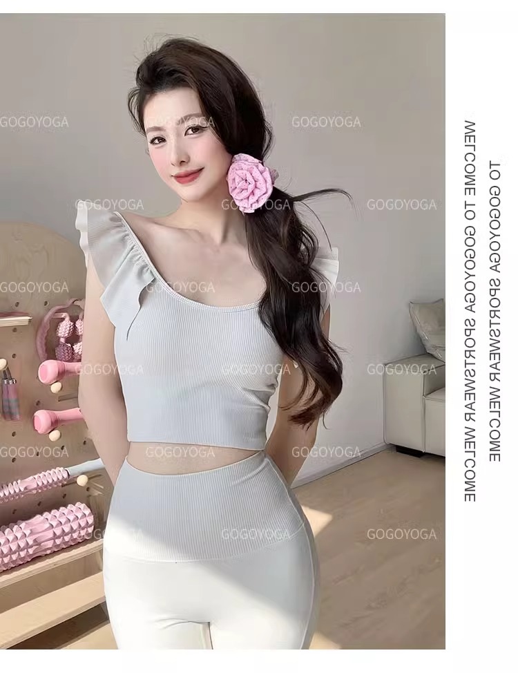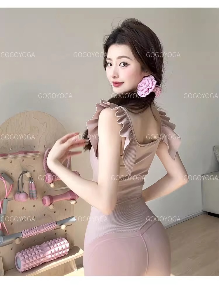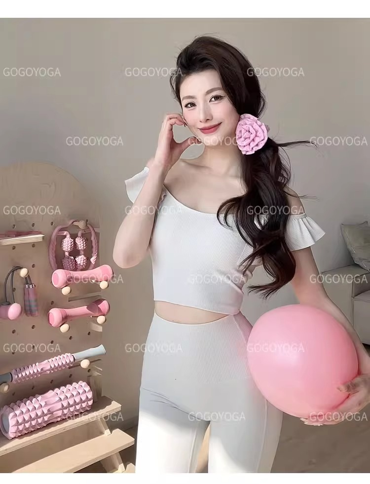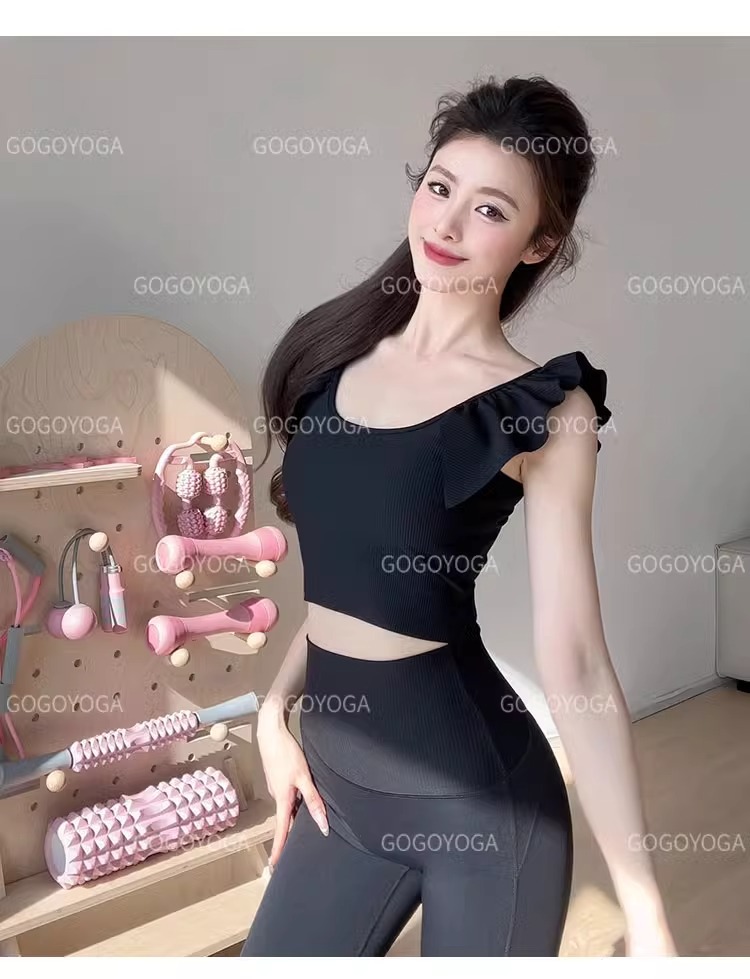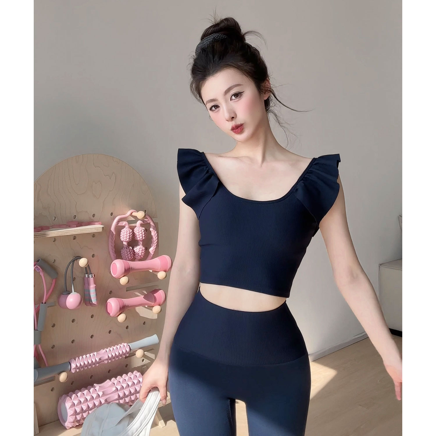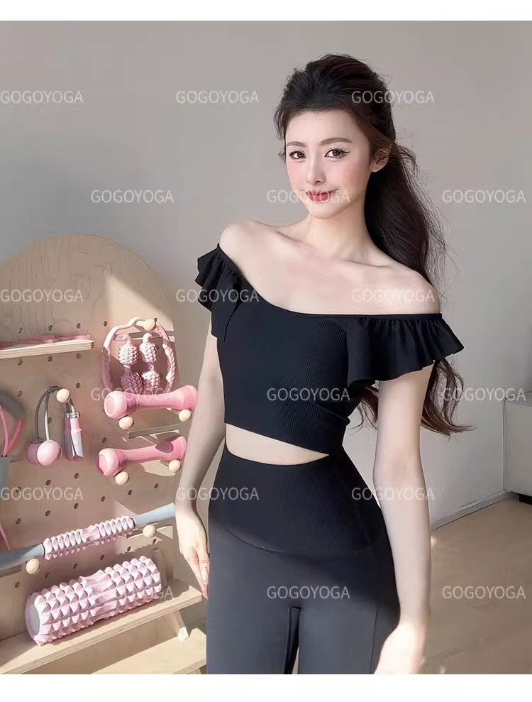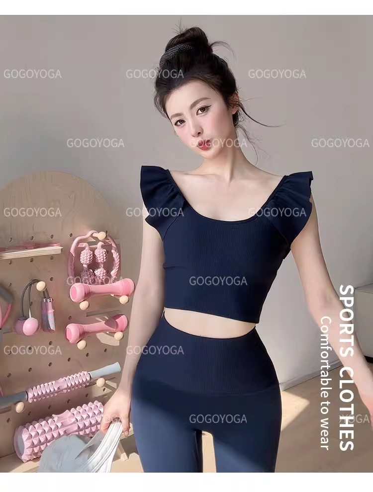 2025년 신형 여성용 요가복, 가슴 패드, 누드 레이스 탑, 하이웨이스트 슬리밍 마이크로 플레어 요가 팬츠, 피트니스 팬츠스토어 가기