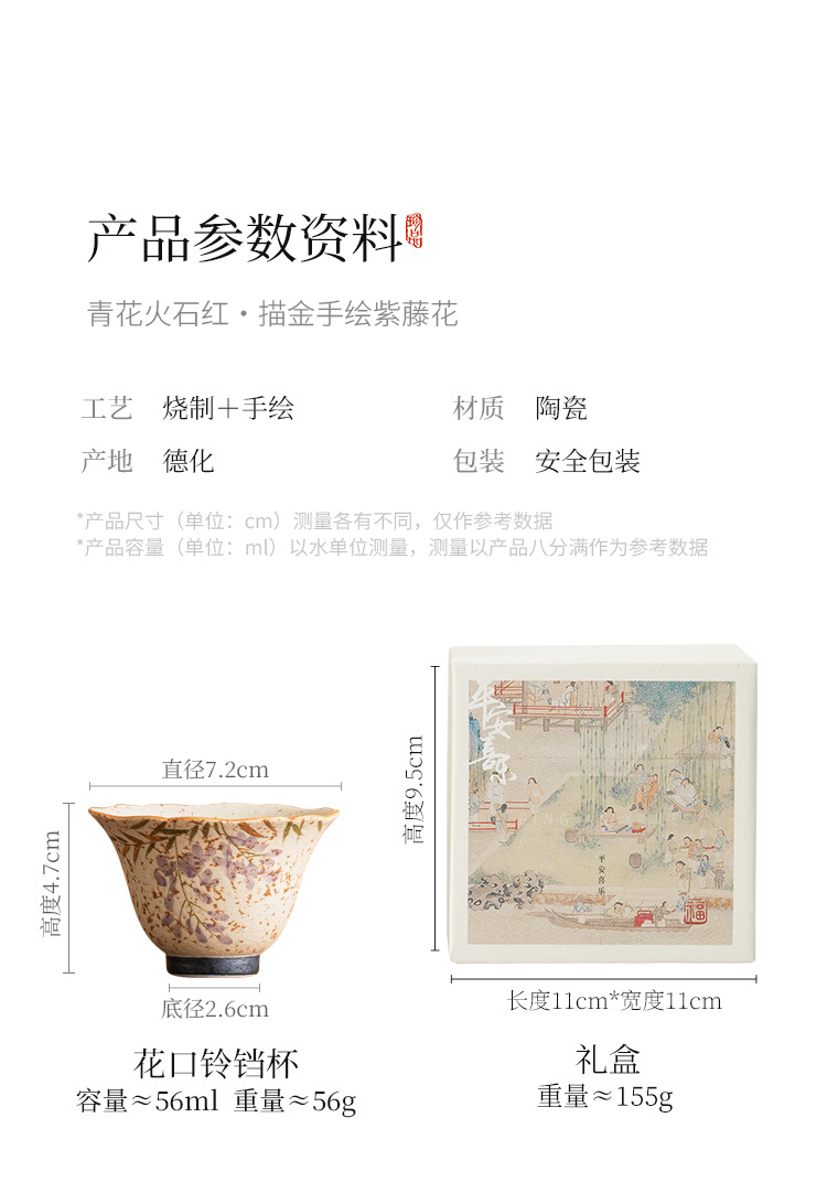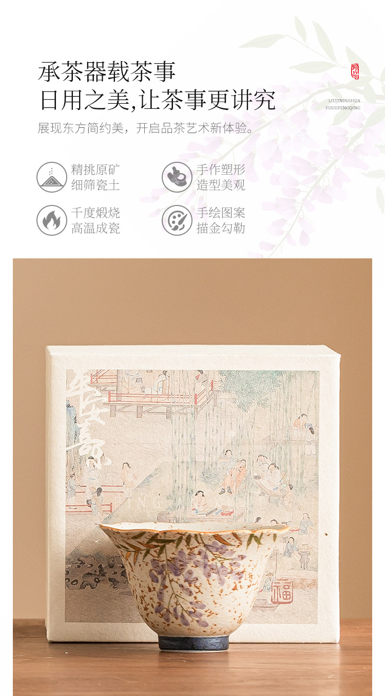 • 파란색과 흰색 부싯돌 빨간색 손으로 그린 ​​금빛 등나무 꽃_Hao Yuan Justice Cup [선물 상자]