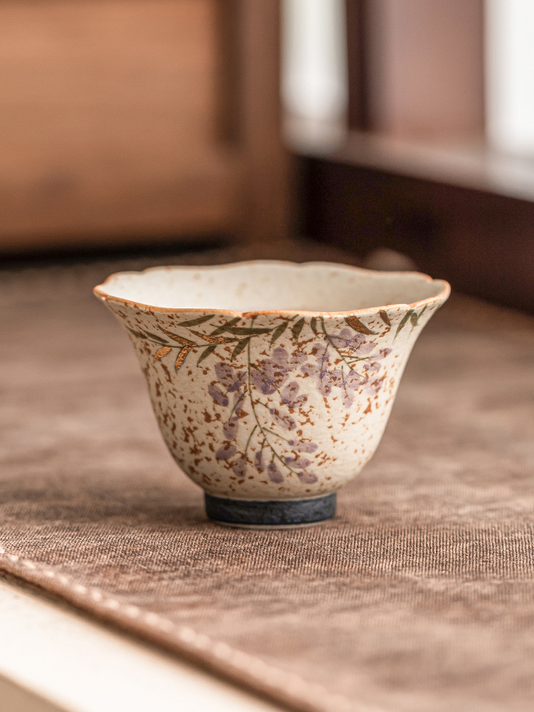 • 파란색과 흰색 부싯돌 붉은 손으로 그린 ​​금빛 등나무 꽃_Dingli 컵 [간단한 장식]