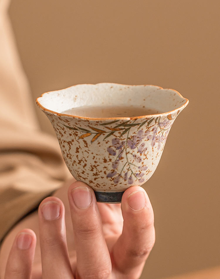 • 파란색과 흰색 부싯돌 빨간색 손으로 그린 ​​금빛 등나무 꽃_Hao Yuan Justice Cup [간단한 장식]
