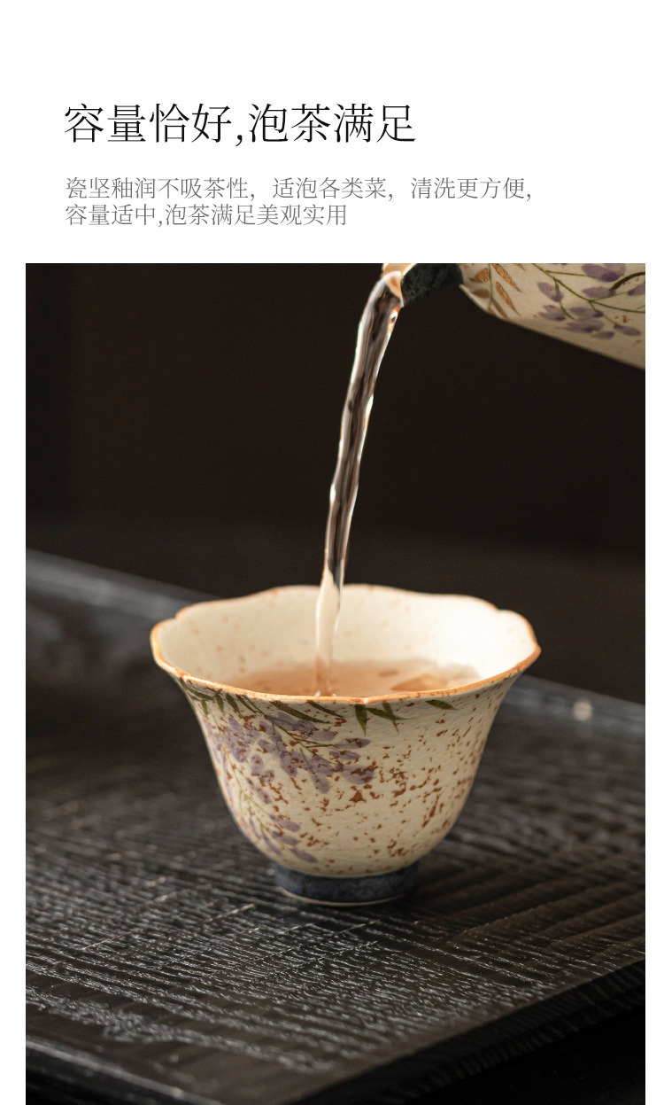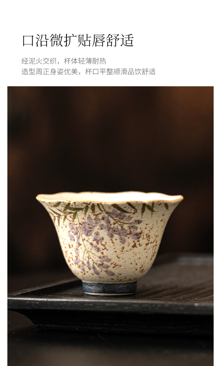 파란색과 꽃 부싯돌 고급 마스터 컵 손으로 그린 골드 등나무 꽃 입 벨 컵 안티 스케일 티 컵 대용량 차 시음 컵스토어 가기
