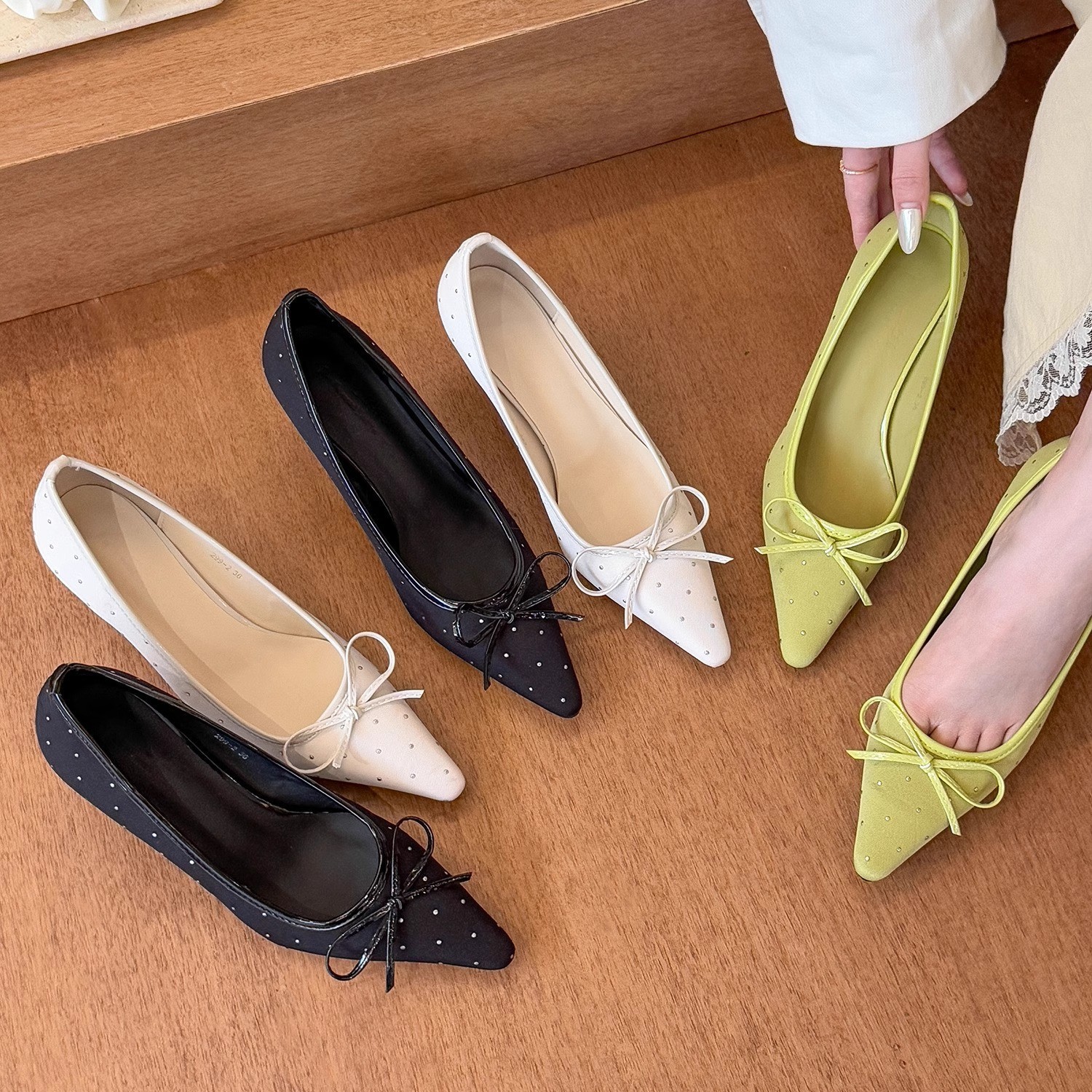 여성을 위한 스커트와 하이힐이 있는 고양이 굽 프렌치 스타일 2025 봄 신상 펌프스 슈즈, 뾰족한 앞코와 밝은 다이아몬드 스틸레토 힐스토어 가기
