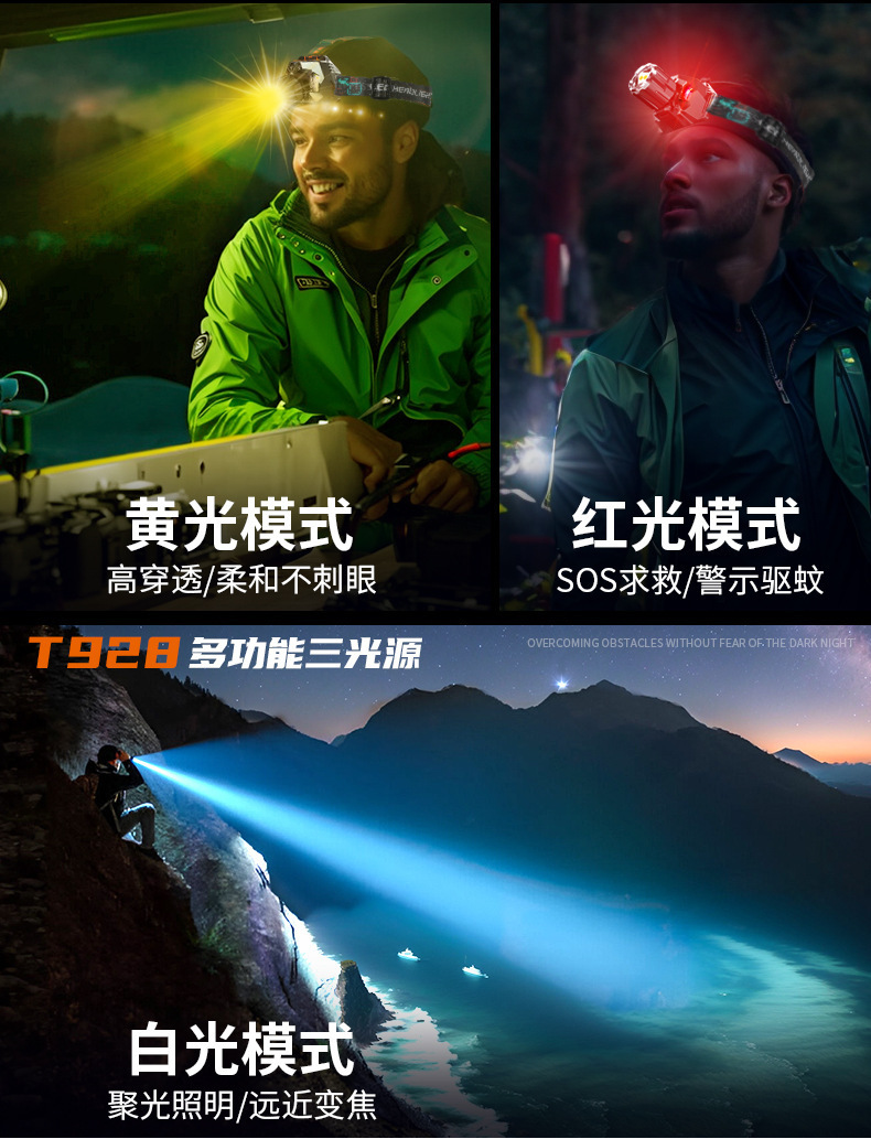 • 928 헤드라이트 3개 광원 1200mAh