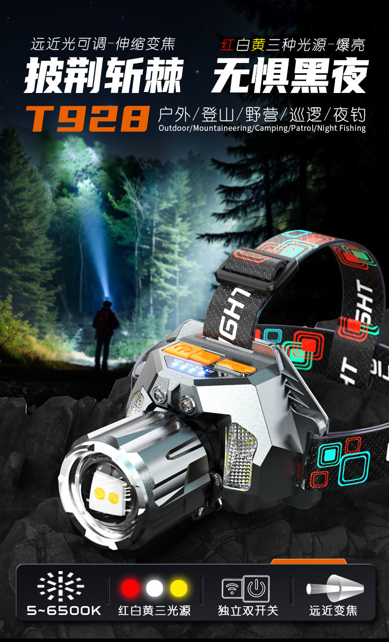 헤드 램프 새로운 led 강한 빛 슈퍼 밝은 밤 낚시 자기 방어 특수 헤드 장착 손전등 유도 긴 배터리 수명 충전