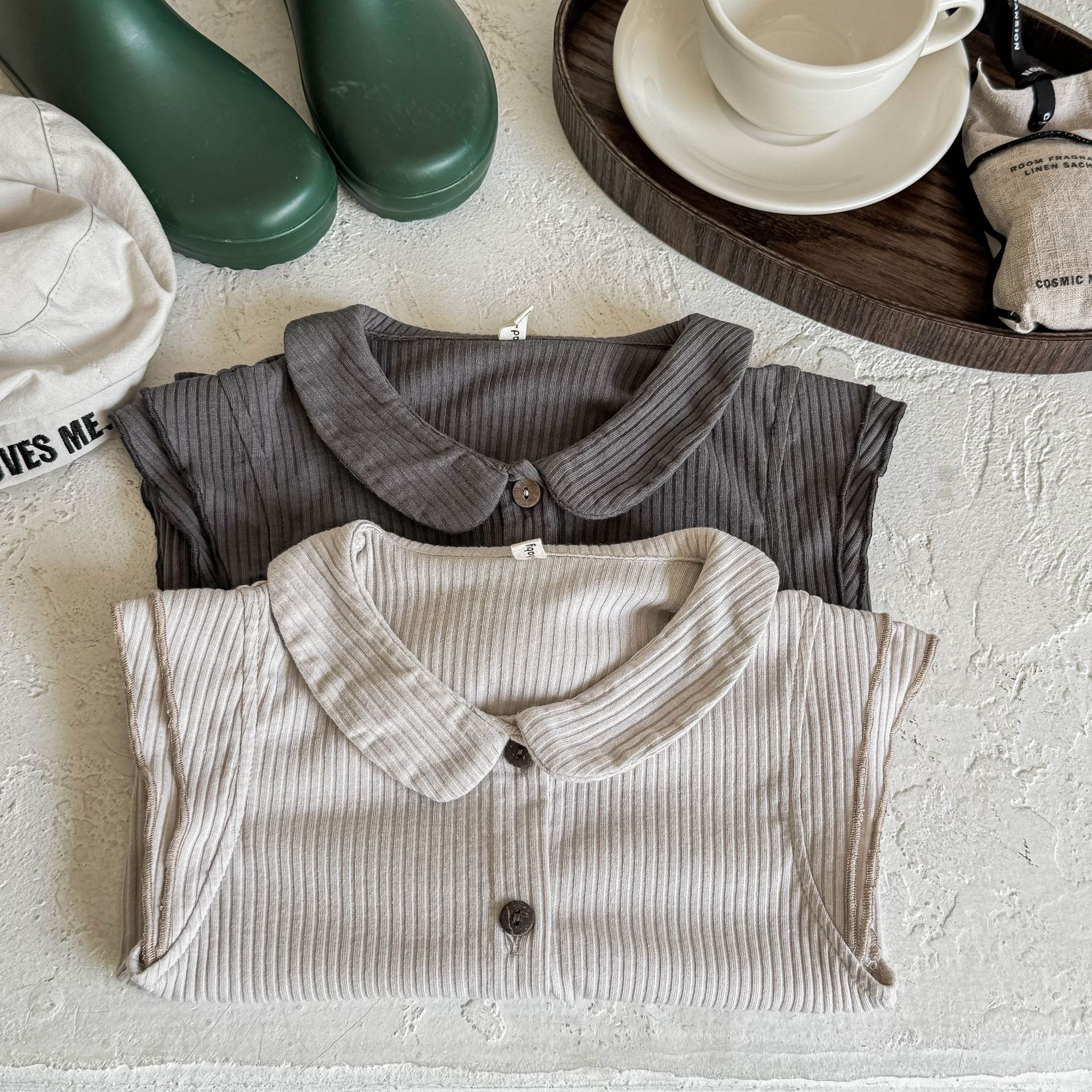 2025 년 여름 소녀 옷깃 반팔 여성 아기 한국 스타일 귀여운 피트 피터 팬 칼라 플라잉 슬리브 티셔츠 슬림 핏 티셔츠