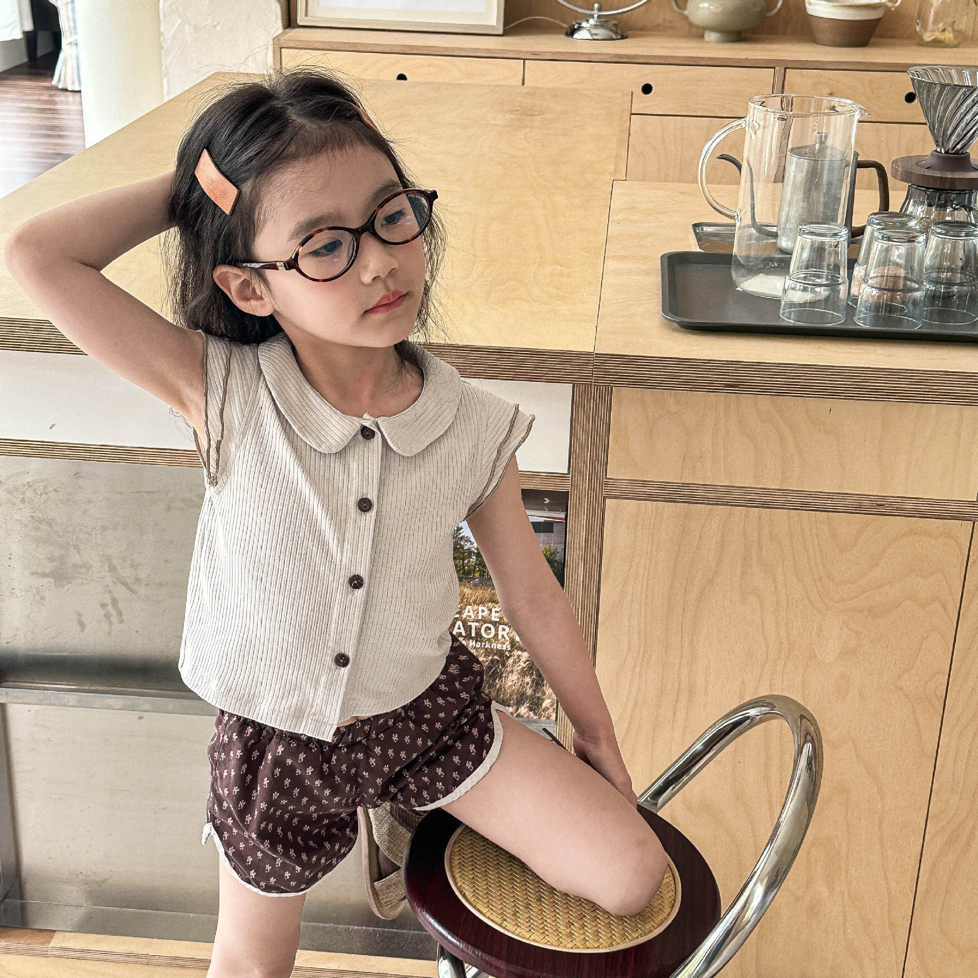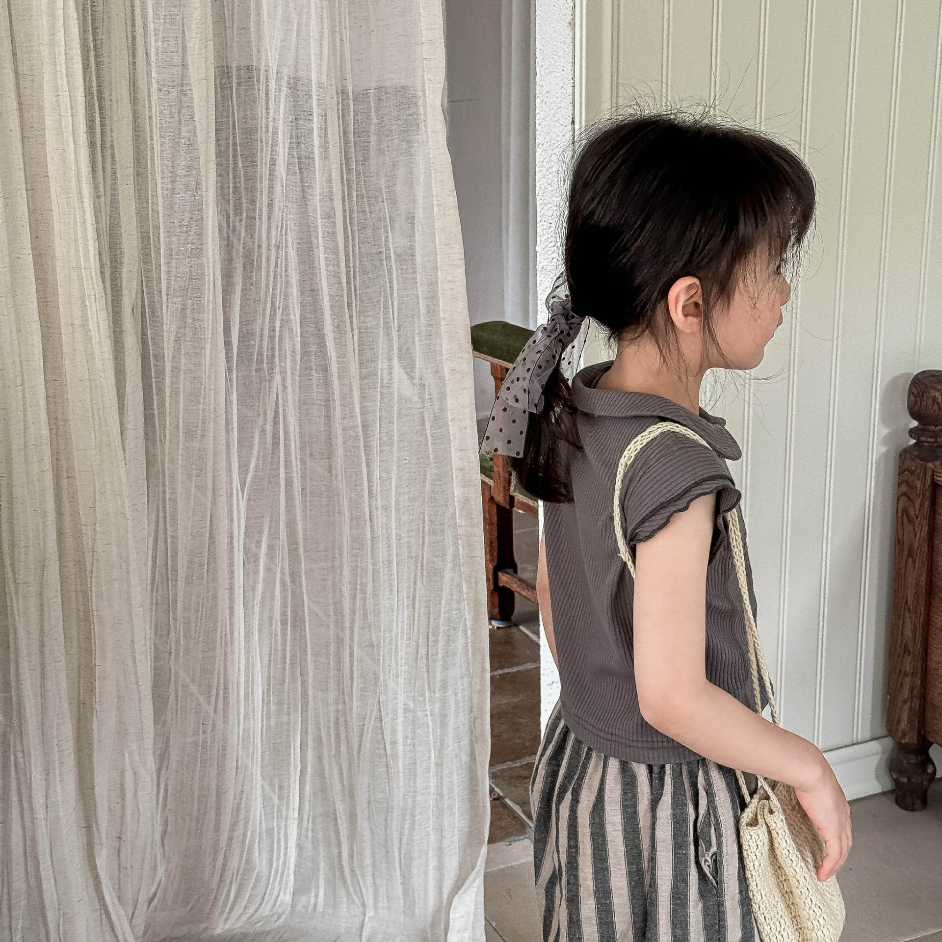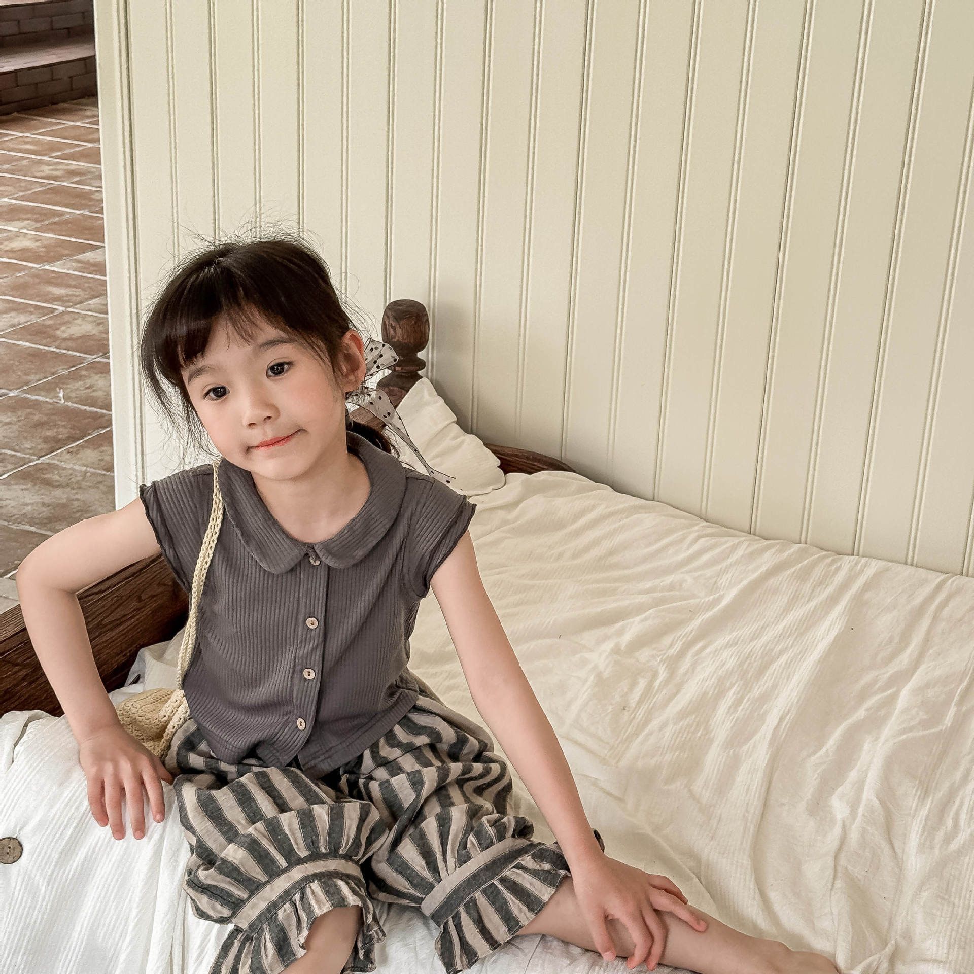 2025 년 여름 소녀 옷깃 반팔 여성 아기 한국 스타일 귀여운 피트 피터 팬 칼라 플라잉 슬리브 티셔츠 슬림 핏 티셔츠스토어 가기