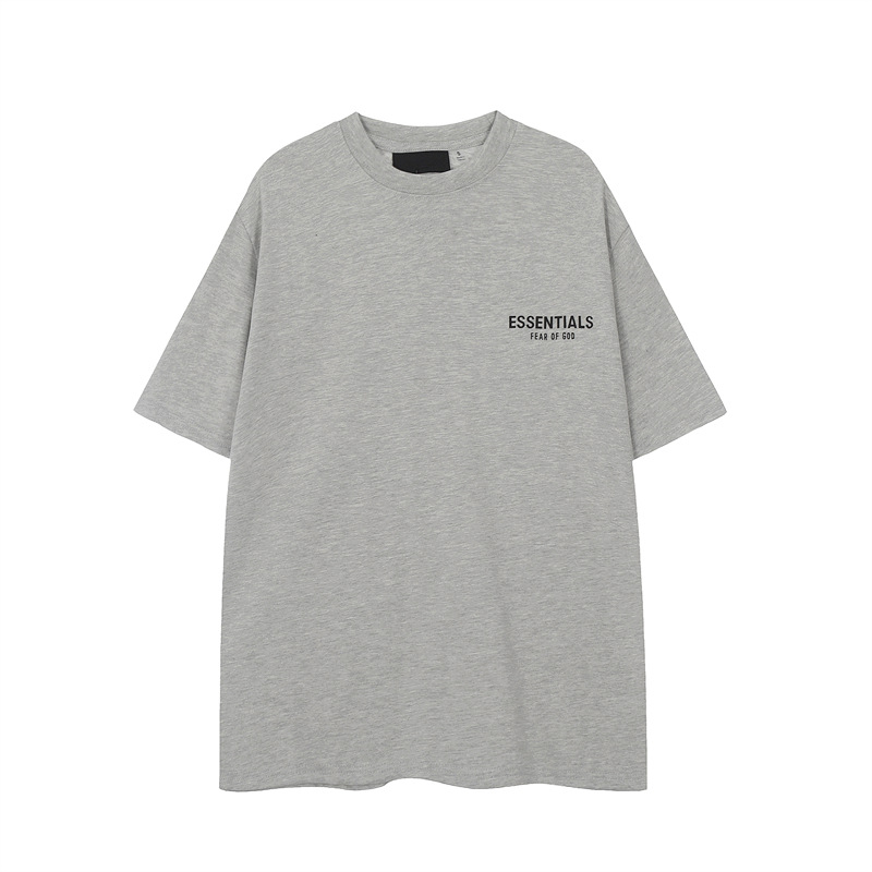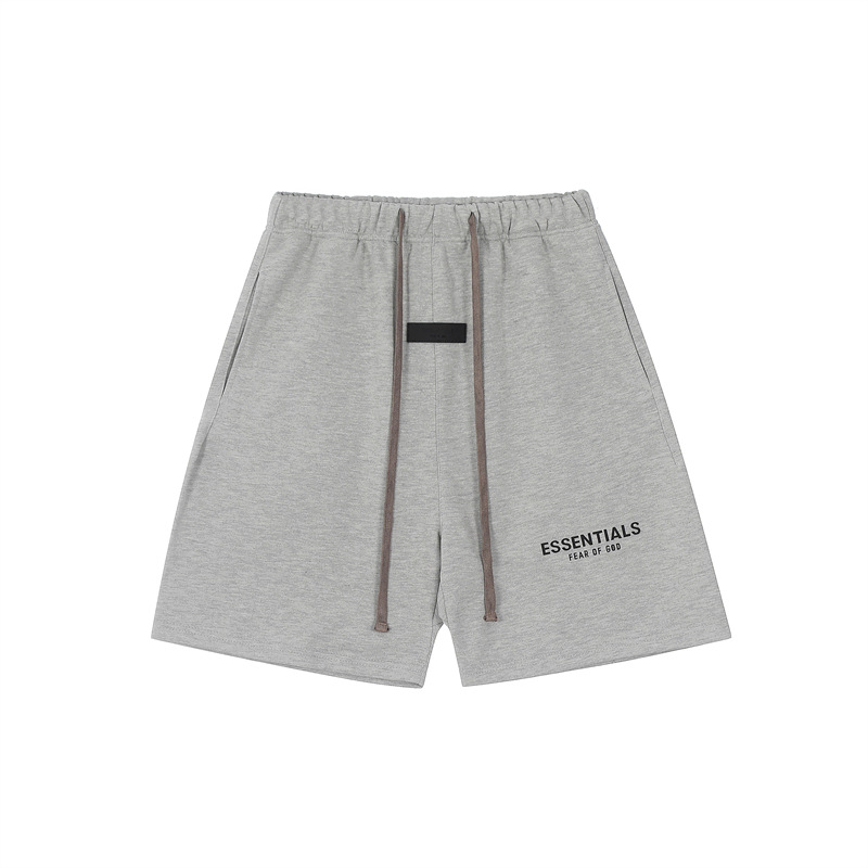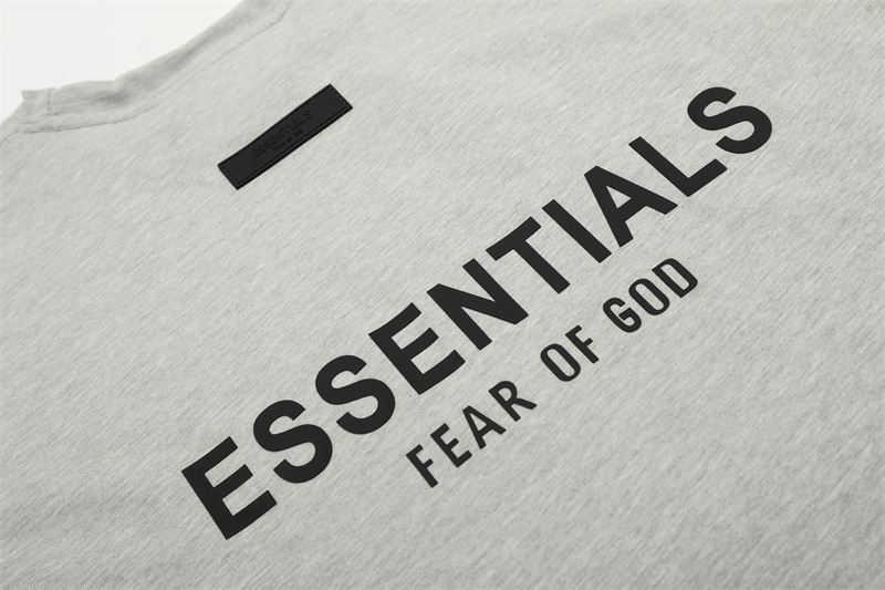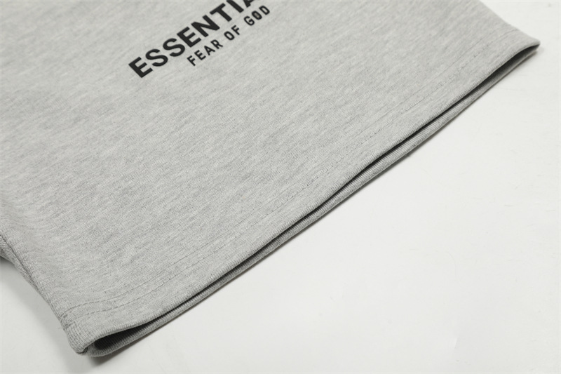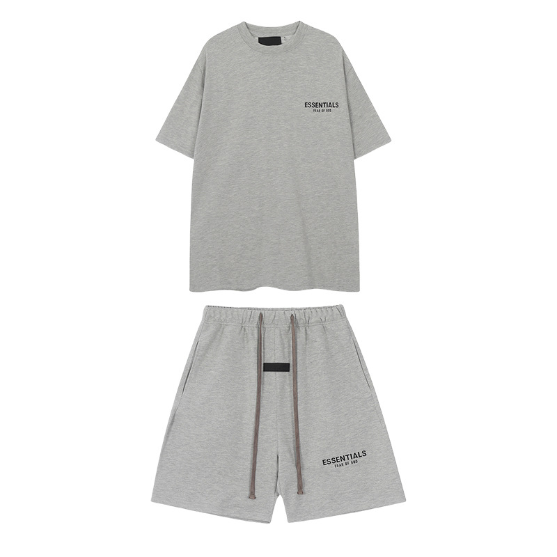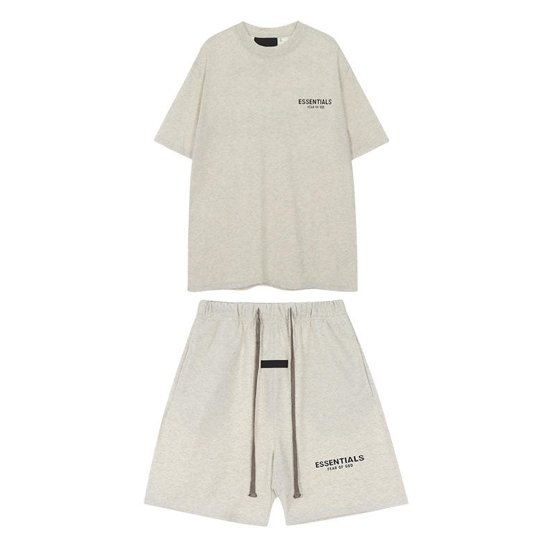 유럽과 미국의 패션 브랜드 ESSENTIALS 3 차원 플라스틱 라벨 편지 짧은 소매 티셔츠 FOG 반바지 남녀 커플 캐주얼 세트스토어 가기
