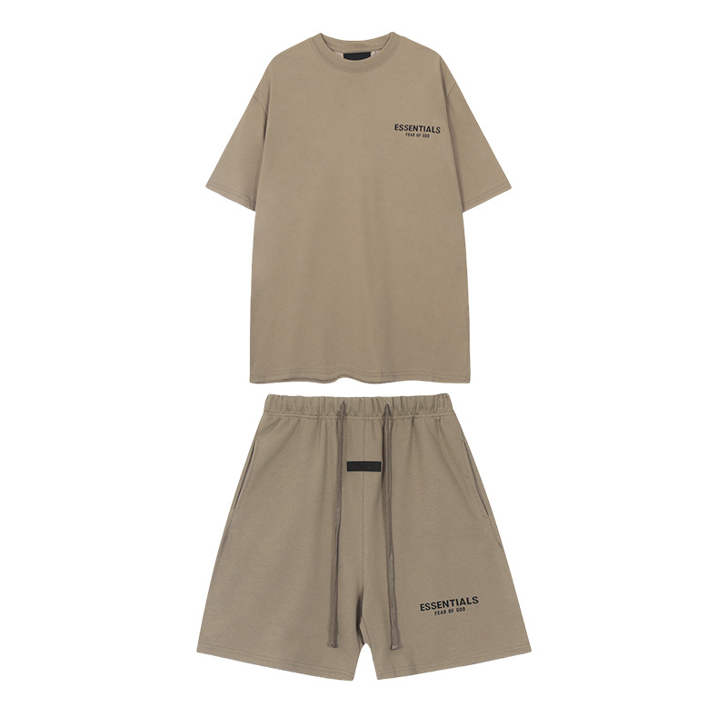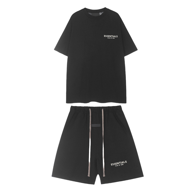 유럽과 미국의 패션 브랜드 ESSENTIALS 3 차원 플라스틱 라벨 편지 짧은 소매 티셔츠 FOG 반바지 남녀 커플 캐주얼 세트