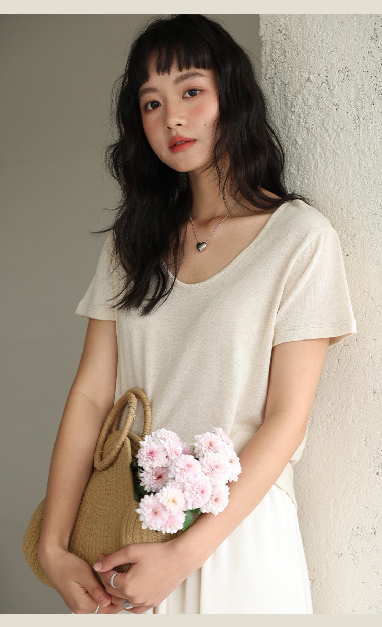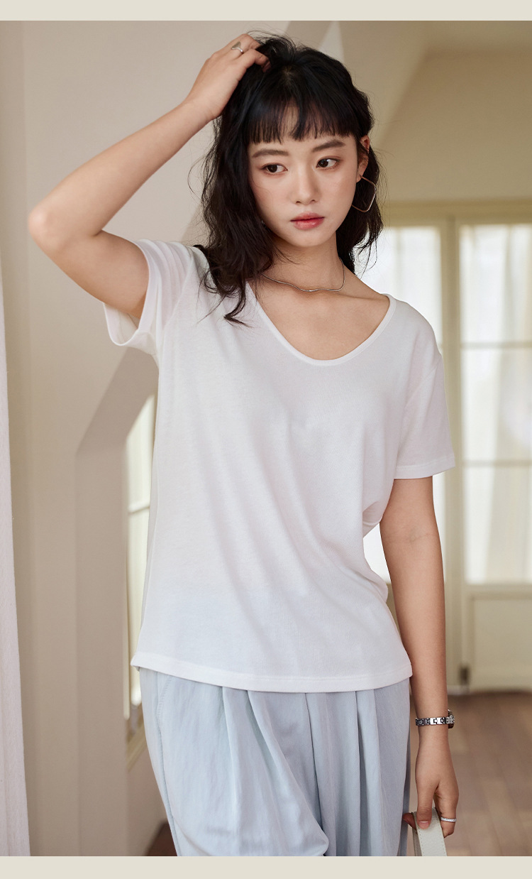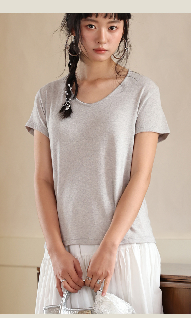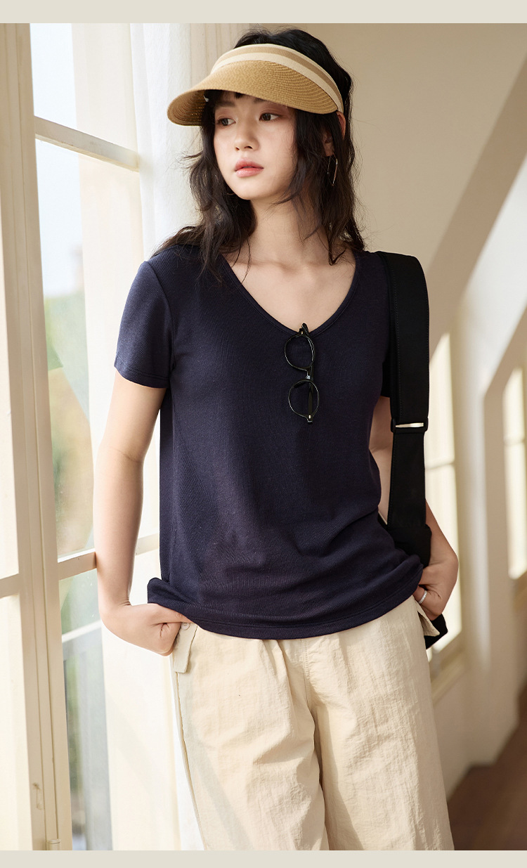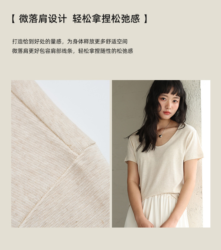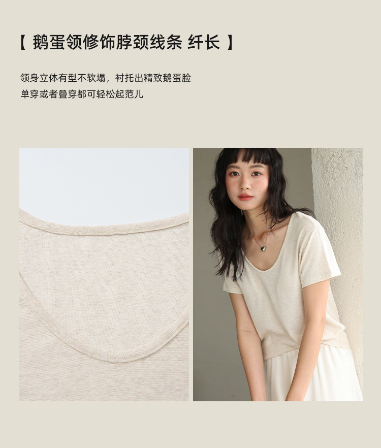 2025 새로운 봄과 여름 텐셀베이스 셔츠 여성용 Lyocell 거위 달걀 칼라 리넨 티셔츠 피부 친화적 인 슬리밍 반소매 탑