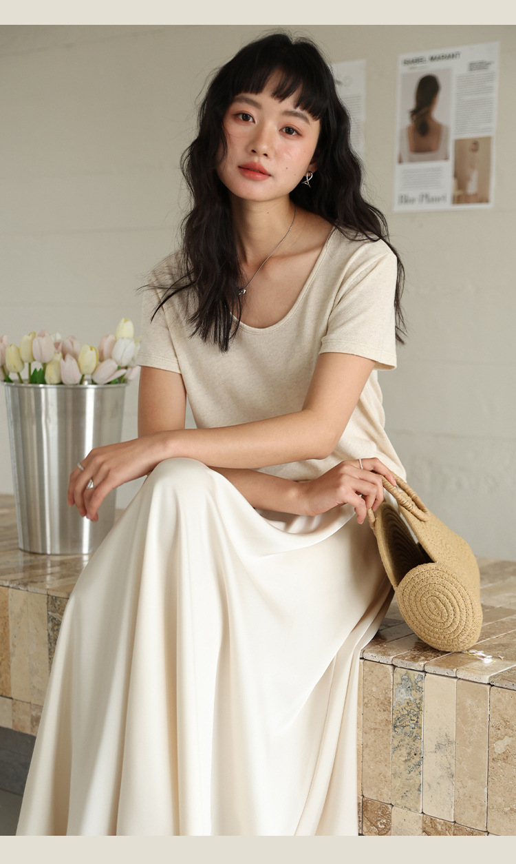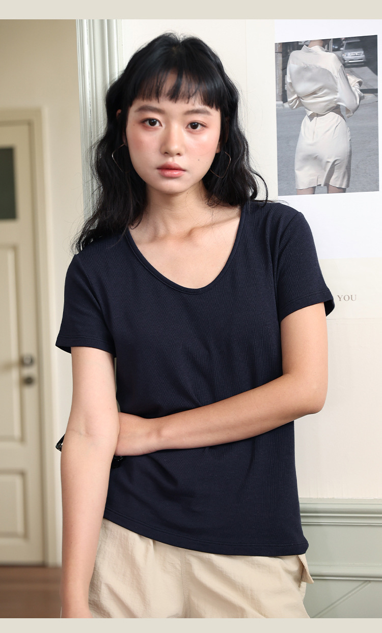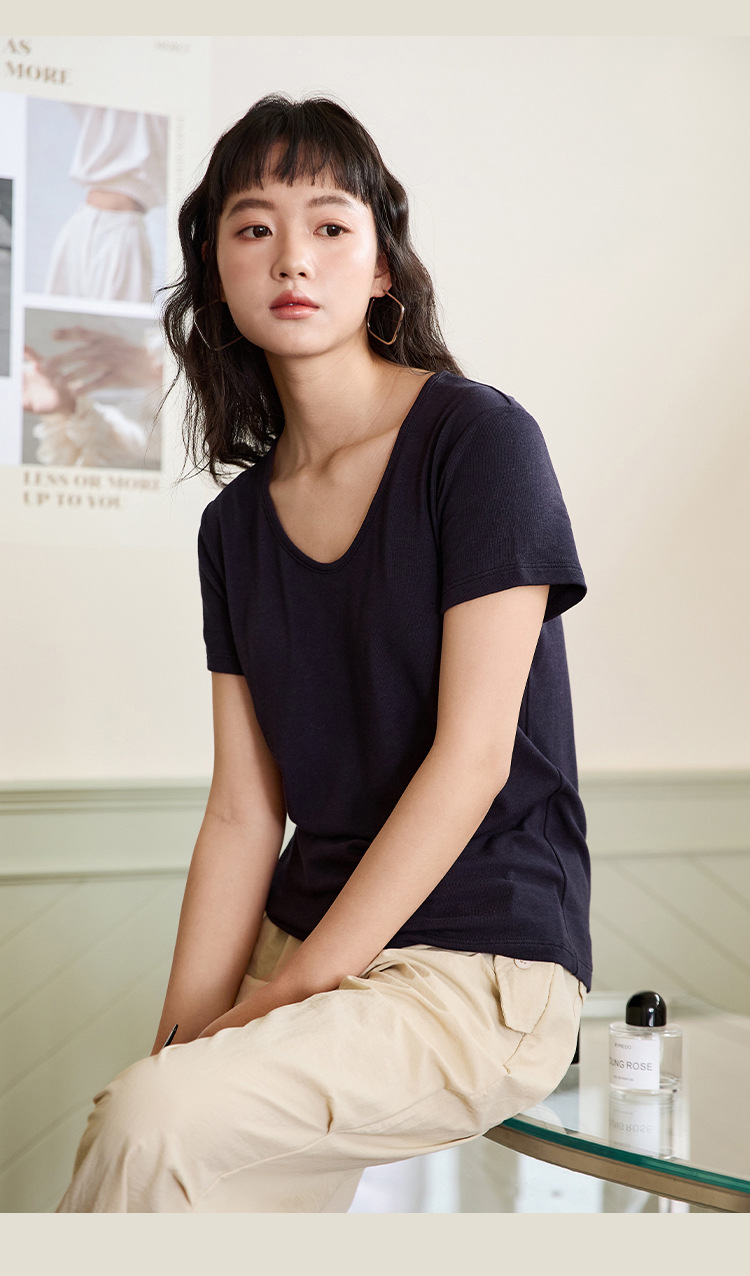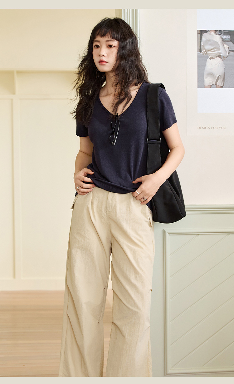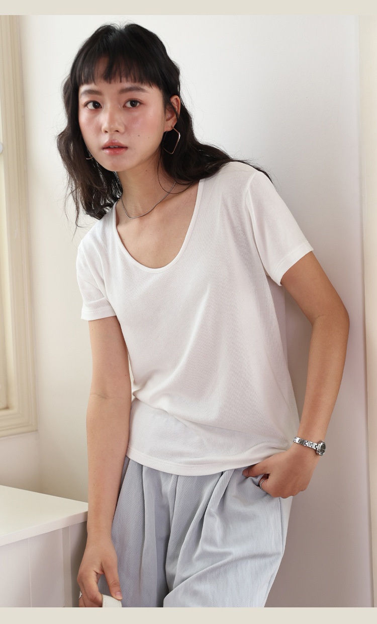 2025 새로운 봄과 여름 텐셀베이스 셔츠 여성용 Lyocell 거위 달걀 칼라 리넨 티셔츠 피부 친화적 인 슬리밍 반소매 탑