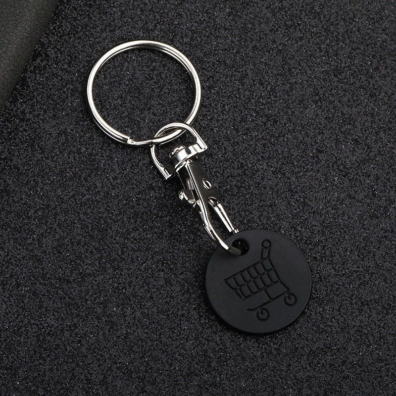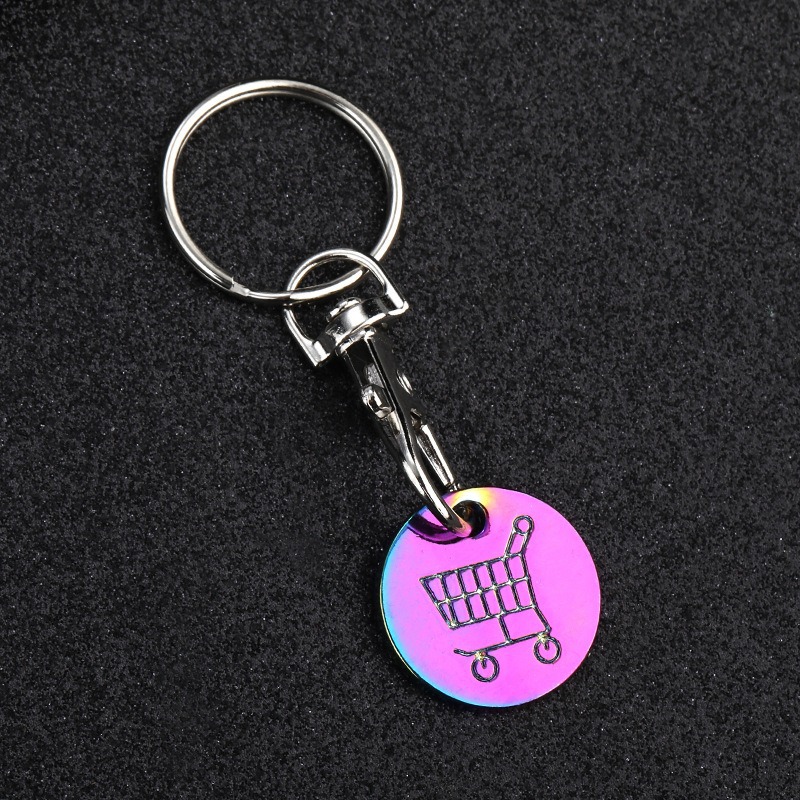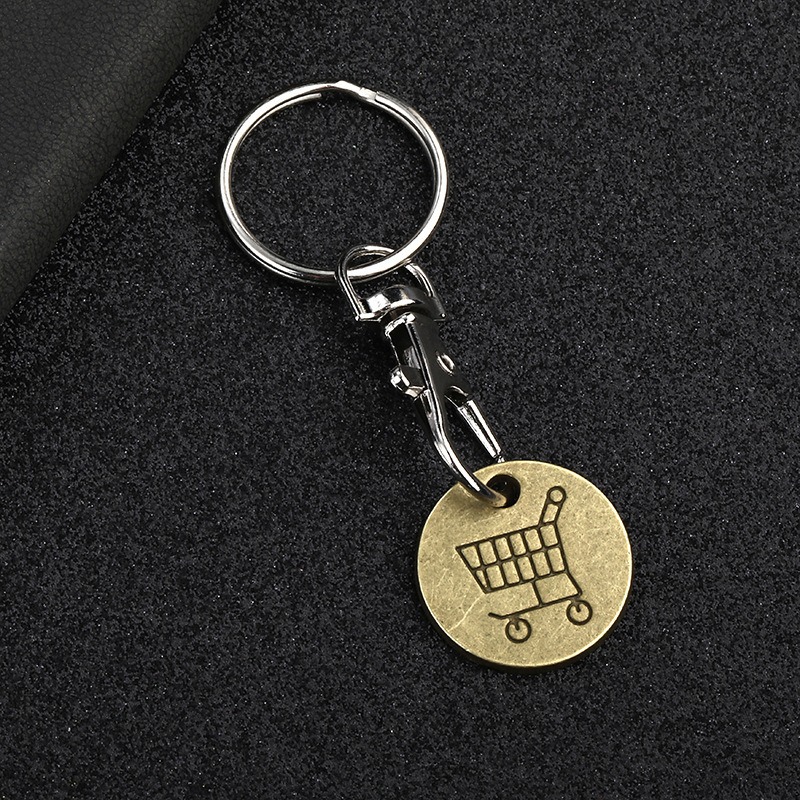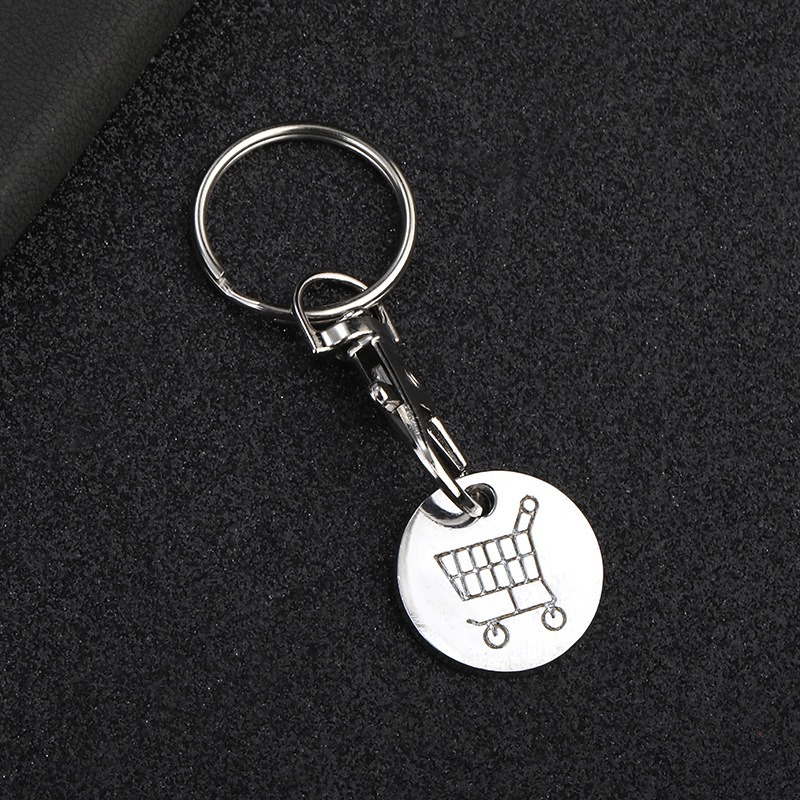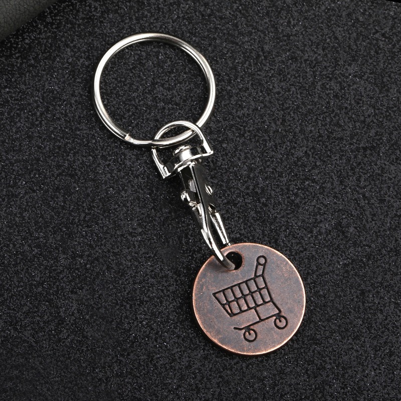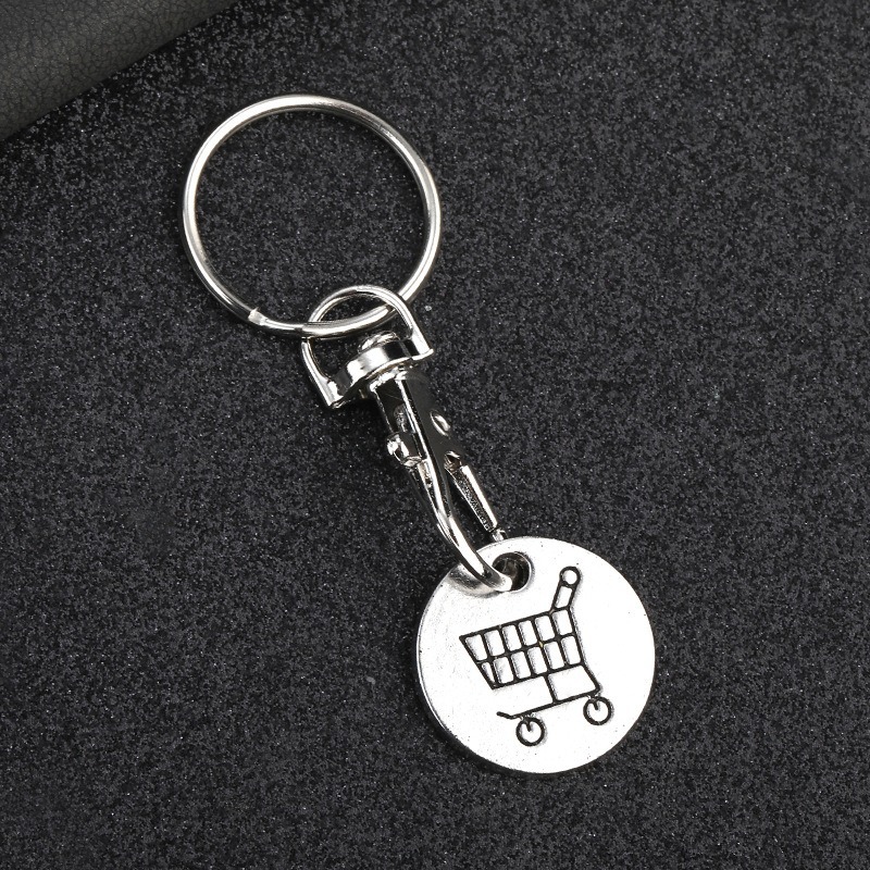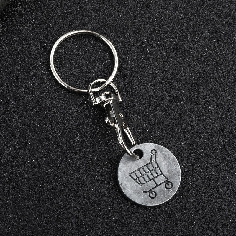 국경 간 유럽과 미국의 슈퍼마켓 푸시 쇼핑 카트 로고 코인 금속 토큰 랍스터 버클 창조적 인 라운드 카드 키 체인