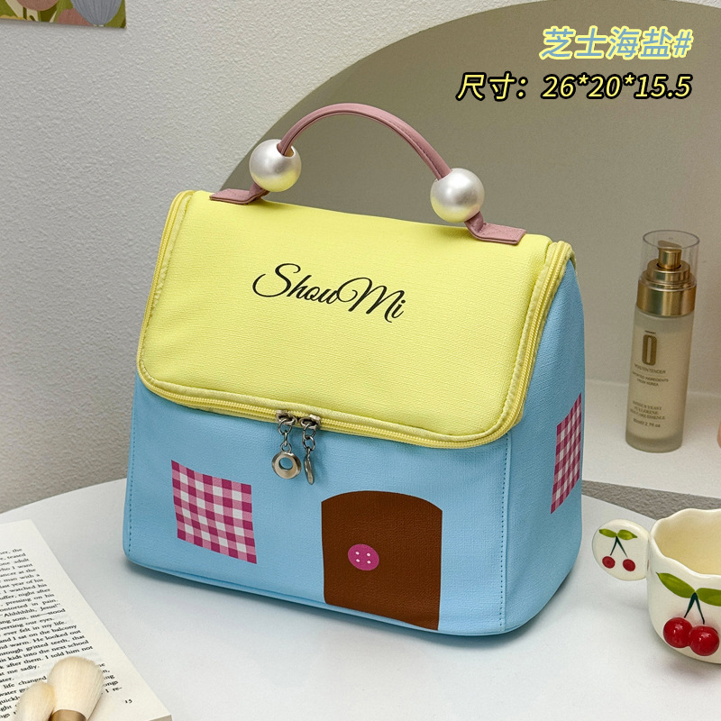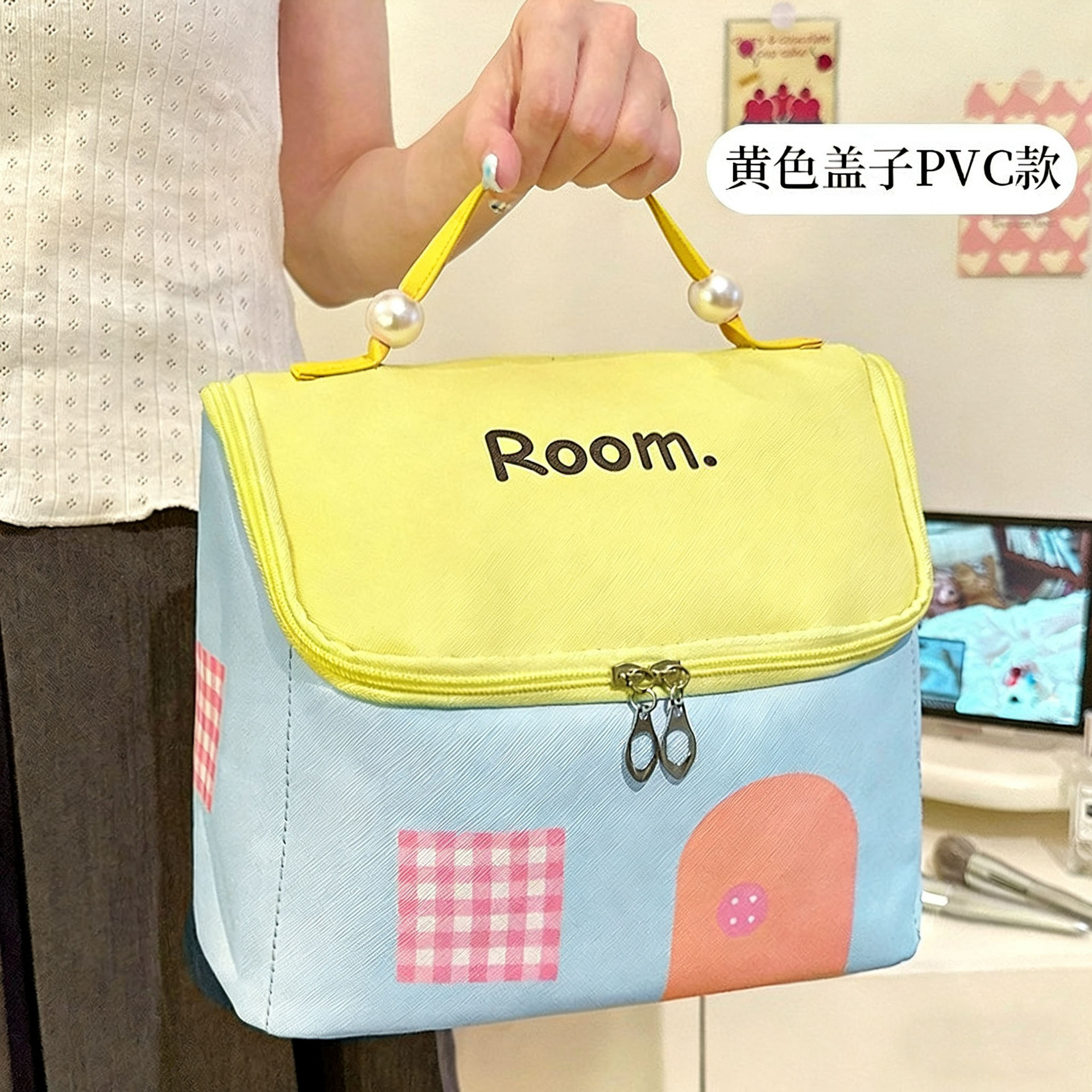• 노란색과 파란색 큰 집 화장품 가방 [일반 스타일]