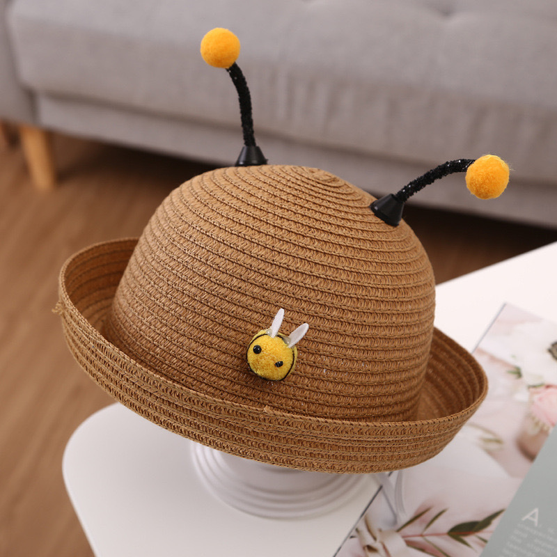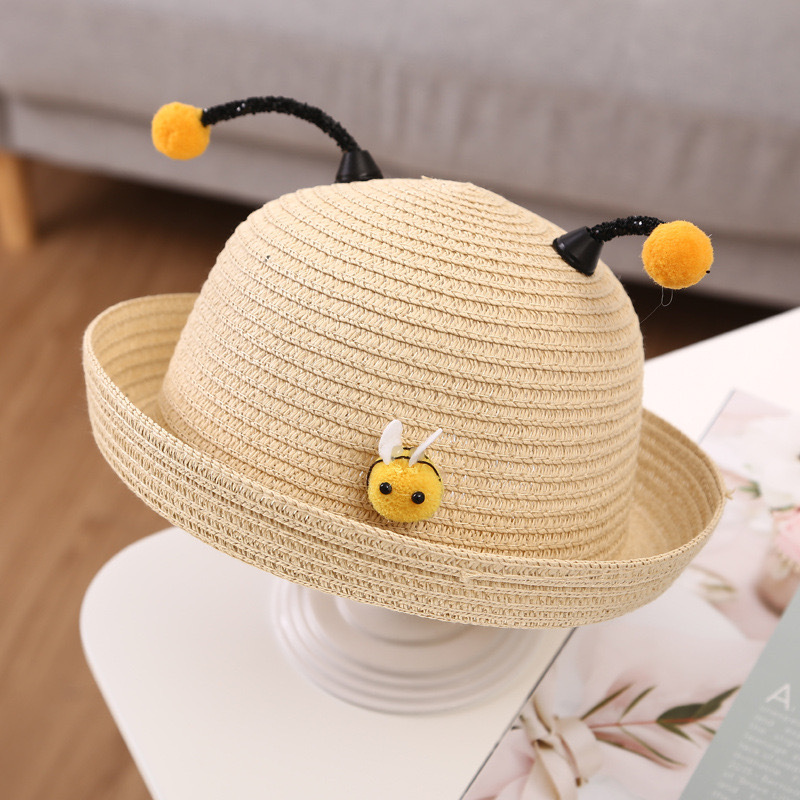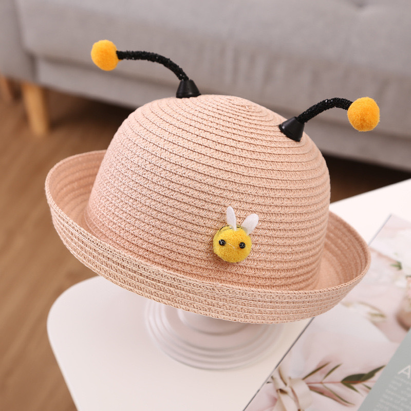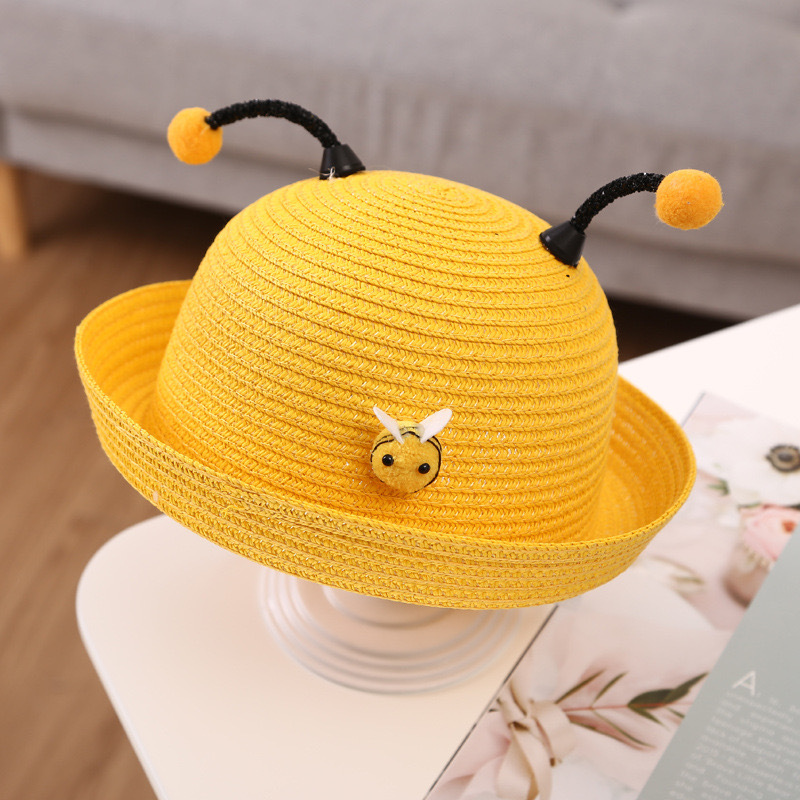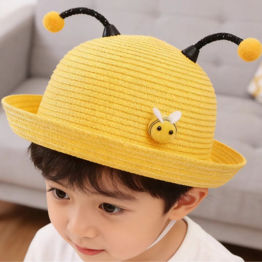 어린이 밀짚 모자 여름 남자와 여자의 아기 태양 모자 해변 모자 아이들의 아기 태양 모자 부머 만화 꿀벌 모자