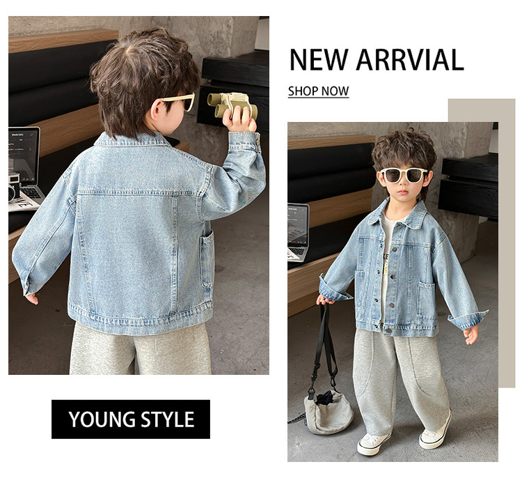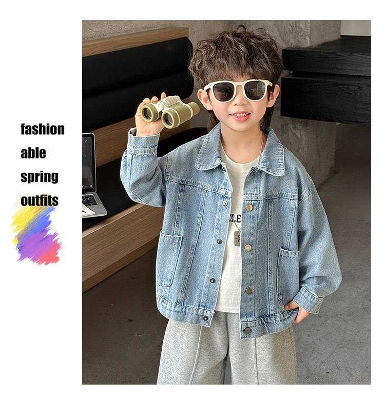 남아용 면 데님 재킷, 봄 가을 신상, 멋스러운 스타일, 어린이용 부드럽고 통기성 좋은 트렌디한 내구성 재킷스토어 가기