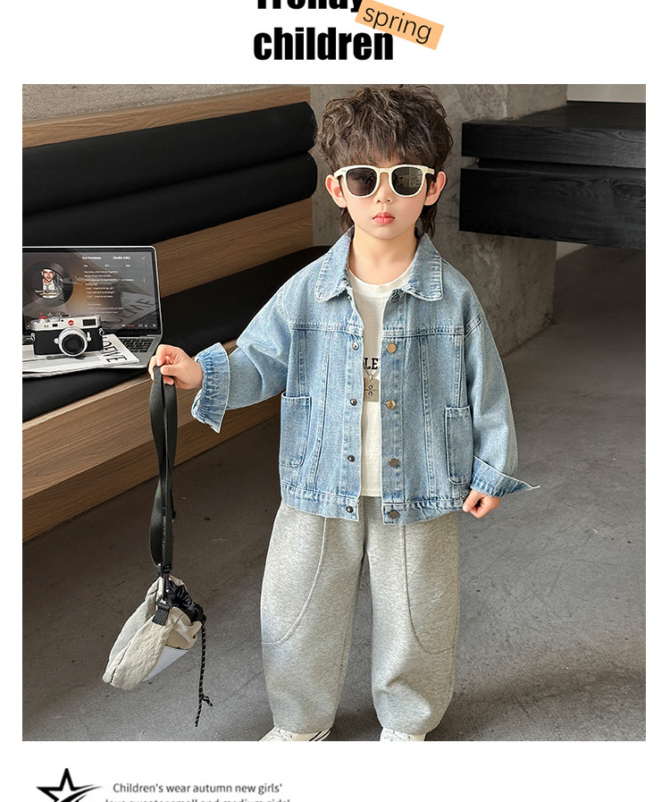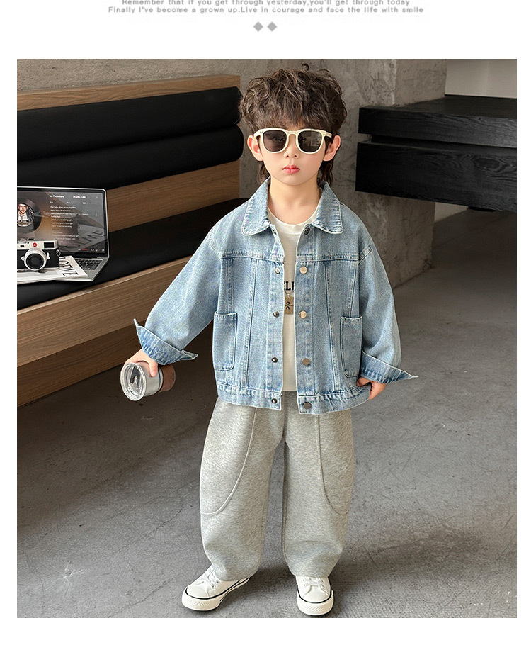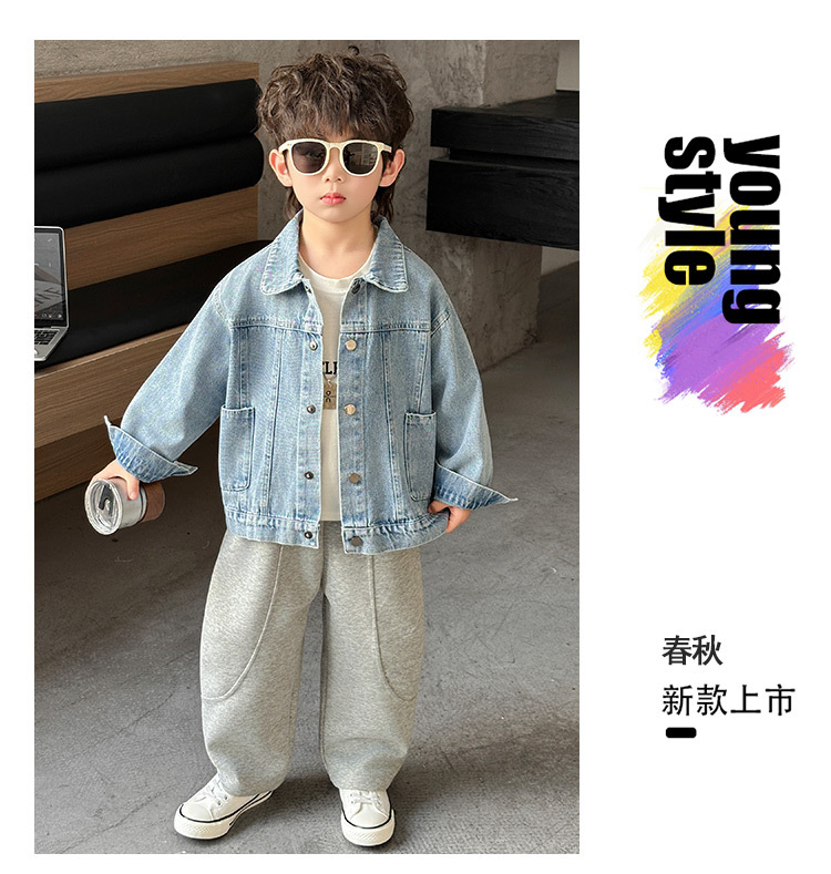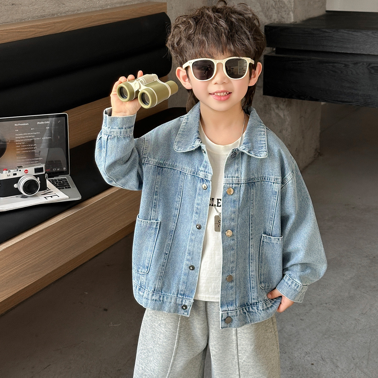 남아용 면 데님 재킷, 봄 가을 신상, 멋스러운 스타일, 어린이용 부드럽고 통기성 좋은 트렌디한 내구성 재킷