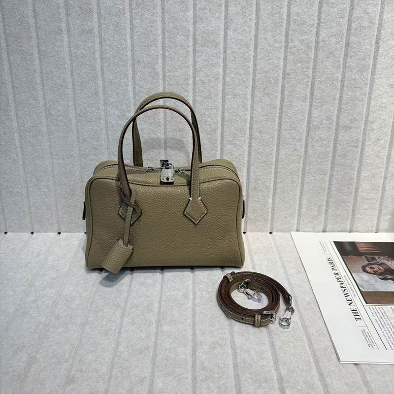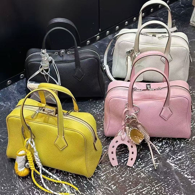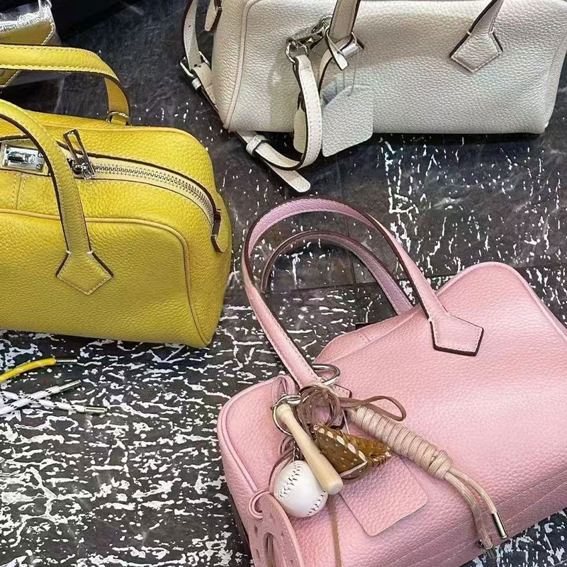 공장 정품 가죽 2025 새로운 토트 백 탑 레이어 카우보이 보스턴 베개 가방 높은 패션 통근 핸드백스토어 가기