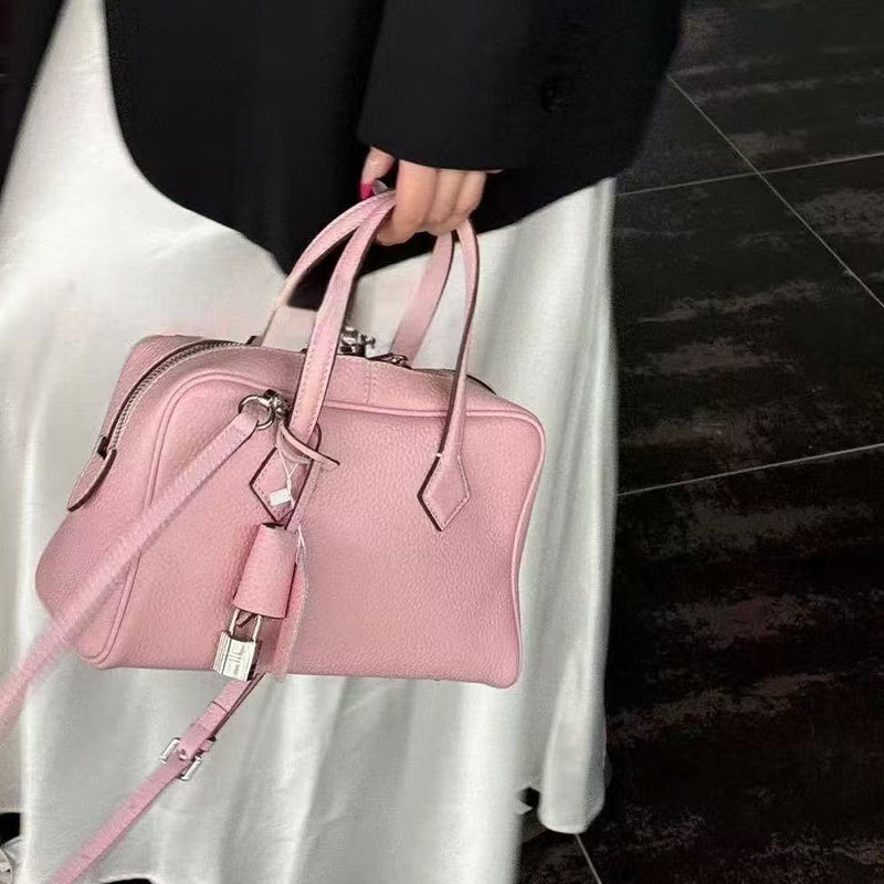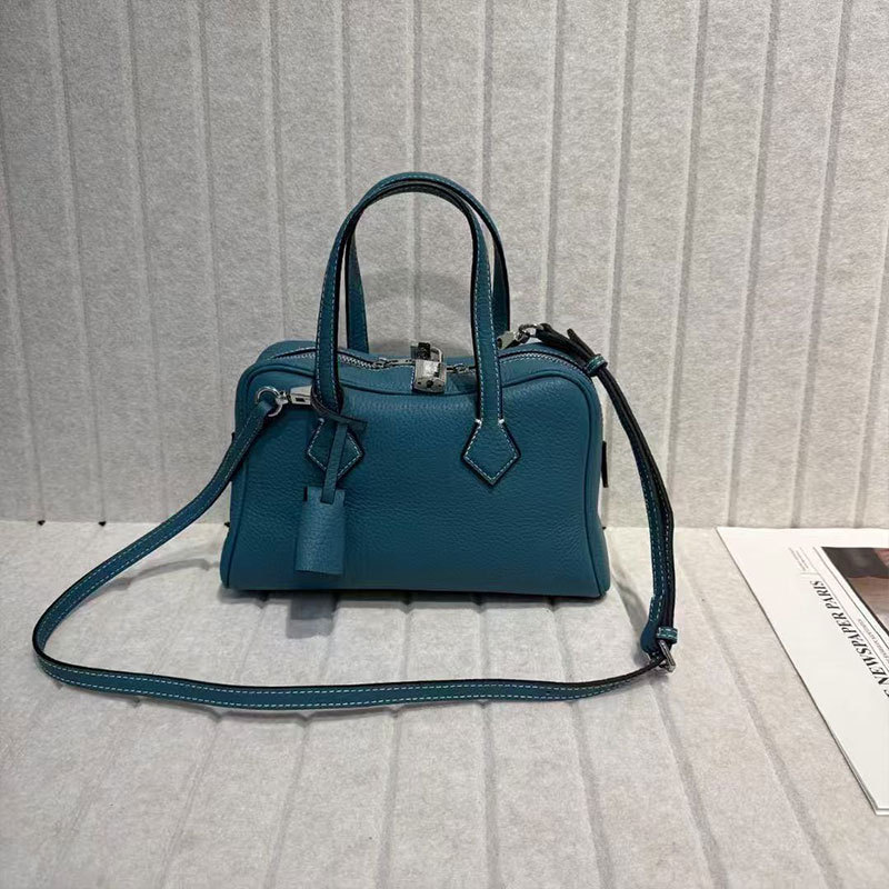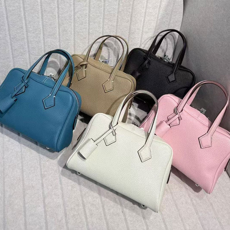 공장 정품 가죽 2025 새로운 토트 백 탑 레이어 카우보이 보스턴 베개 가방 높은 패션 통근 핸드백