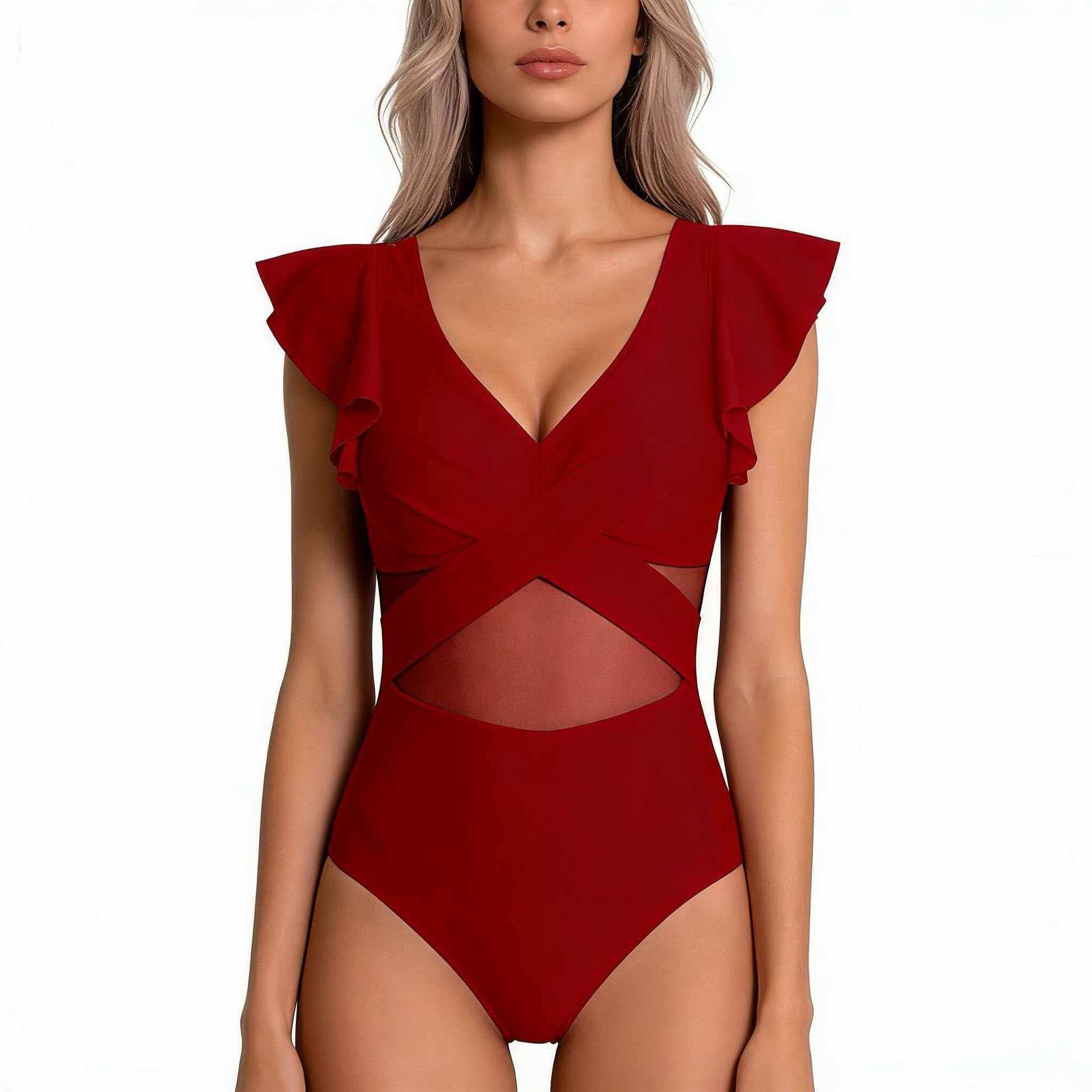 2025 새로운 유럽과 미국의 아마존 수영복 메쉬 비키니 여성 속건성 스포츠 원피스 수영복 국경 간 제조 업체