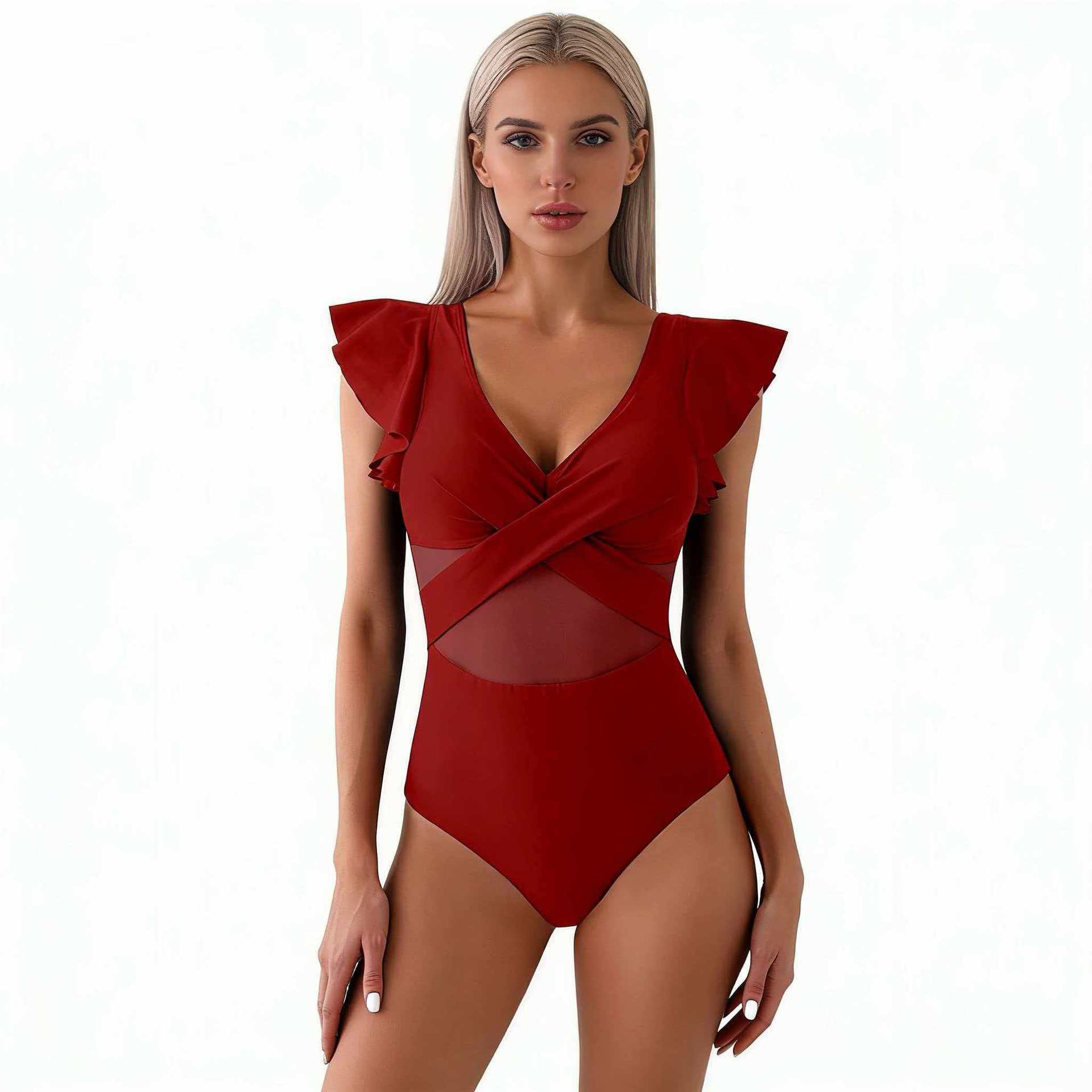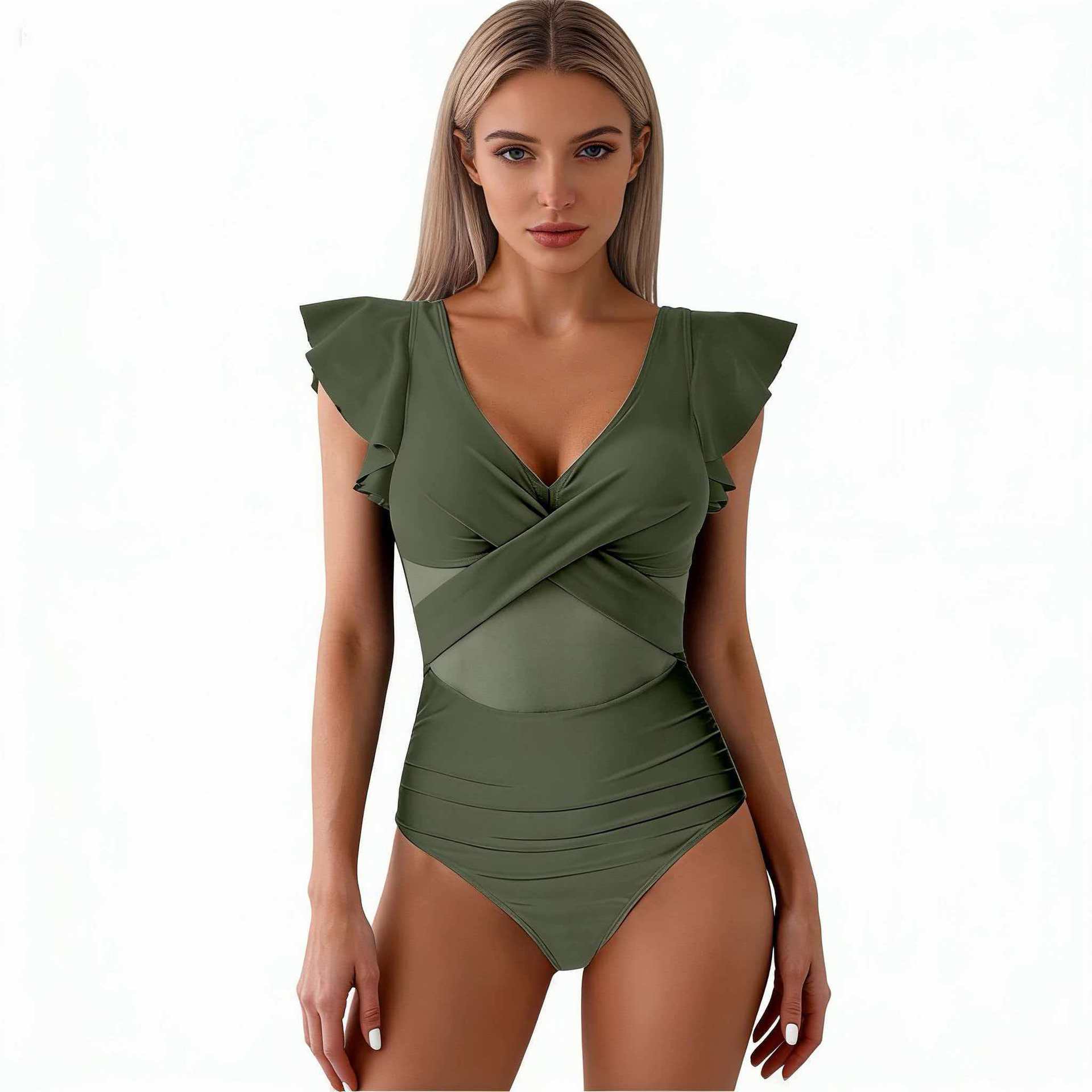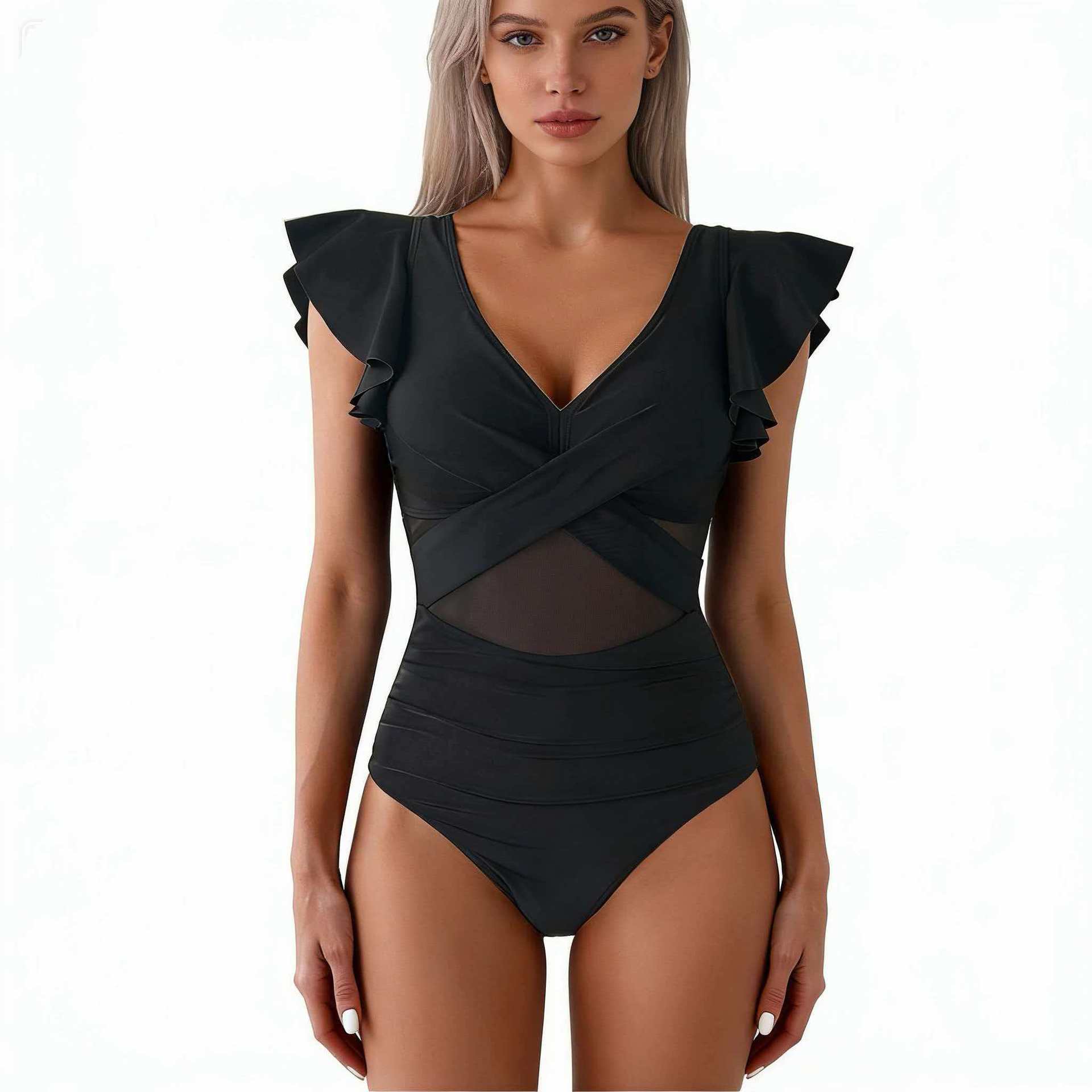 2025 새로운 유럽과 미국의 아마존 수영복 메쉬 비키니 여성 속건성 스포츠 원피스 수영복 국경 간 제조 업체스토어 가기
