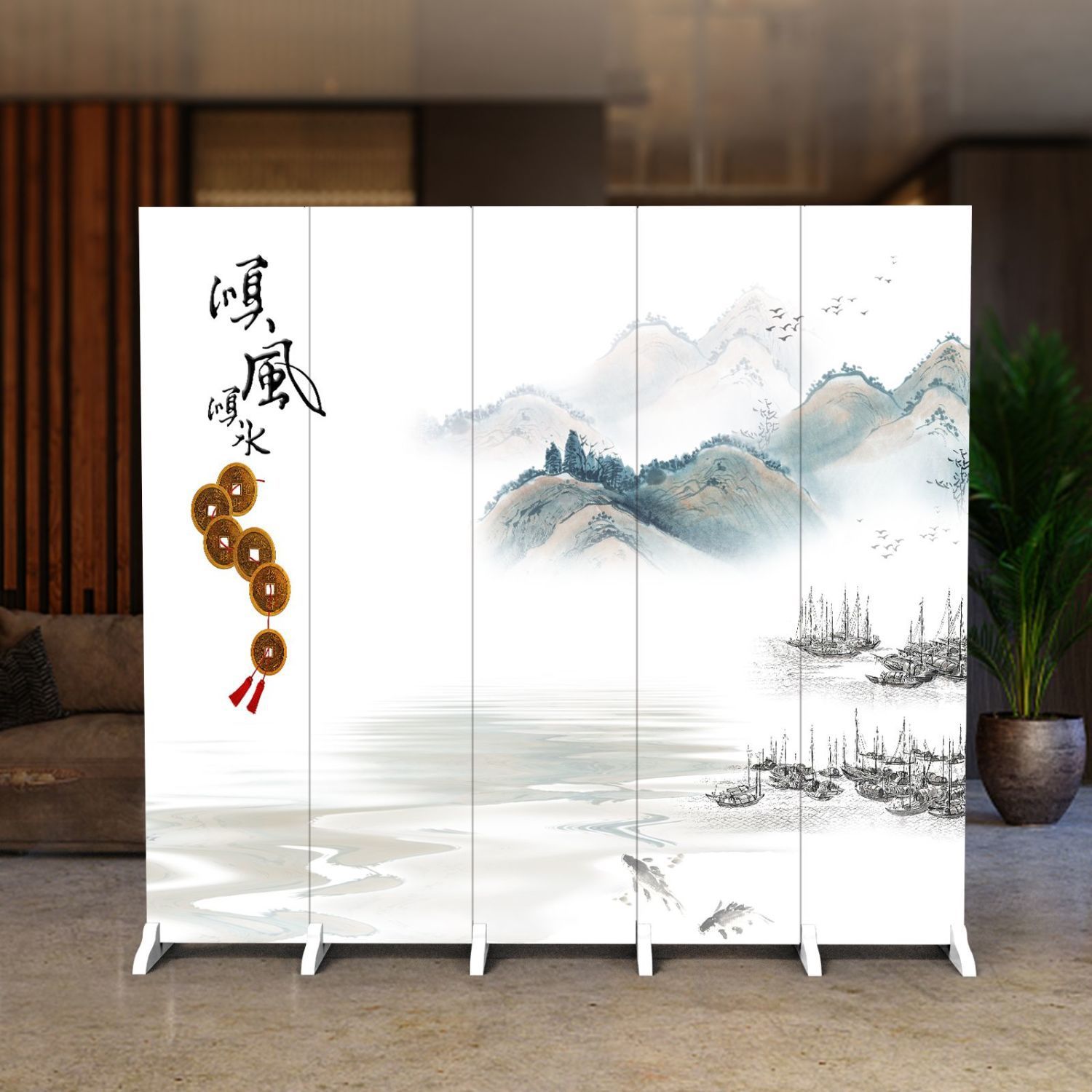 새로운 중국 스타일의 스크린 파티션 거실 사무실 접이식 모바일 간단한 침실 음영 스크린 도어